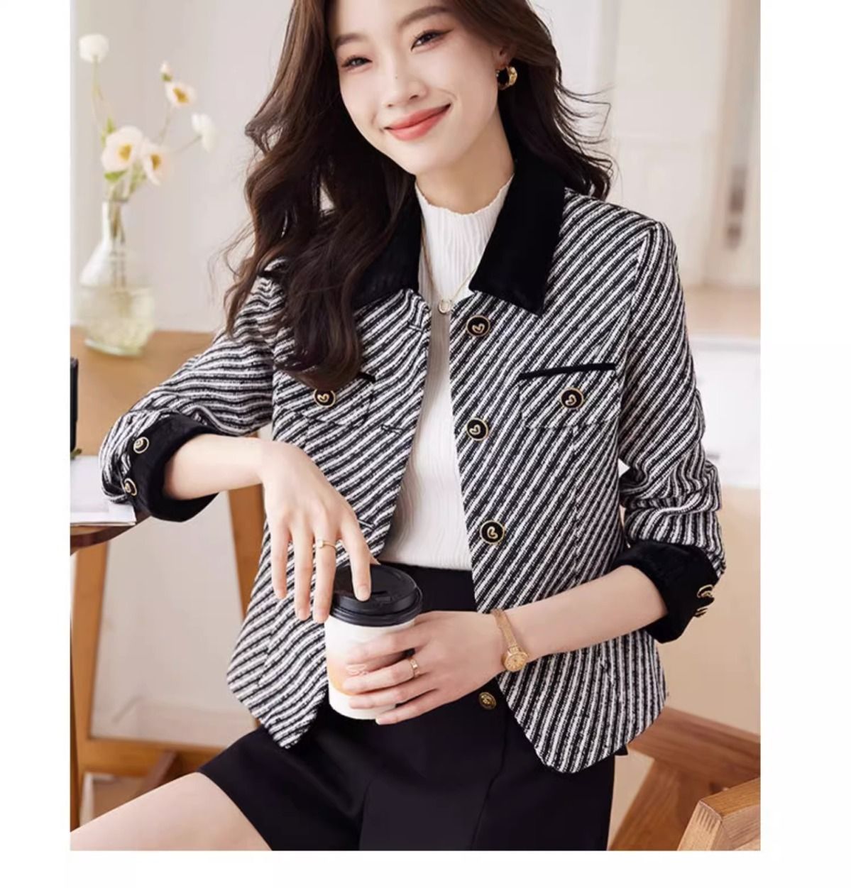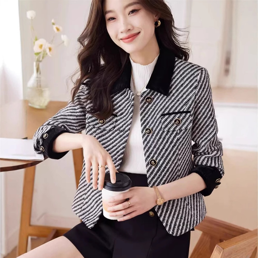 샤오샹풍 싱글버튼 재킷 여성용 봄가을 2025 신상 작은 키 여성을 위한 우아하고 세련된 한국 스타일 스트라이프 배색 상의