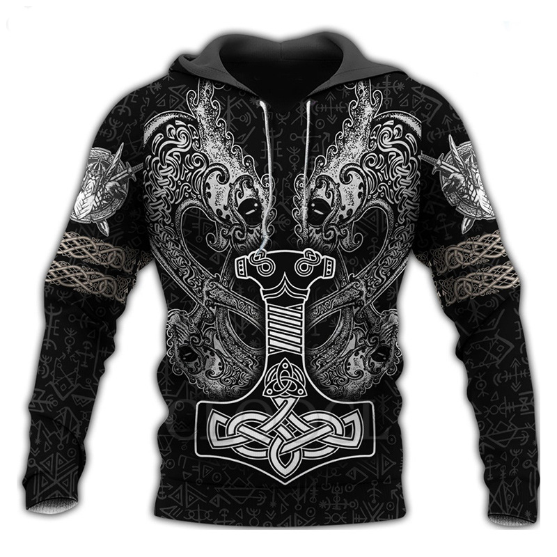 국경을 넘나 드는 유럽과 미국의 패션 스트리트 트렌드 남자 장갑 바이킹 신화 시리즈 쿨 인쇄 후디 남자의 후드스토어 가기