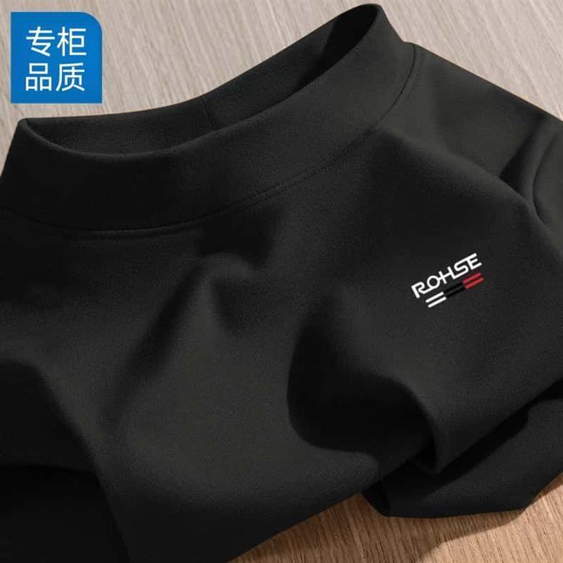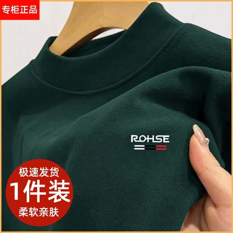 가을과 겨울 티셔츠 남성용 기모 겉옷 세미 하이 칼라 긴팔 티셔츠 내복 중년베이스 셔츠 독일 벨벳 따뜻한 셔츠 인쇄스토어 가기