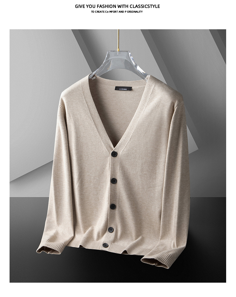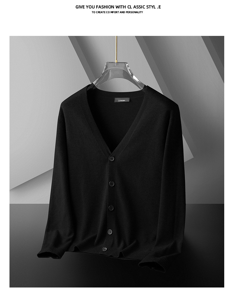 니트 카디건 남자 V 넥 스웨터 코트 2024 봄과 가을 얇은 유행 캐주얼 외부 스웨터 블랙 스웨터스토어 가기