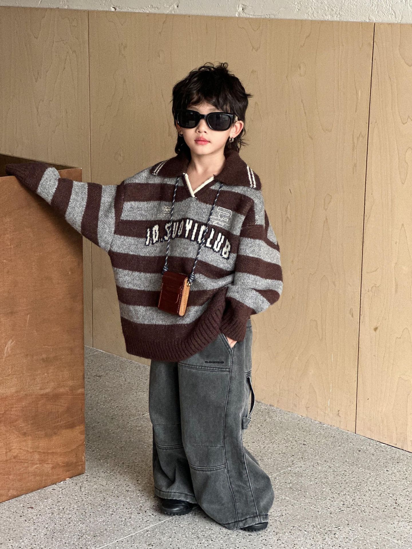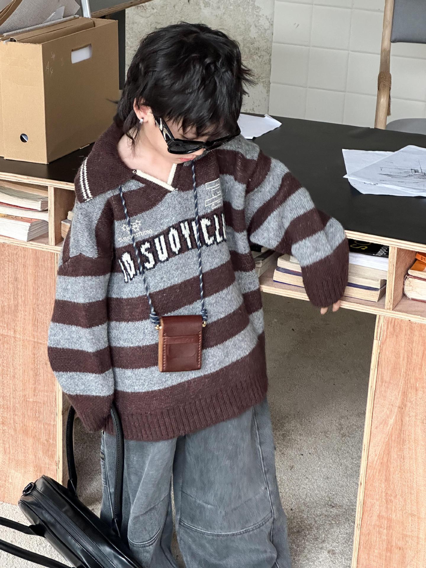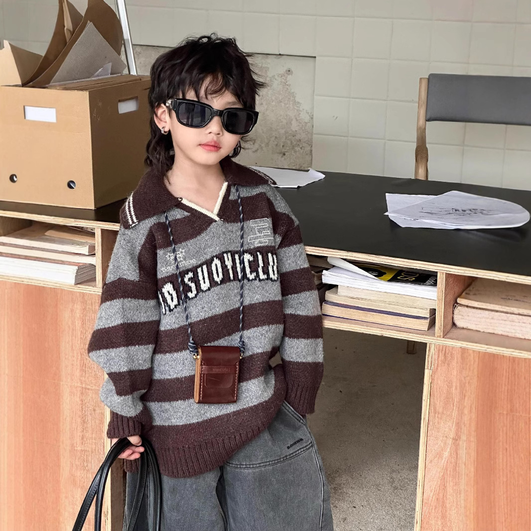 가을과 겨울의 근원 추적 2024 소년 및 어린이를위한 새로운 스웨터 기지 패션 올 매치 트렌디 쿨 한국 탑
