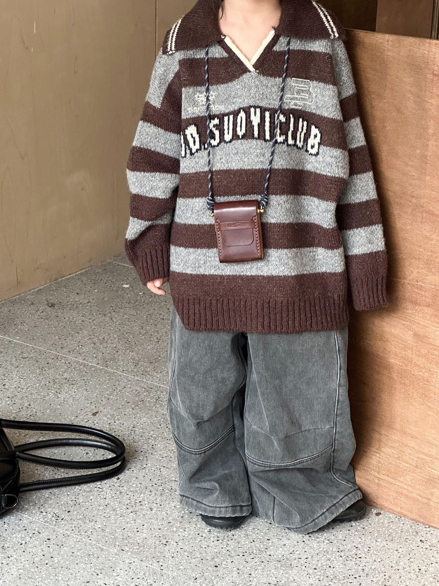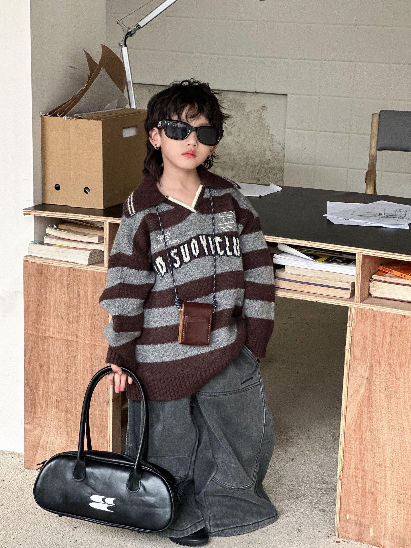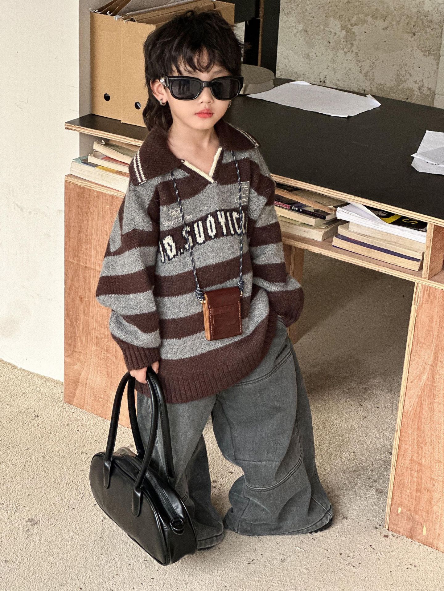 가을과 겨울의 근원 추적 2024 소년 및 어린이를위한 새로운 스웨터 기지 패션 올 매치 트렌디 쿨 한국 탑