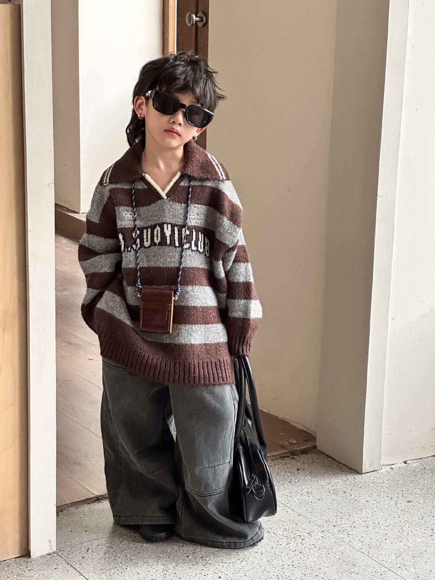 가을과 겨울의 근원 추적 2024 소년 및 어린이를위한 새로운 스웨터 기지 패션 올 매치 트렌디 쿨 한국 탑스토어 가기