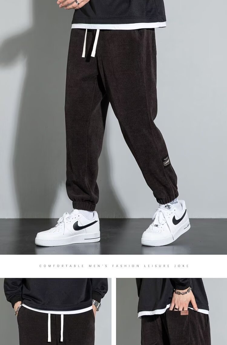 봄과 가을 플러스 사이즈 코듀로이 캐주얼 남성 스웨트 팬츠 느슨한 바지 번들 발 남자의 유행 캐주얼 바지 가을과 겨울