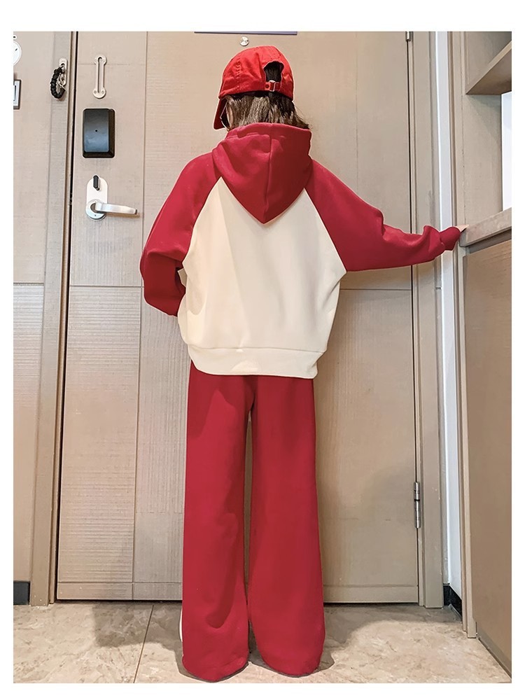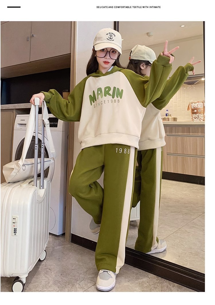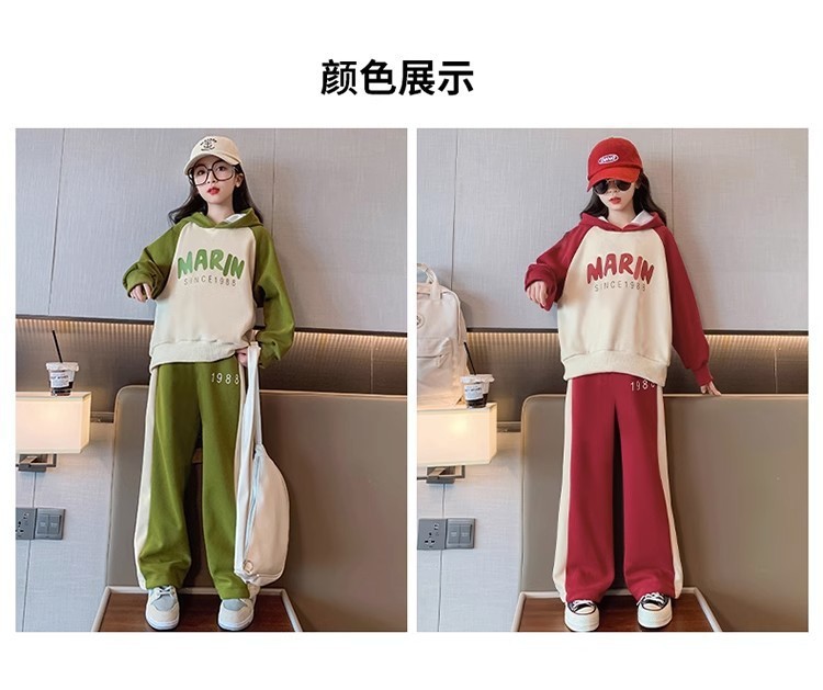 어린이 의류 소녀 캐주얼 세트 봄과 가을 2024 새로운 긴팔 후드 스트레이트 바지 투피스 세트스토어 가기