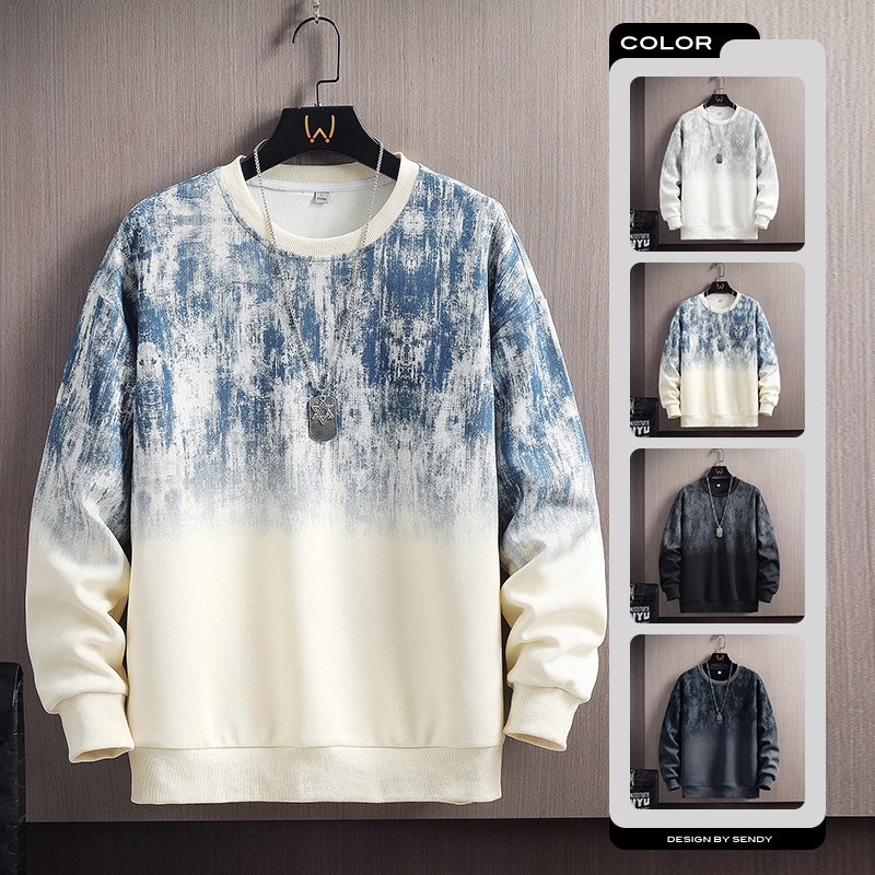 땀 남자 2024 새로운 가을 청소년 틈새 창조적 인 인쇄 편안한 스포츠 레저 라운드 넥 땀 남자 국경스토어 가기