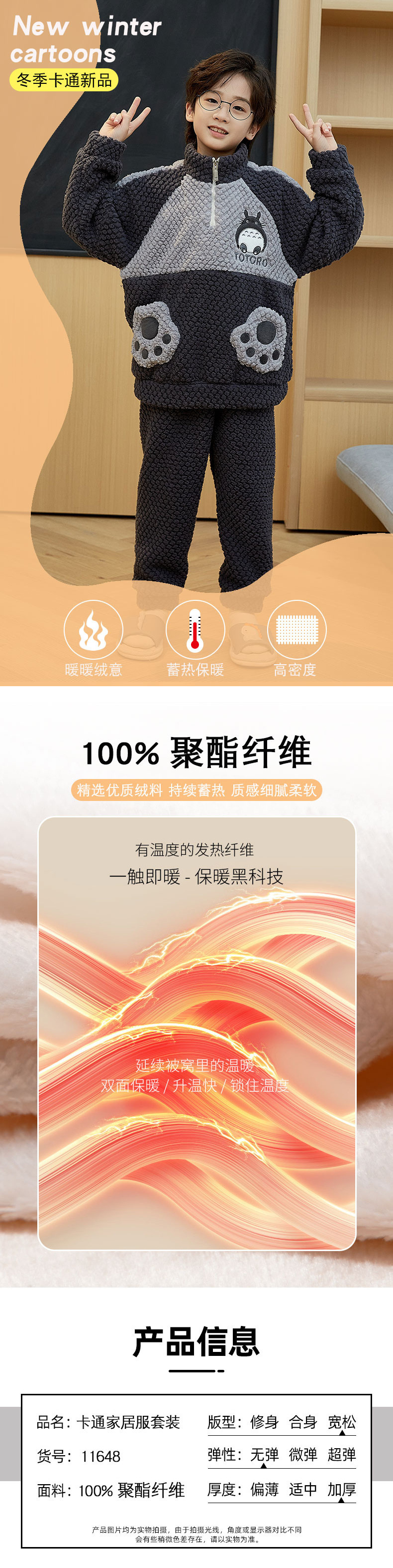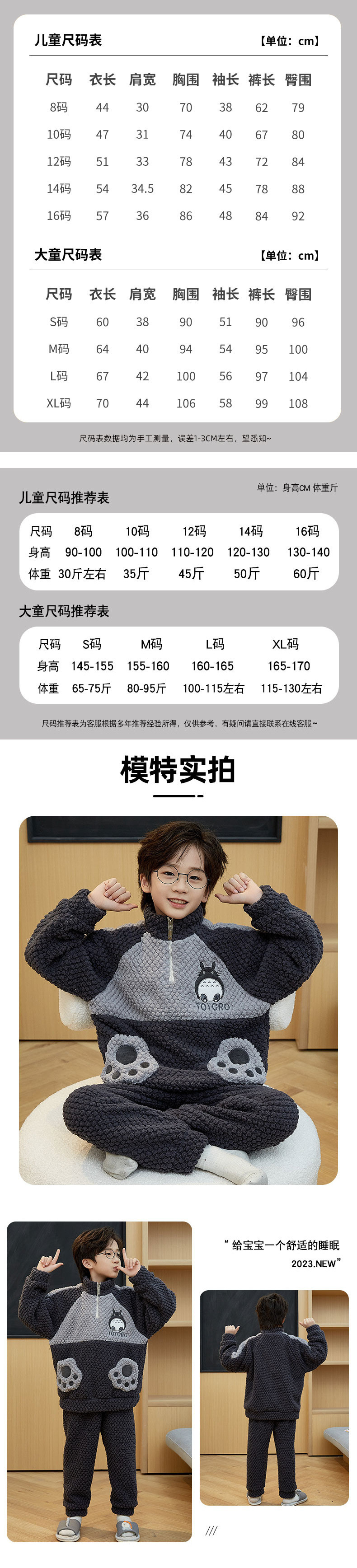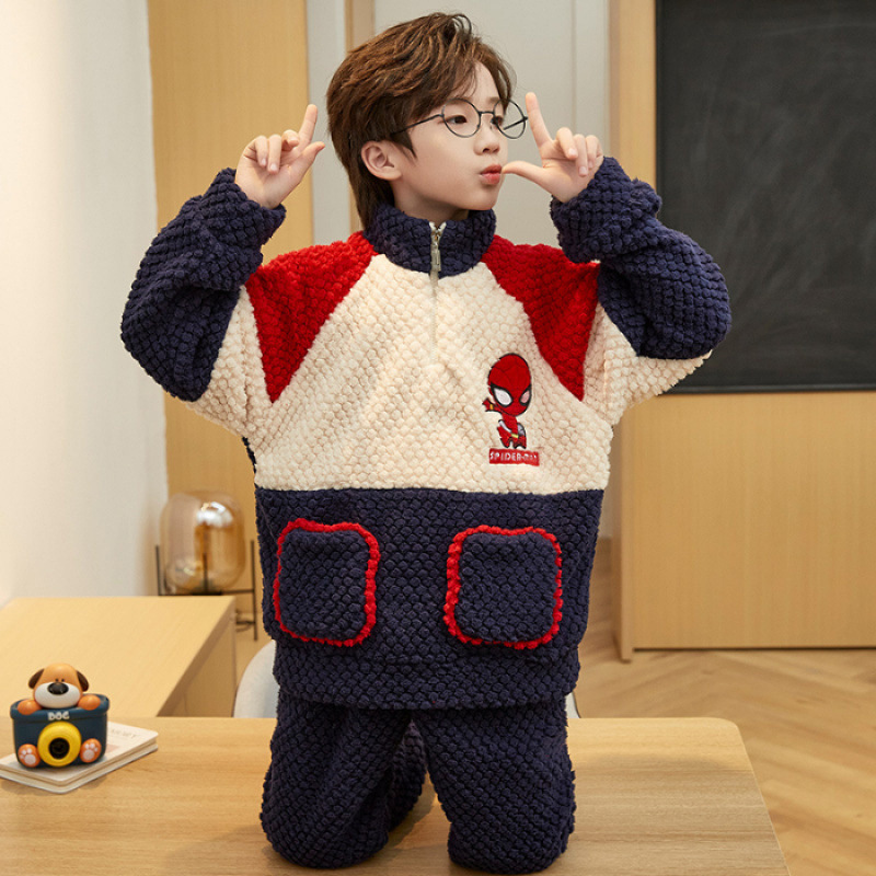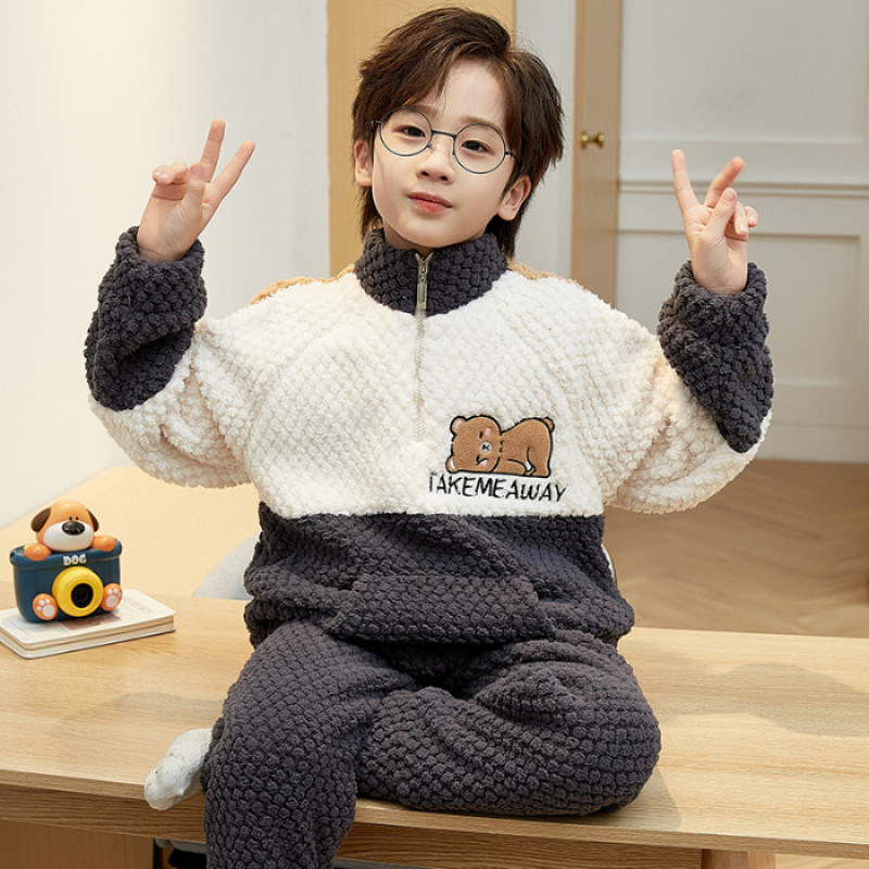 소년을위한 어린이 잠옷 가을과 겨울 플란넬 지퍼-XL 코드는 세트 작고, 중대형 어린이 학생 소년