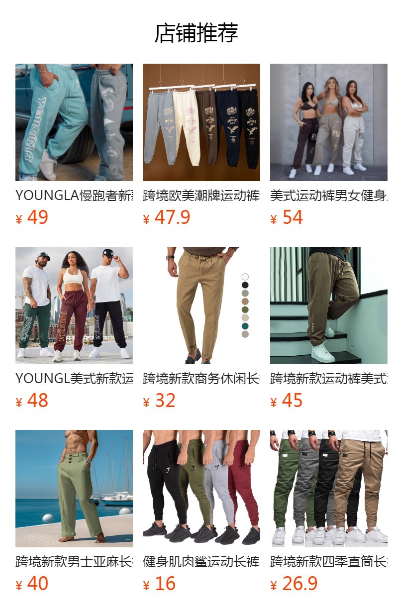 국경을 넘는 새로운 YOUNGLA 바지 스트레이트 캐주얼 트렌디 브랜드 피트니스 바지 남성용 위장 통기성 스포츠 바지스토어 가기