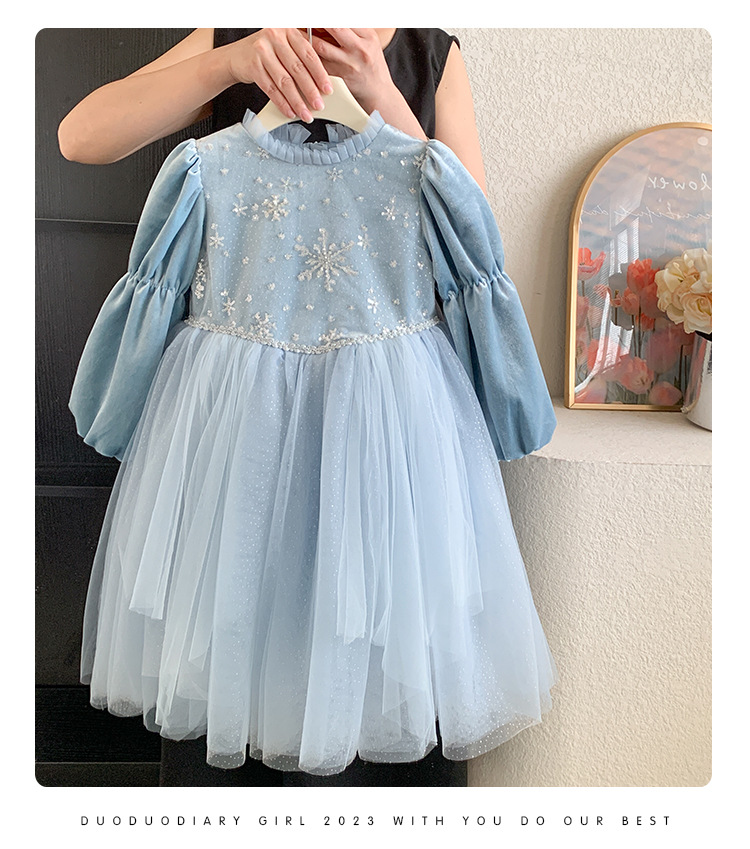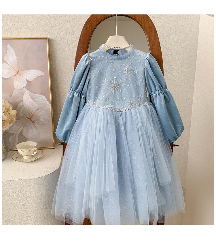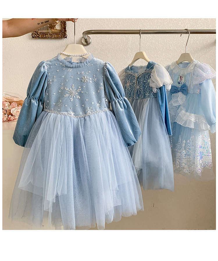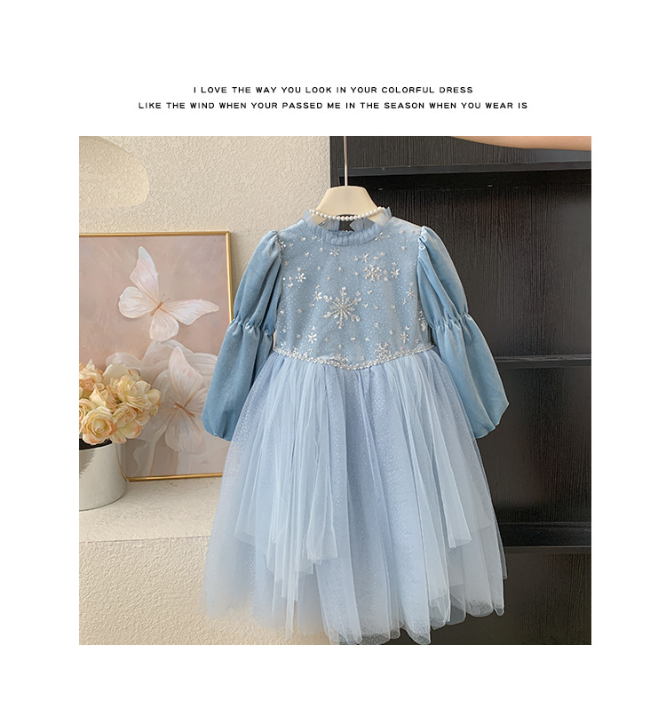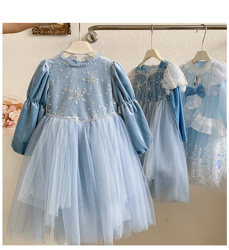 2025 봄 새 여자 공주 드레스 생일 드레스 어린이 드레스 푹신한 메쉬 중공업 얼음과 눈 드레스스토어 가기