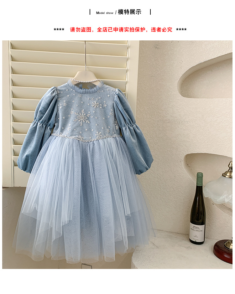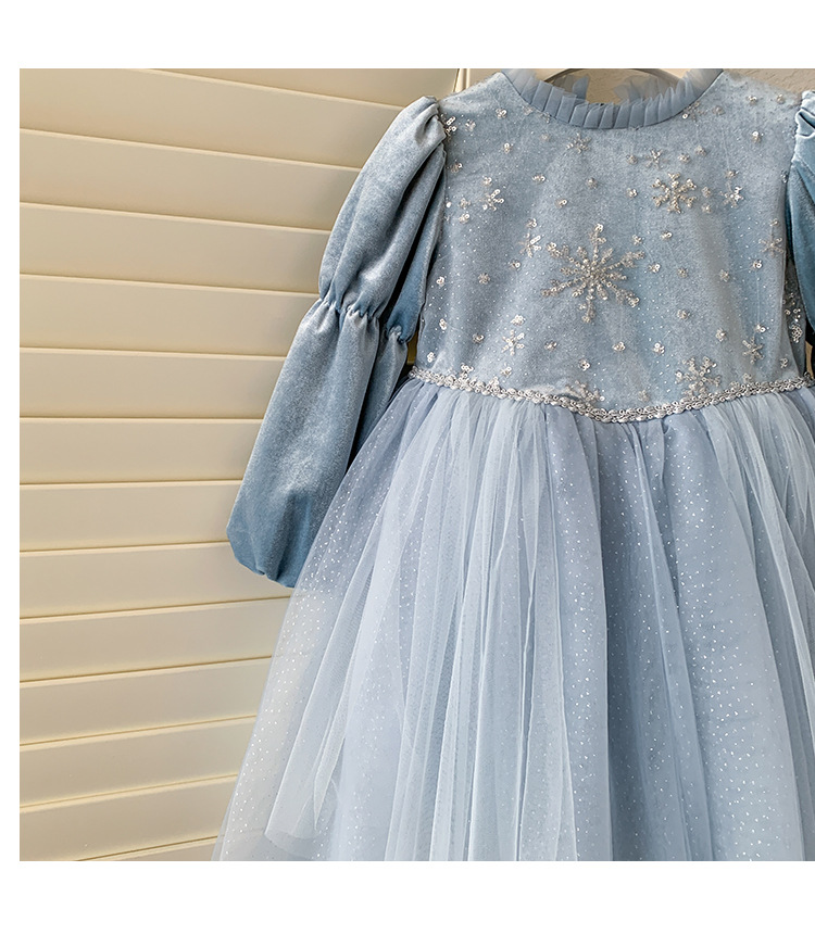 2025 봄 새 여자 공주 드레스 생일 드레스 어린이 드레스 푹신한 메쉬 중공업 얼음과 눈 드레스