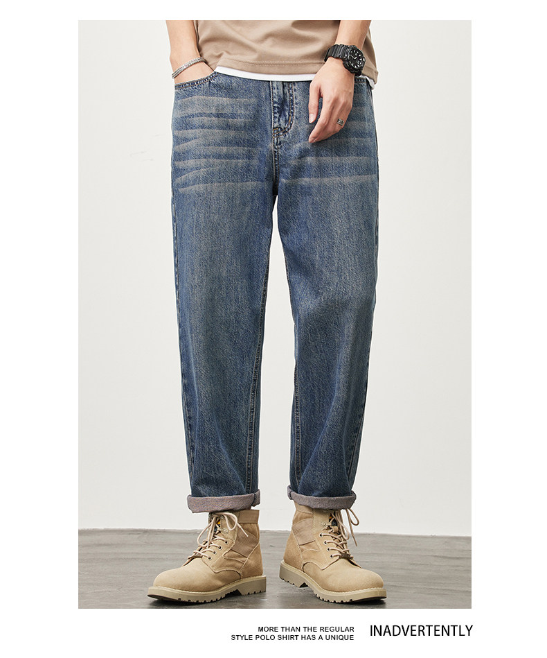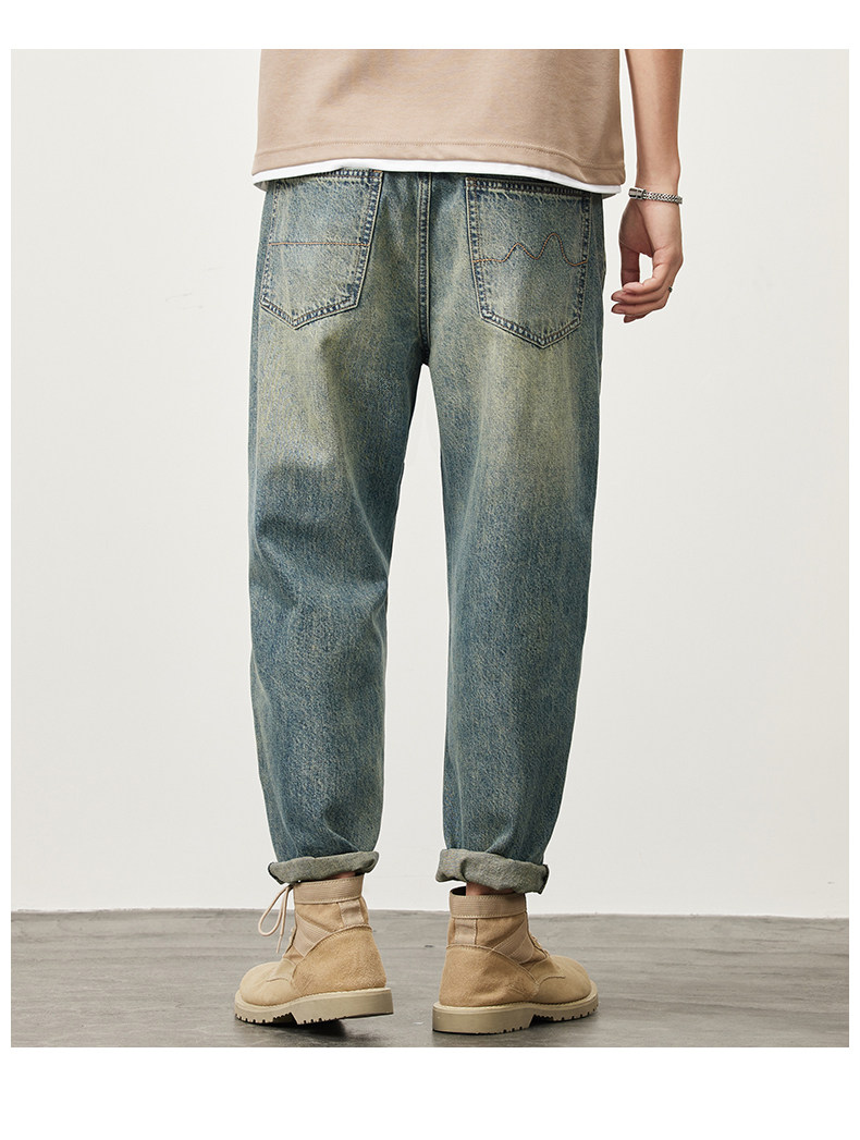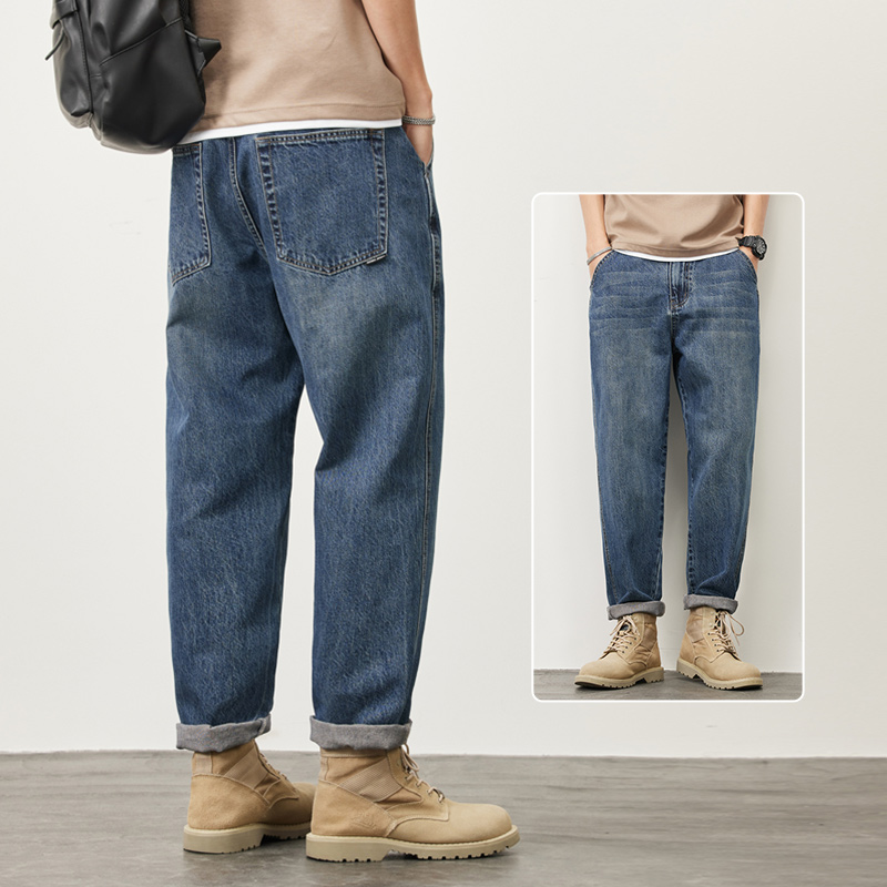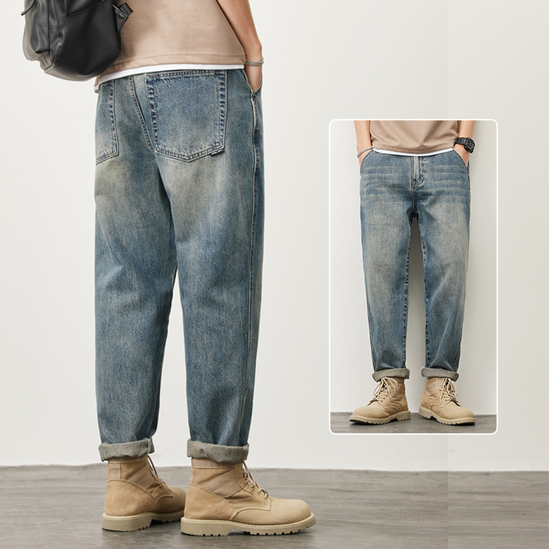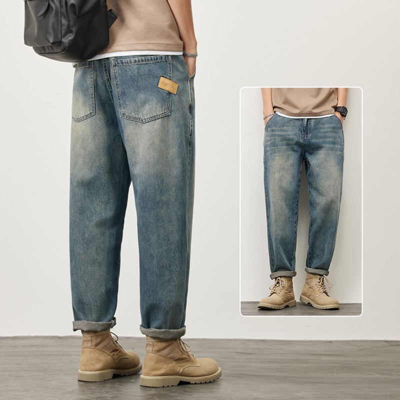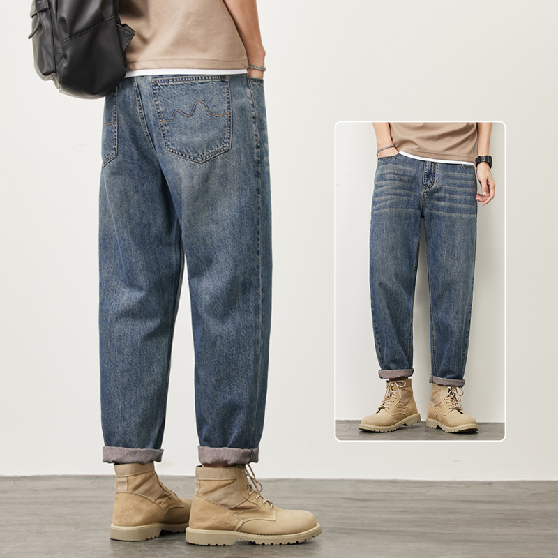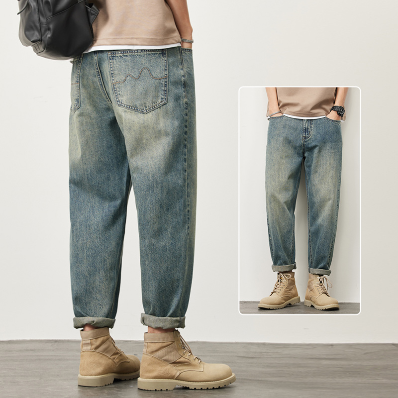 빈티지 청바지 남성용 아메리칸 스타일 트렌디 브랜드 루즈 스트레이트 하렘 9 포인트 캐주얼 롱 팬츠 2024 봄과 가을 뉴스토어 가기
