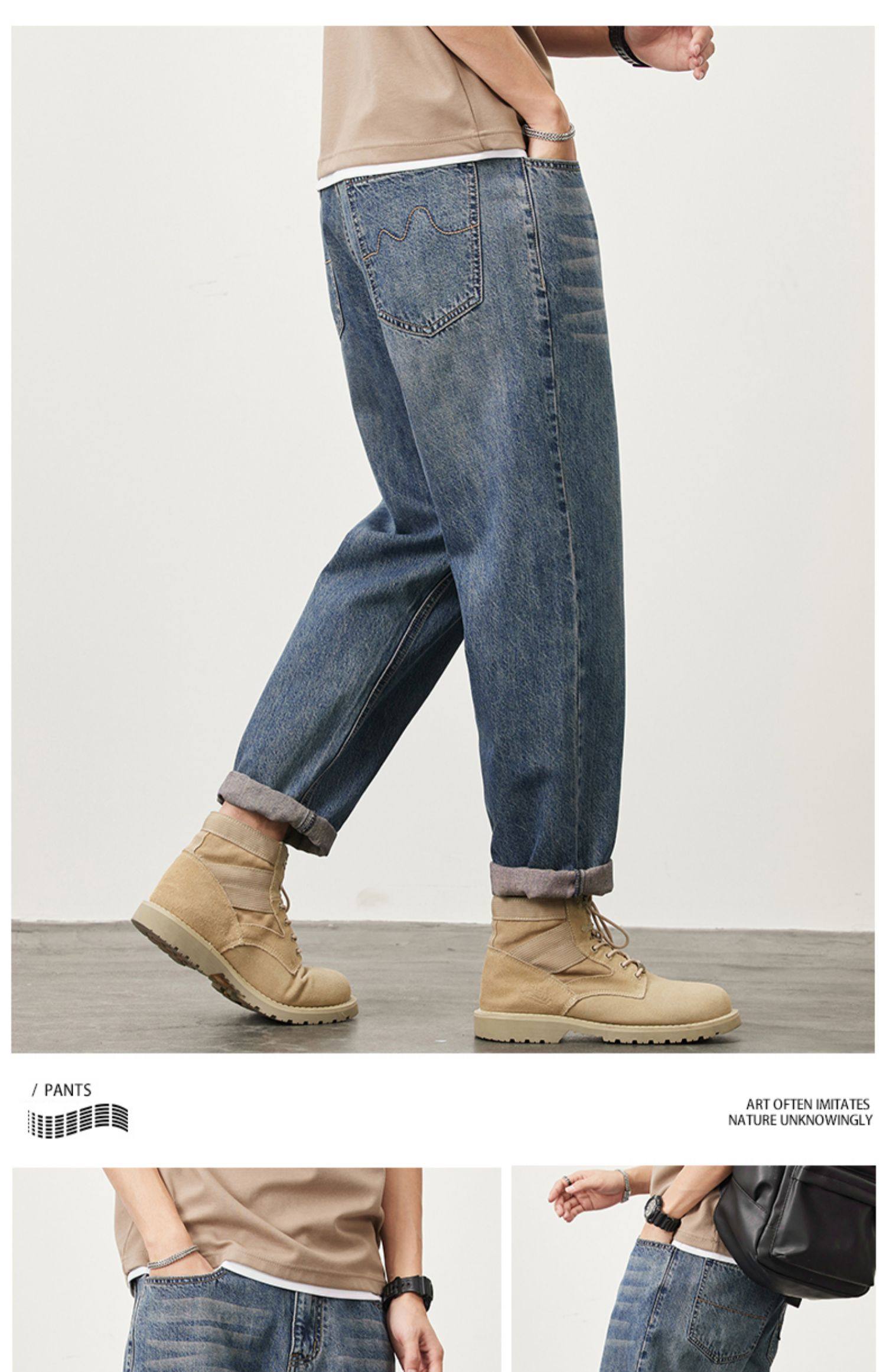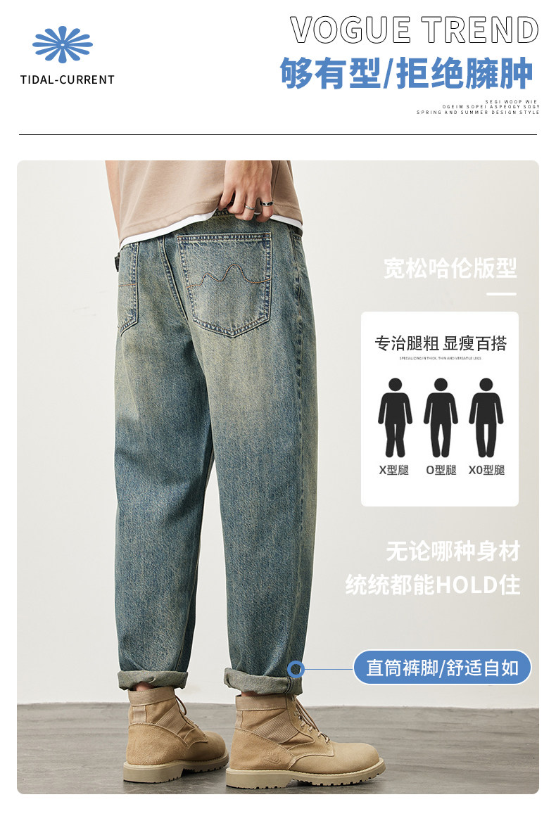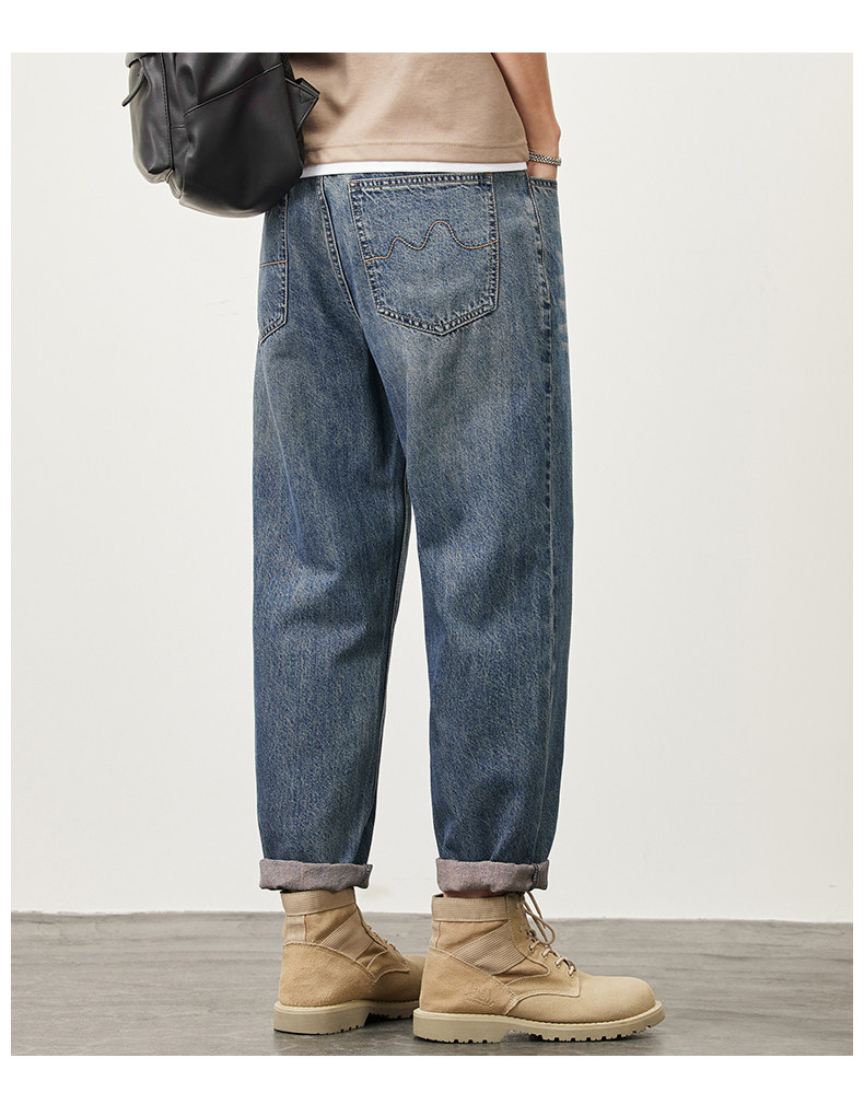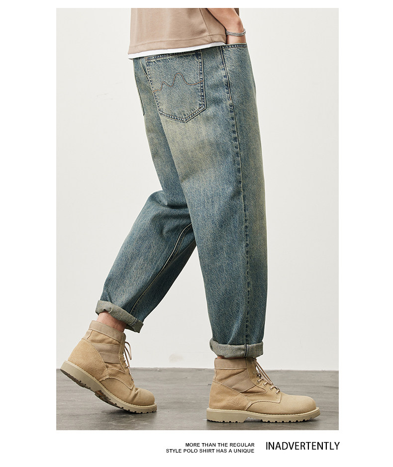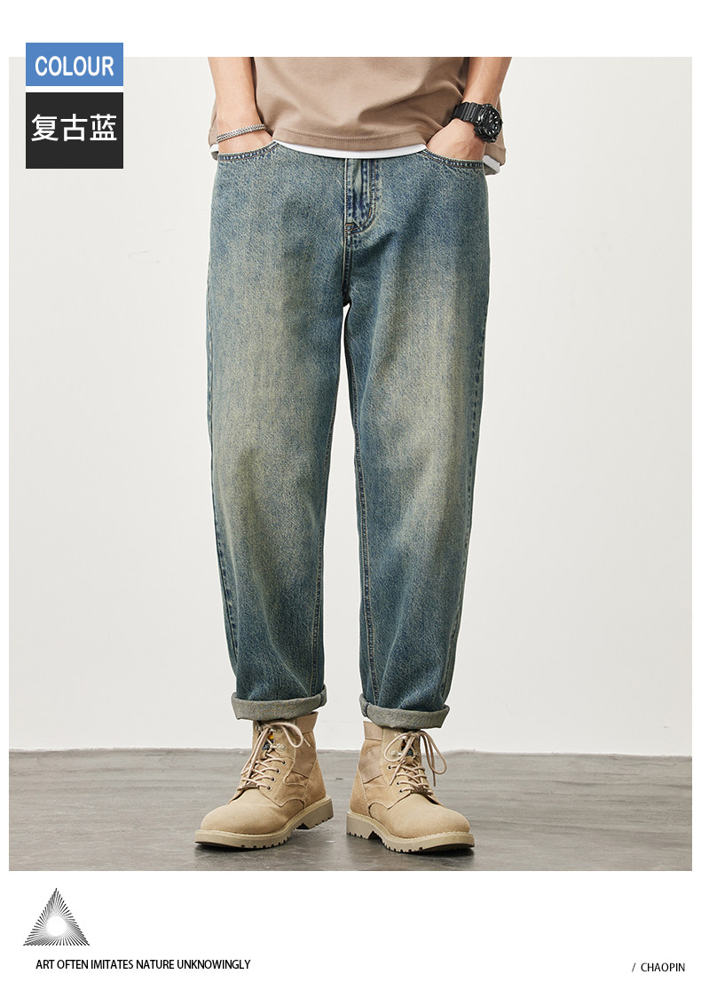 빈티지 청바지 남성용 아메리칸 스타일 트렌디 브랜드 루즈 스트레이트 하렘 9 포인트 캐주얼 롱 팬츠 2024 봄과 가을 뉴스토어 가기