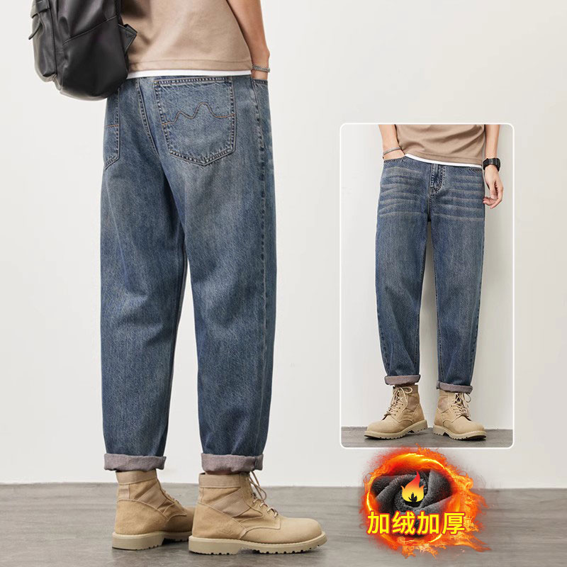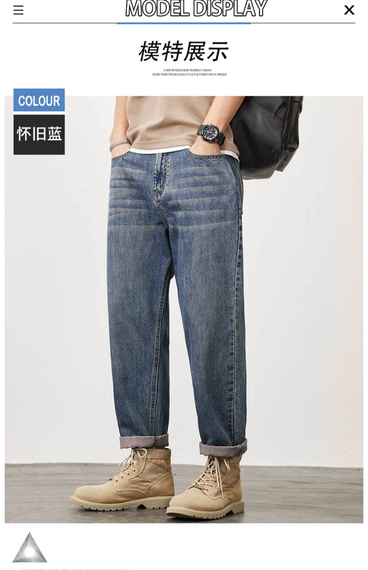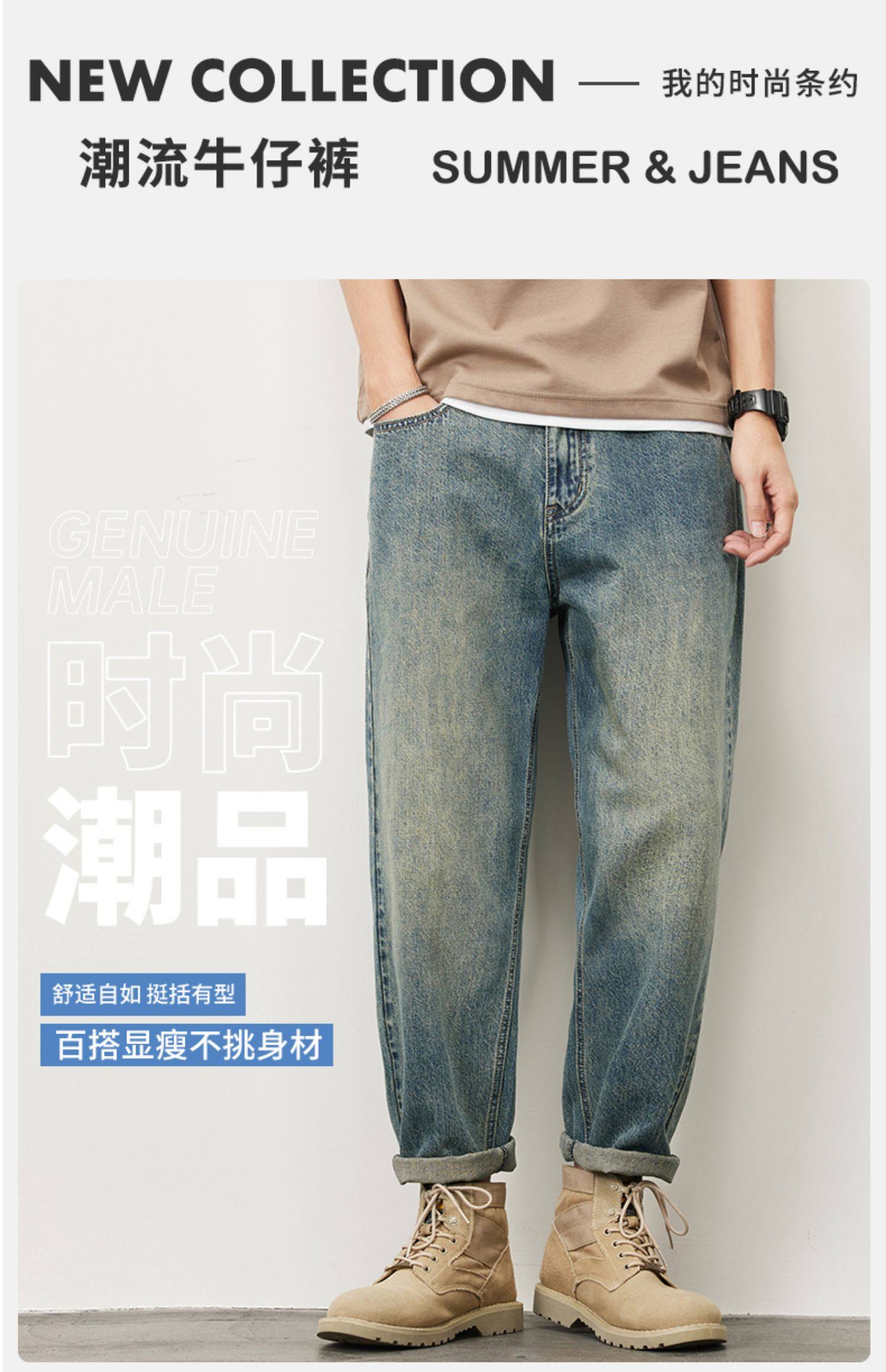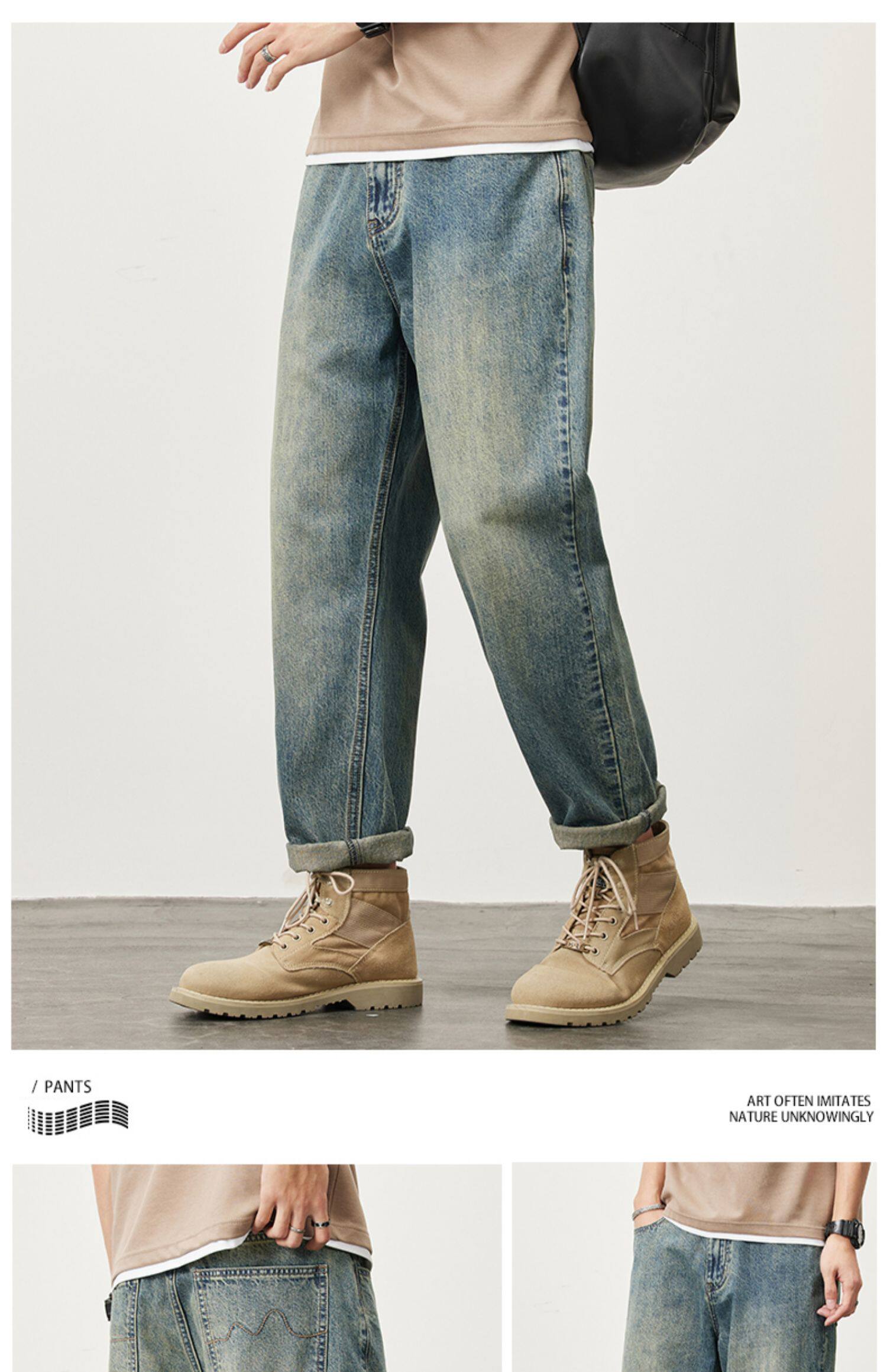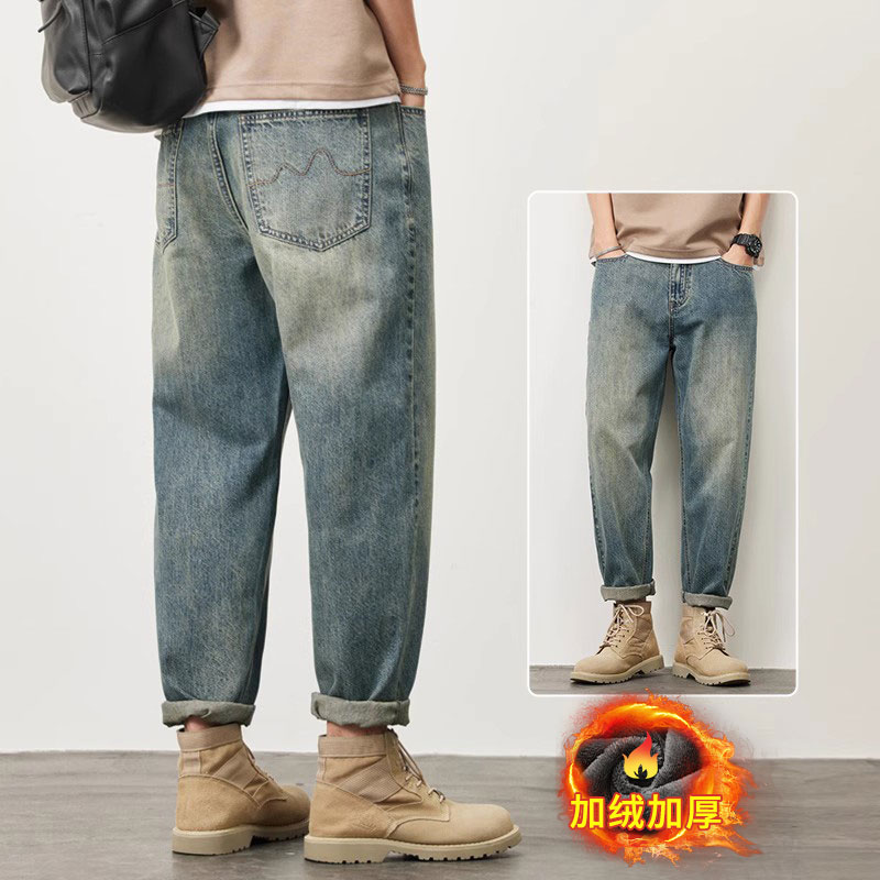 빈티지 청바지 남성용 아메리칸 스타일 트렌디 브랜드 루즈 스트레이트 하렘 9 포인트 캐주얼 롱 팬츠 2024 봄과 가을 뉴스토어 가기