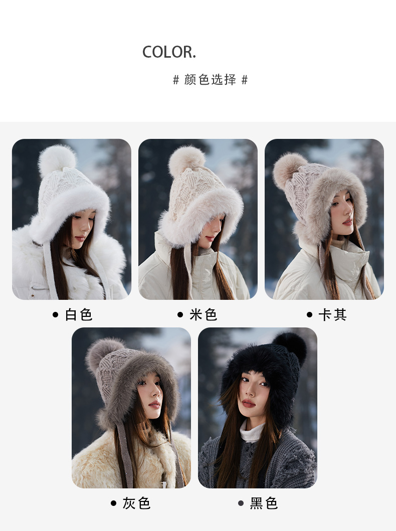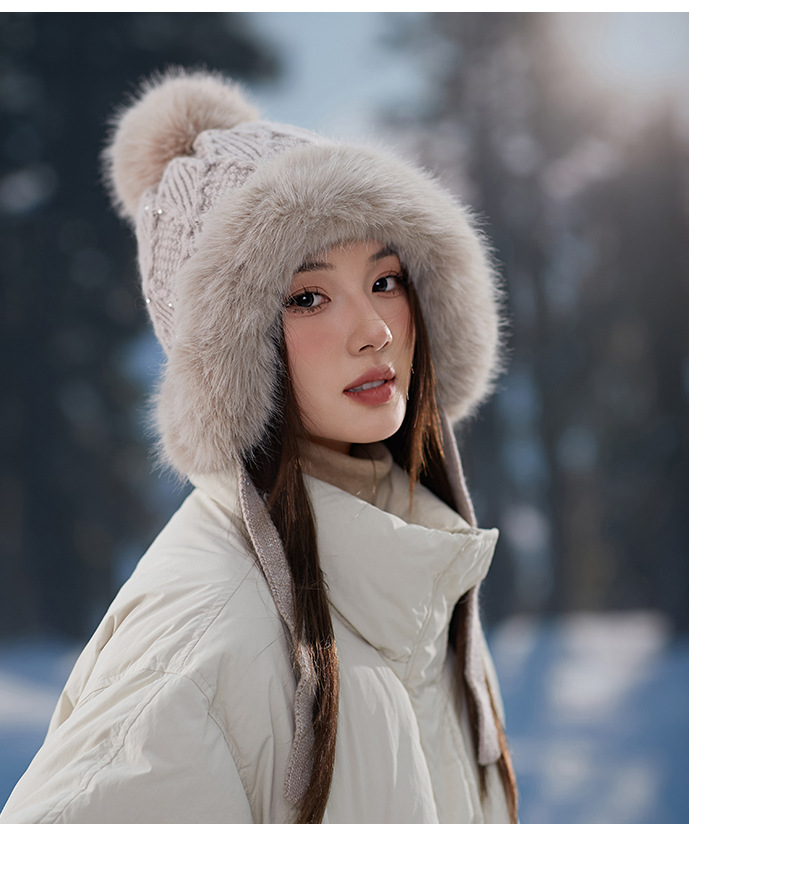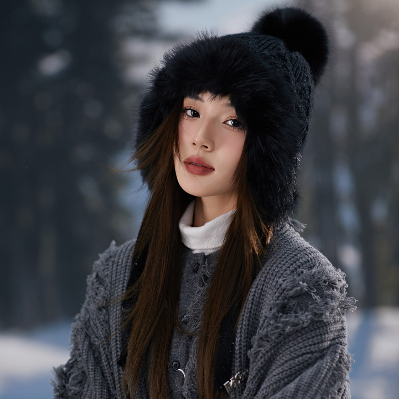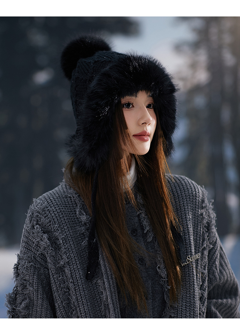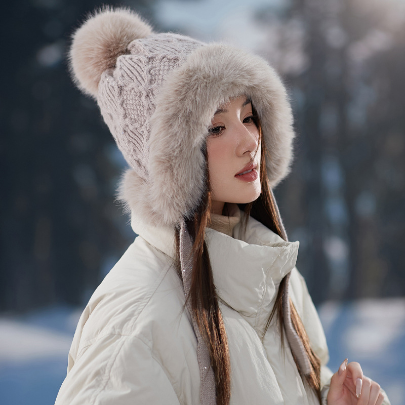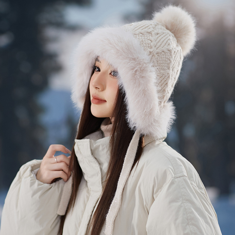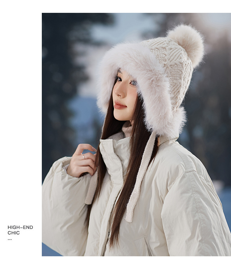 2024 새로운 봉제 Lei Feng Hat 여성의 겨울 사이클링 두꺼운 따뜻한 귀 보호 니트 양모 모자 동북 감기 보호