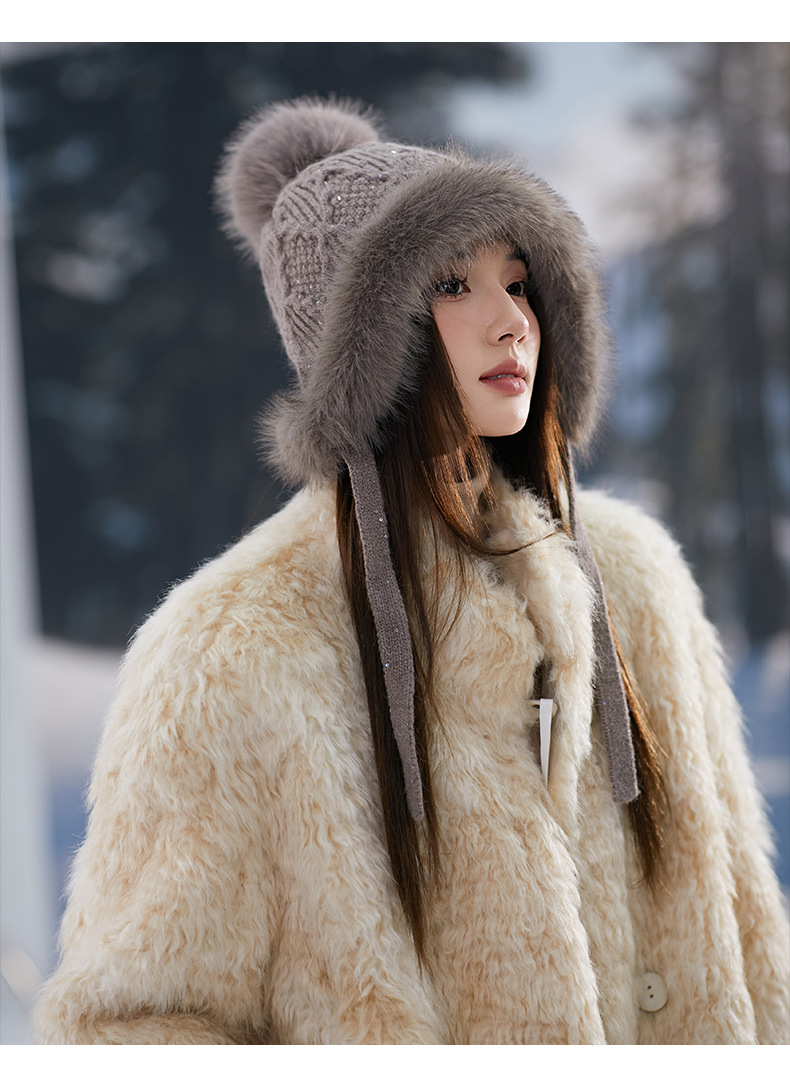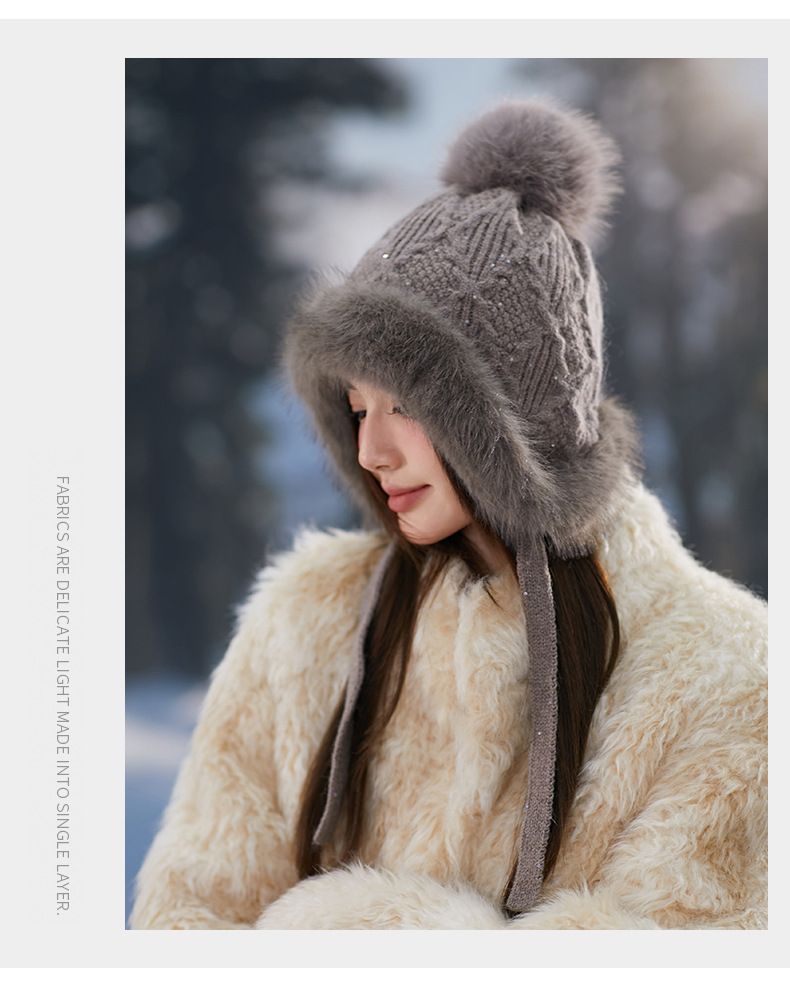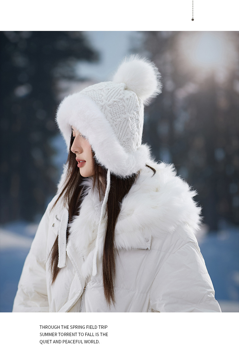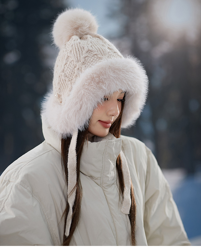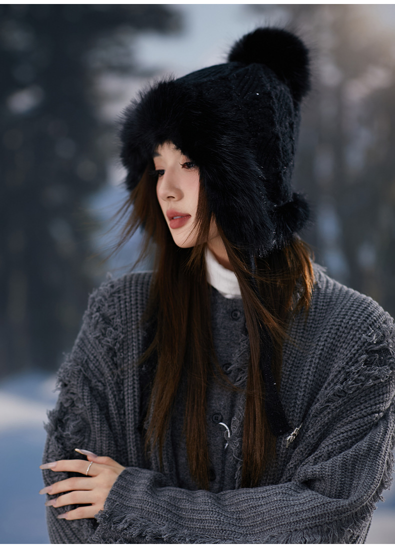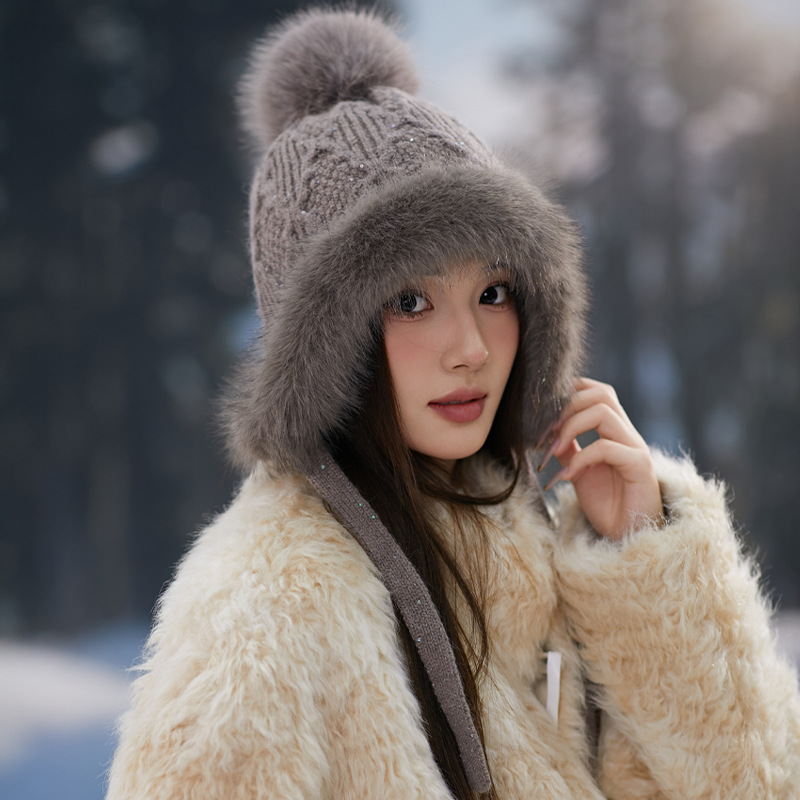 2024 새로운 봉제 Lei Feng Hat 여성의 겨울 사이클링 두꺼운 따뜻한 귀 보호 니트 양모 모자 동북 감기 보호