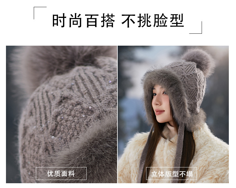 2024 새로운 봉제 Lei Feng Hat 여성의 겨울 사이클링 두꺼운 따뜻한 귀 보호 니트 양모 모자 동북 감기 보호스토어 가기