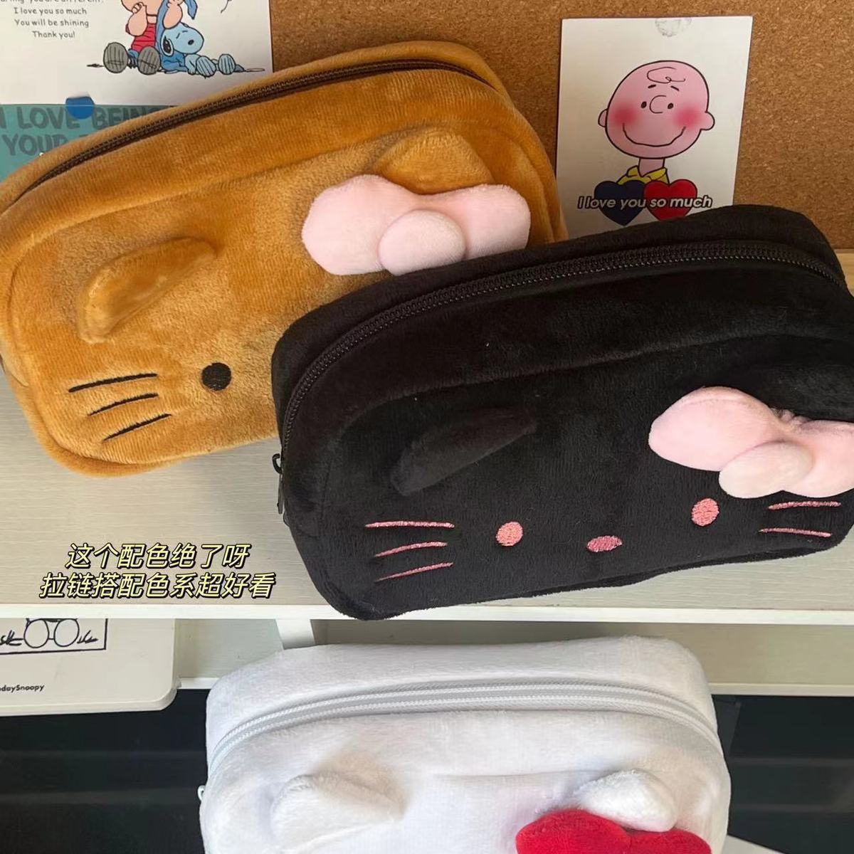 새로운 귀여운 헬로 키티 봉제 연필 가방 일본 만화 대용량 문구 보관 가방 학생 문구 상자스토어 가기
