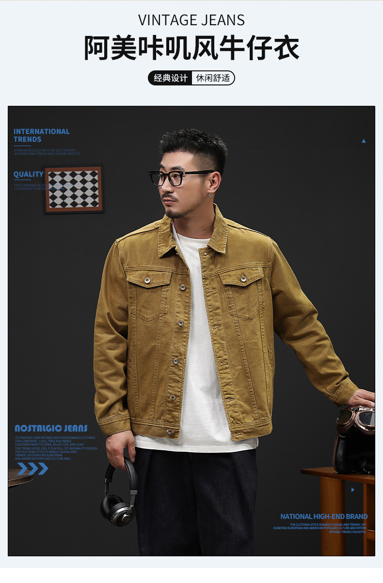 플러스 사이즈 남자의 가을과 겨울 새로운 도착 Ami Kaji 스타일 데님 재킷 남자의 느슨한 순면 미국 스타일 빈티지 데님 재킷스토어 가기