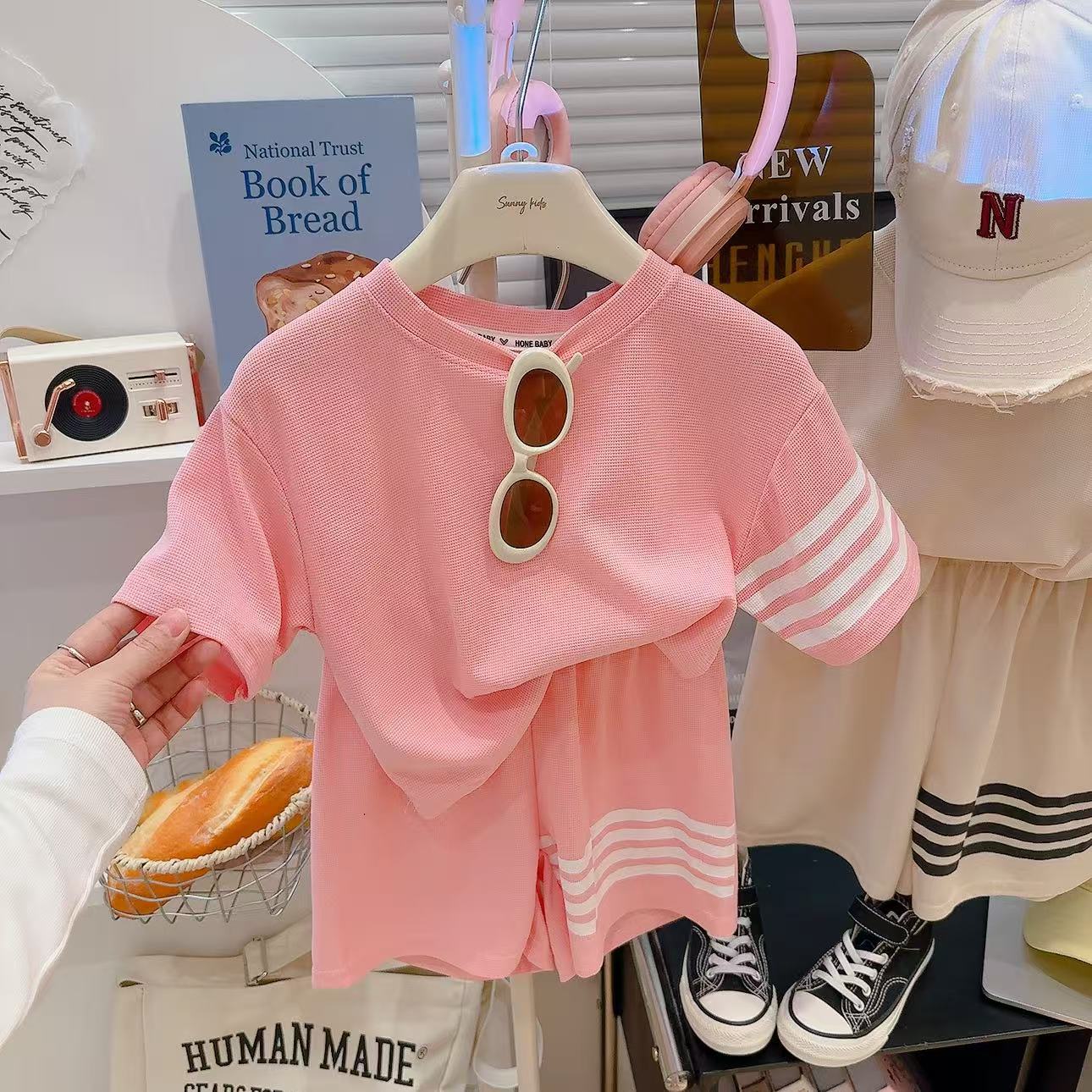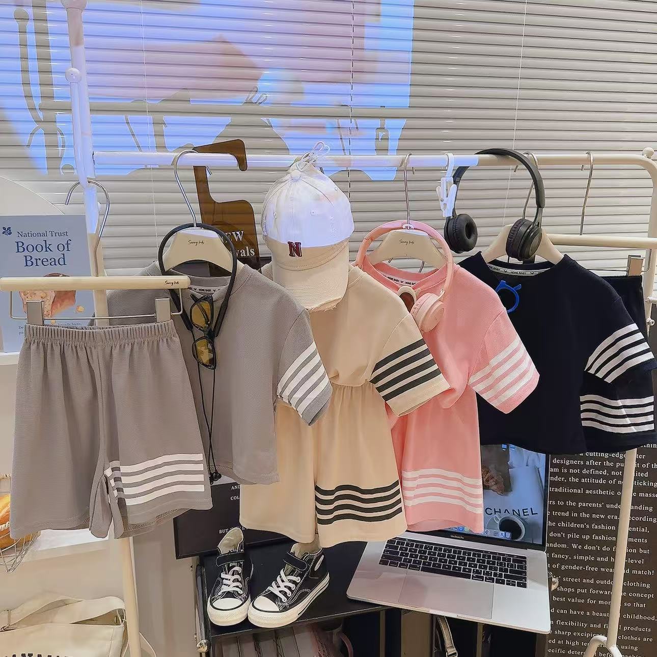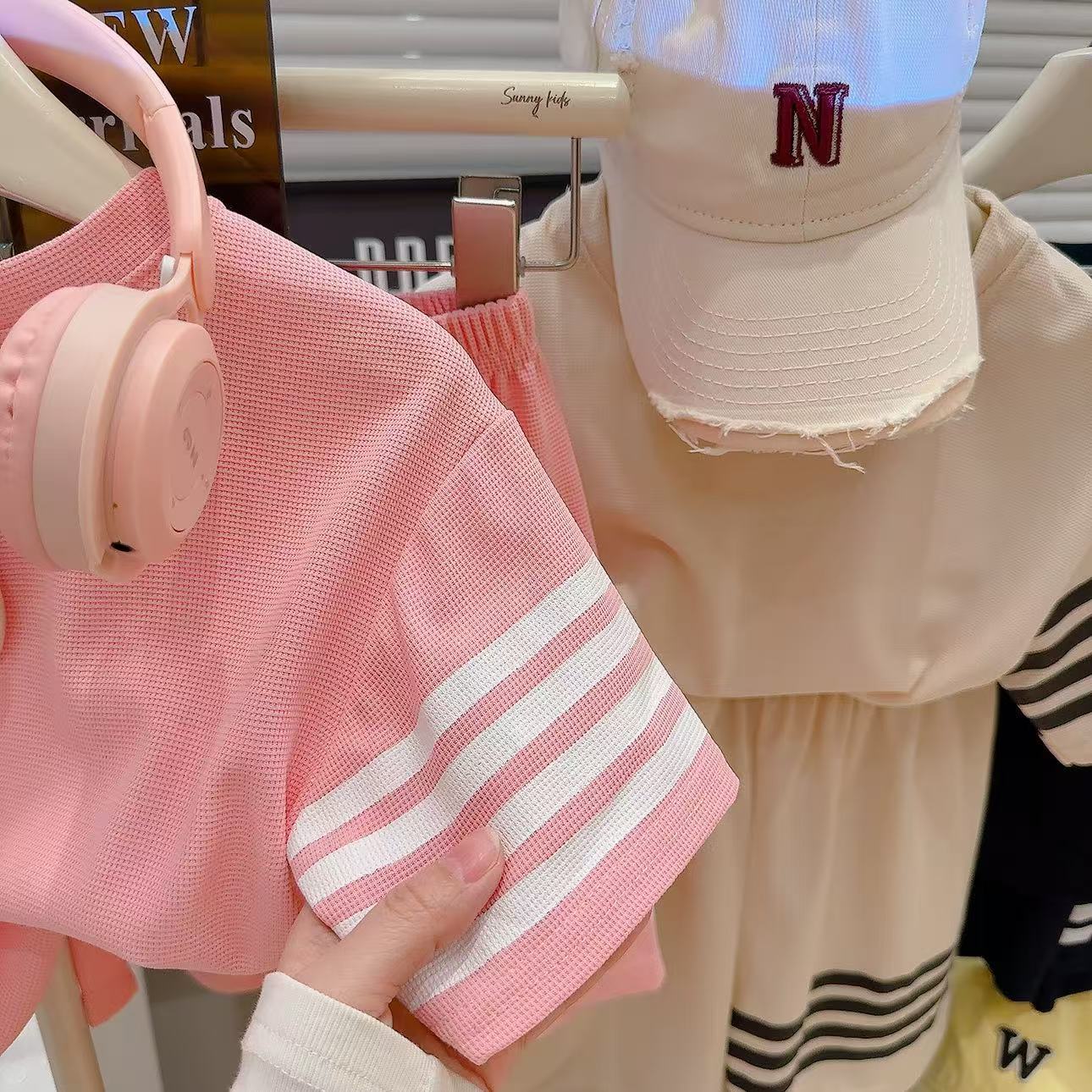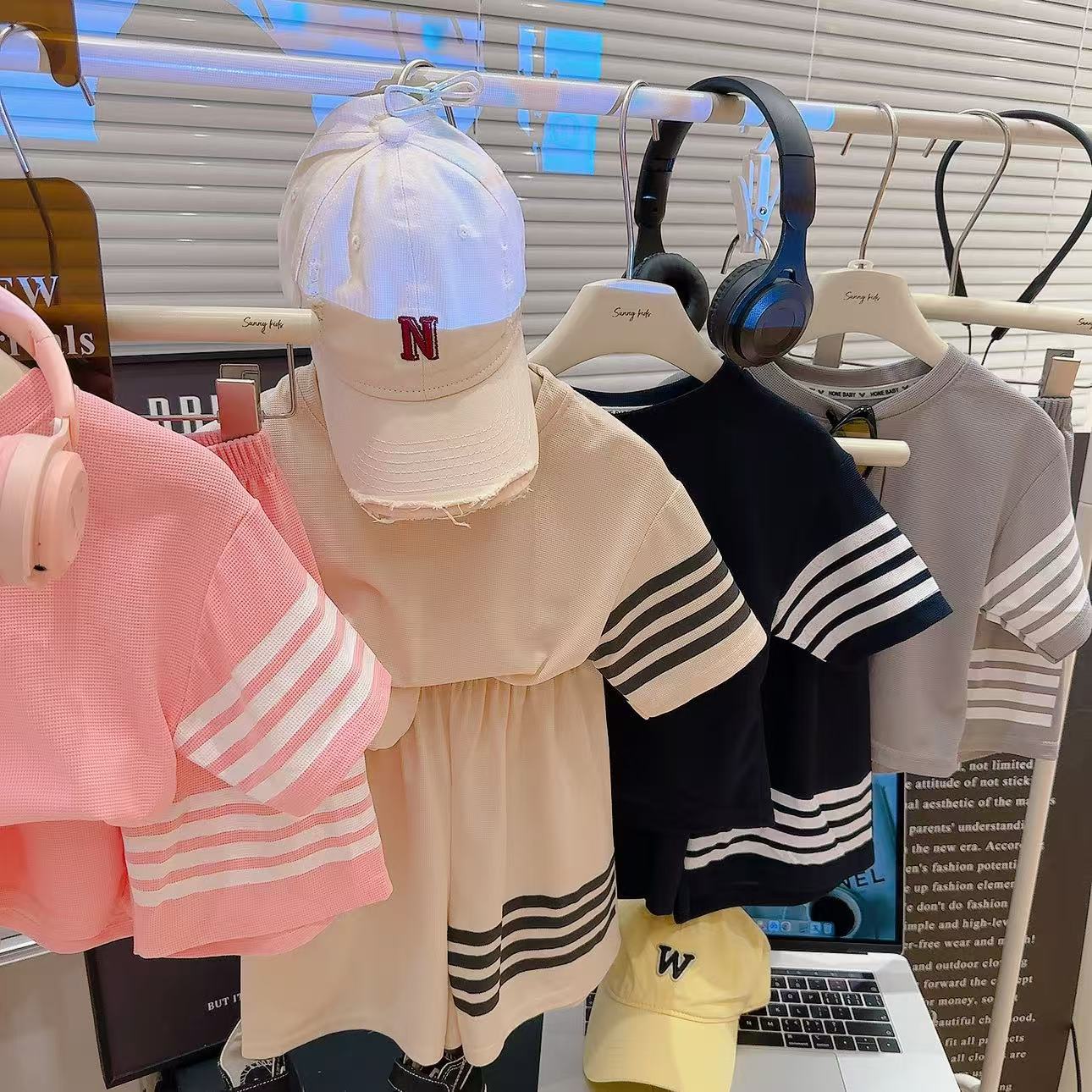 소년 소녀 아기 스포츠 세트 2025 봄 새로운 캐주얼 튀김 거리 짧은 소매 반바지 소년 잘 생긴 투피스 세트스토어 가기