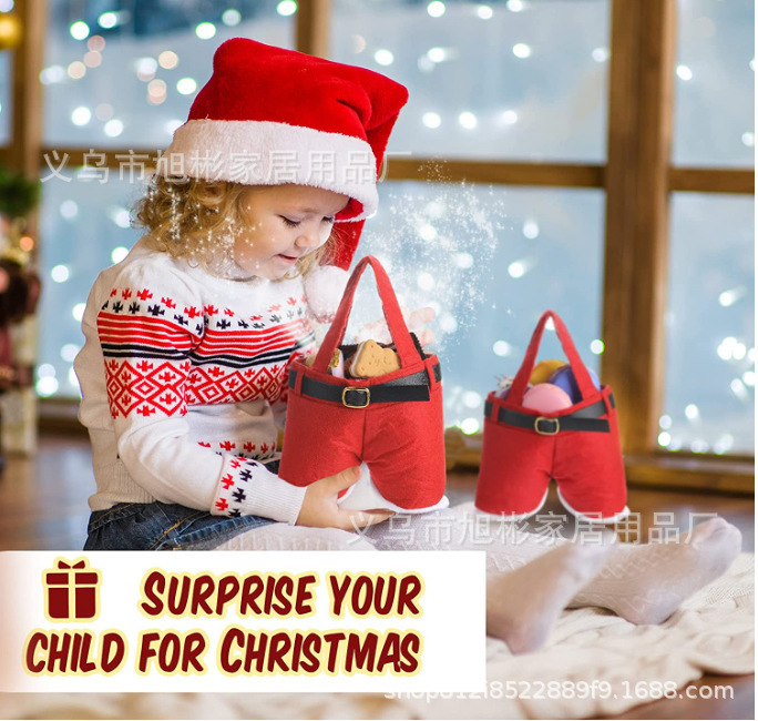 TEMU 폭발성 산타 클로스 반바지 선물 가방 크리스마스 선물 보관 가방 크리스마스 스트랩 바지 사탕