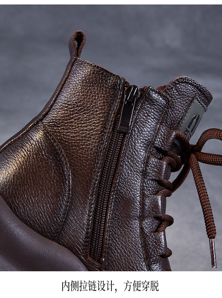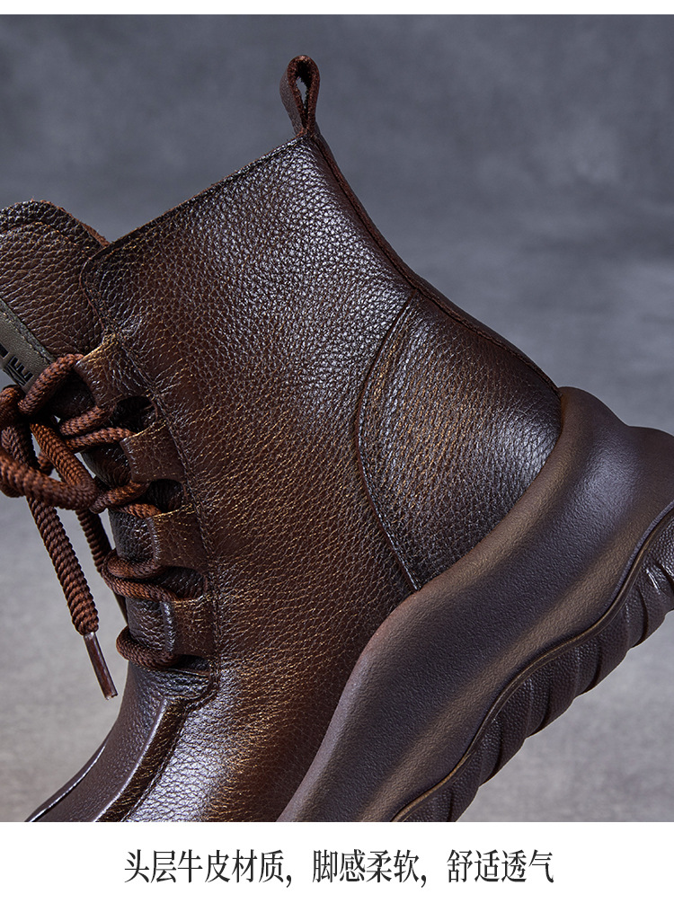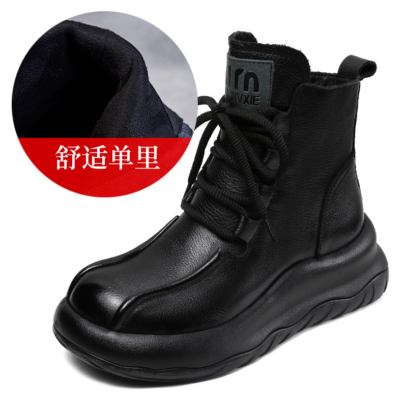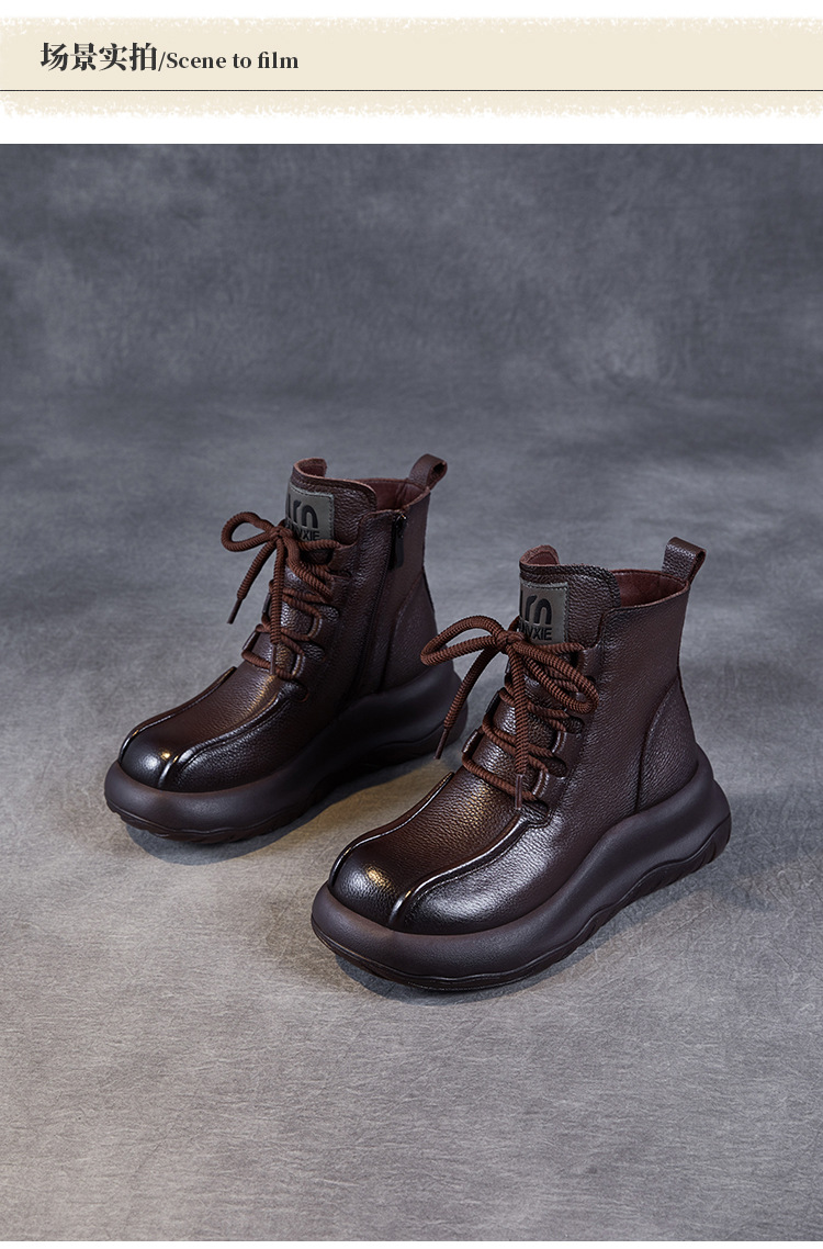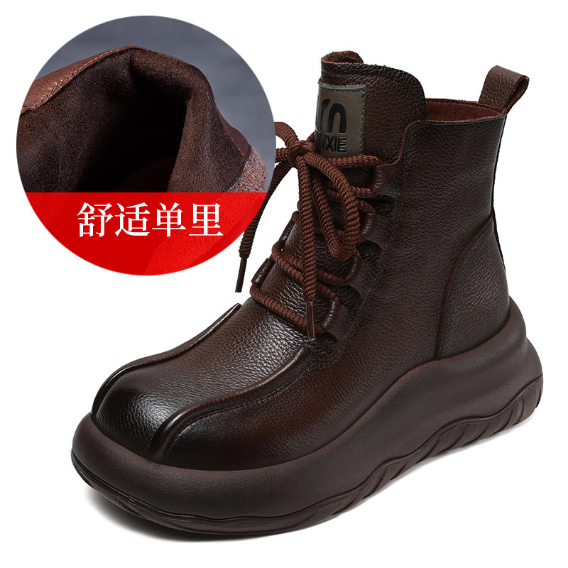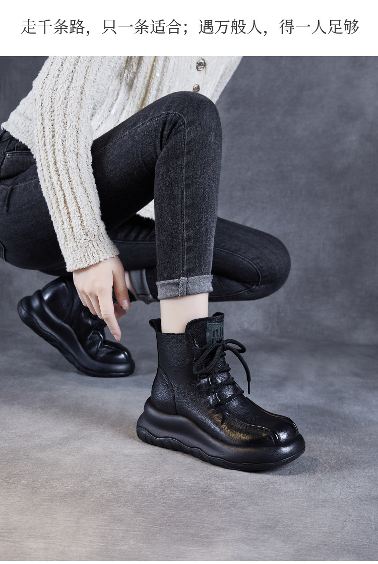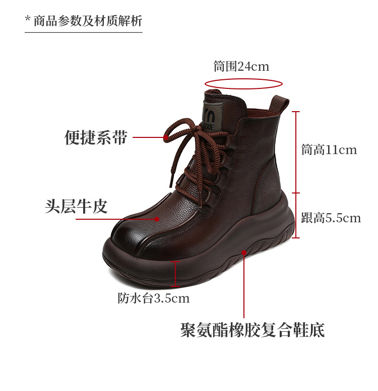 2024 가을 및 겨울 플랫폼 하이 단독 빈티지 마틴 부츠 여성 정품 가죽 부츠 로우 탑 라운드 헤드 Cowhide 수제 발목 부츠