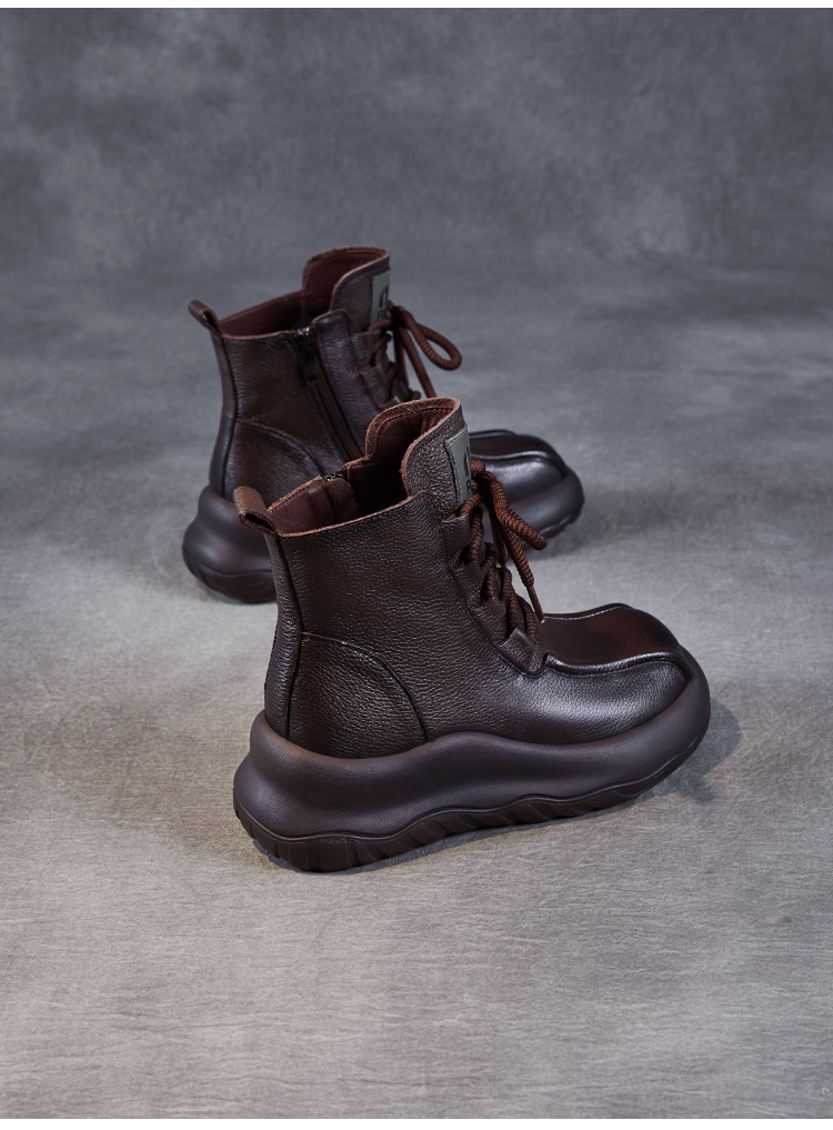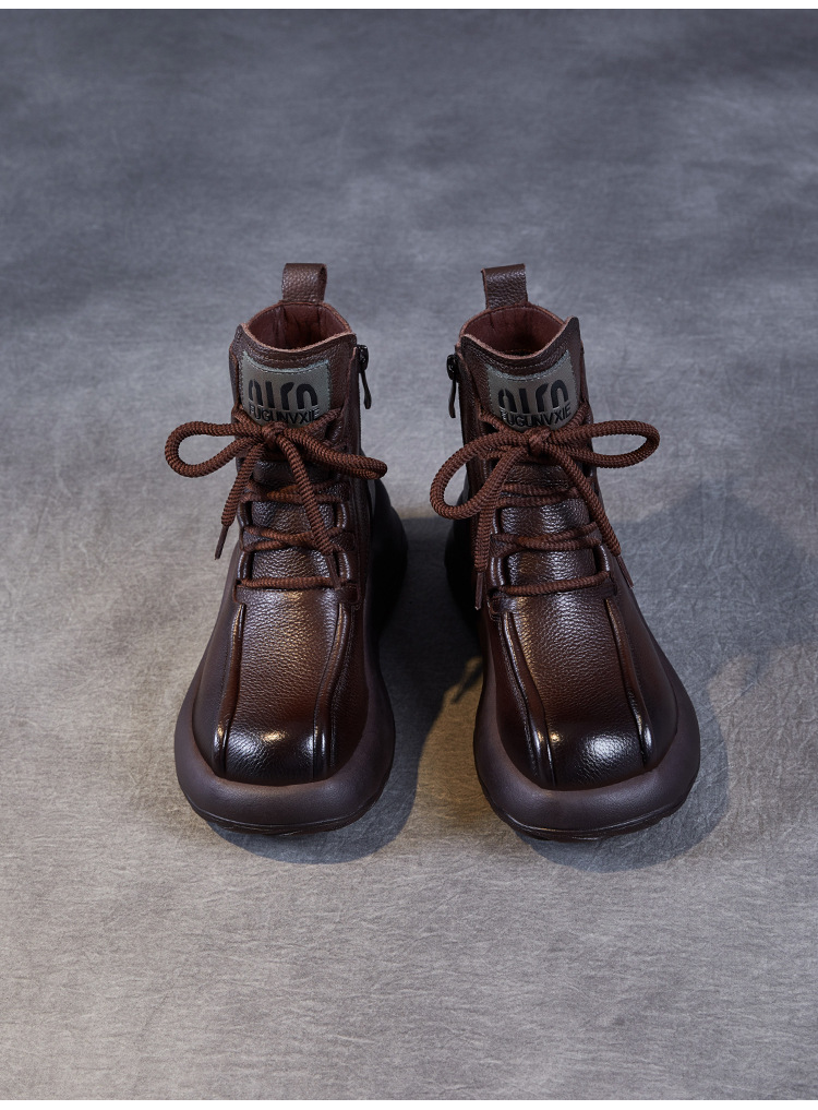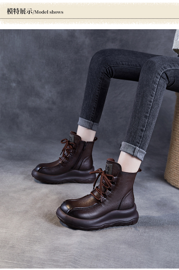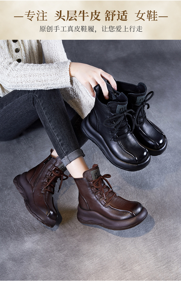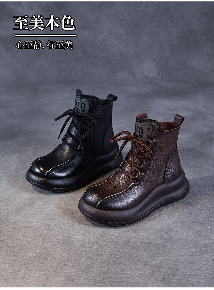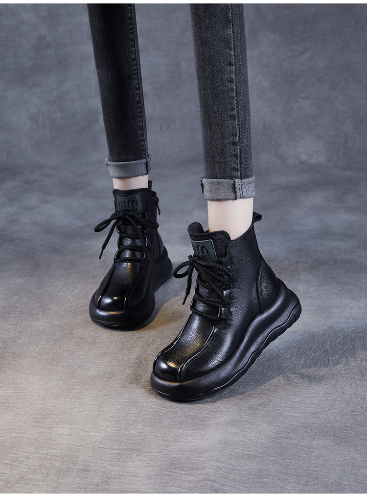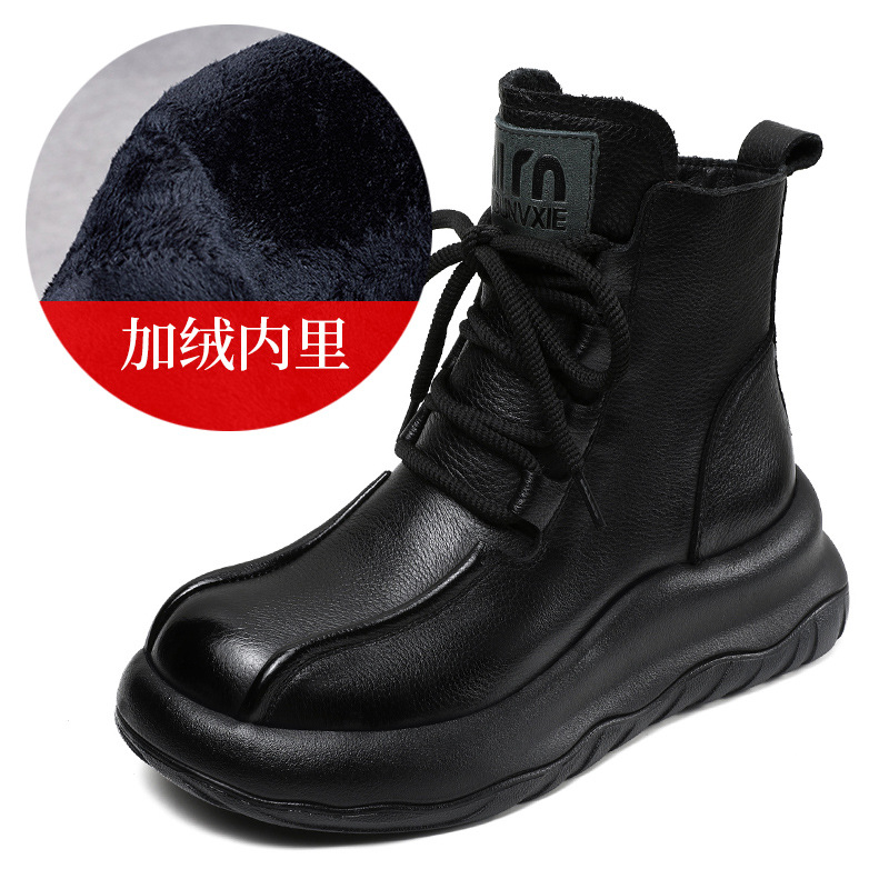 2024 가을 및 겨울 플랫폼 하이 단독 빈티지 마틴 부츠 여성 정품 가죽 부츠 로우 탑 라운드 헤드 Cowhide 수제 발목 부츠