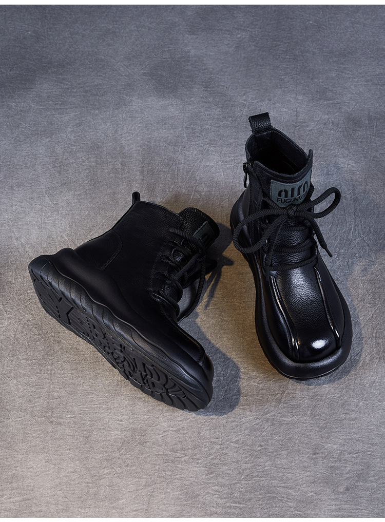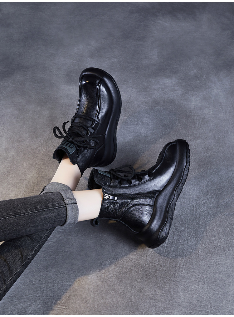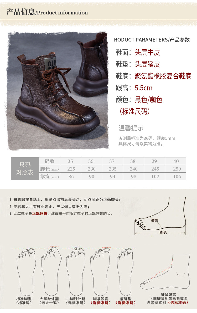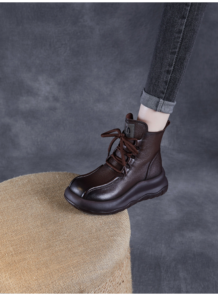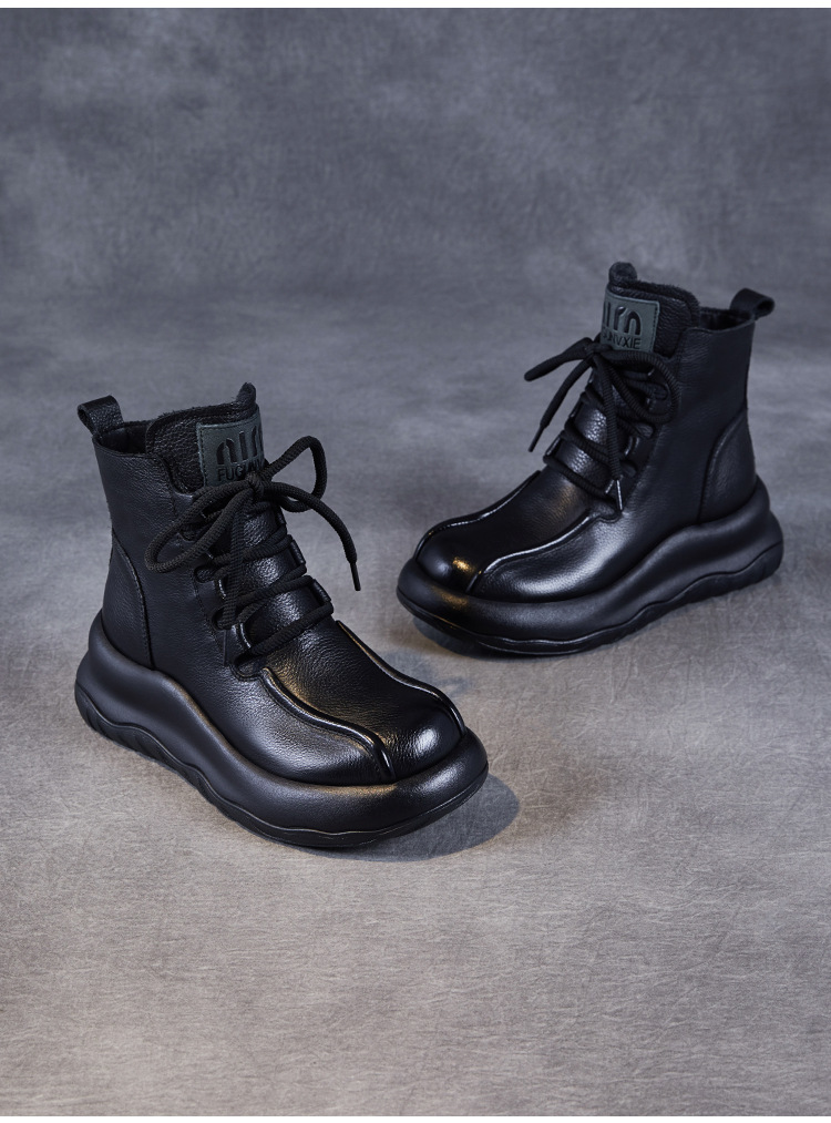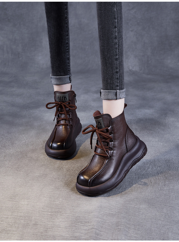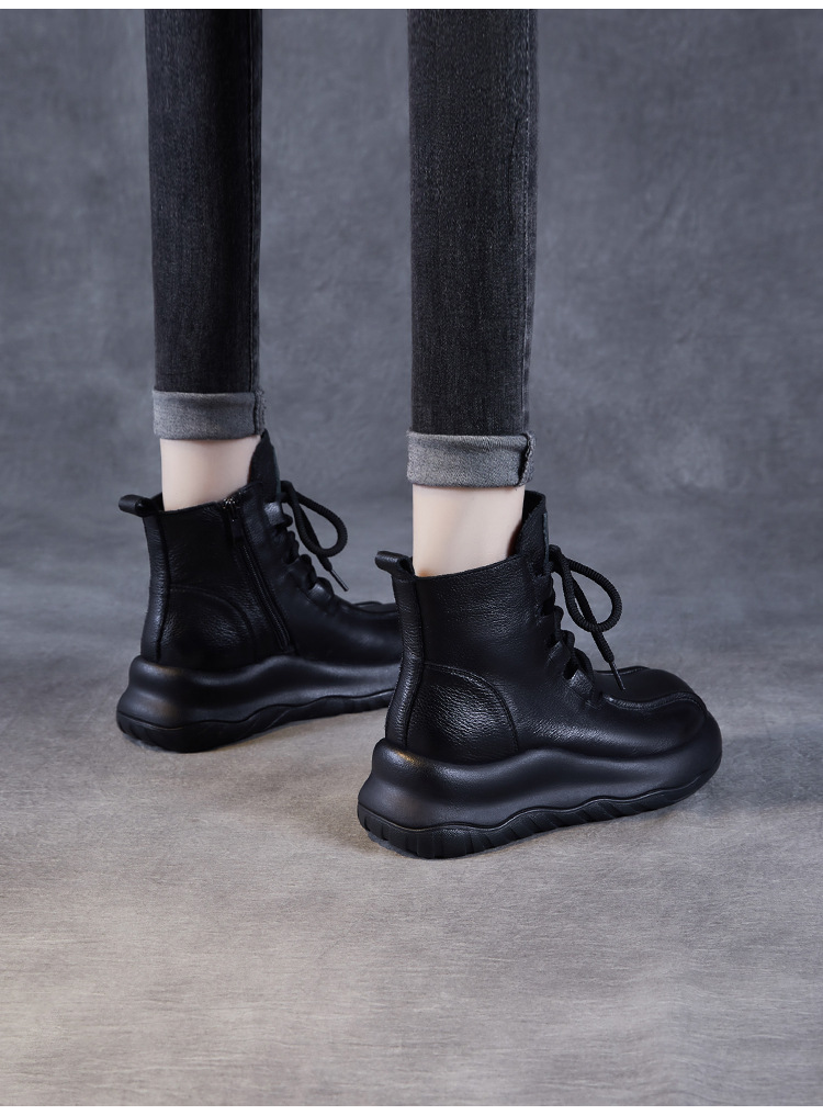 2024 가을 및 겨울 플랫폼 하이 단독 빈티지 마틴 부츠 여성 정품 가죽 부츠 로우 탑 라운드 헤드 Cowhide 수제 발목 부츠