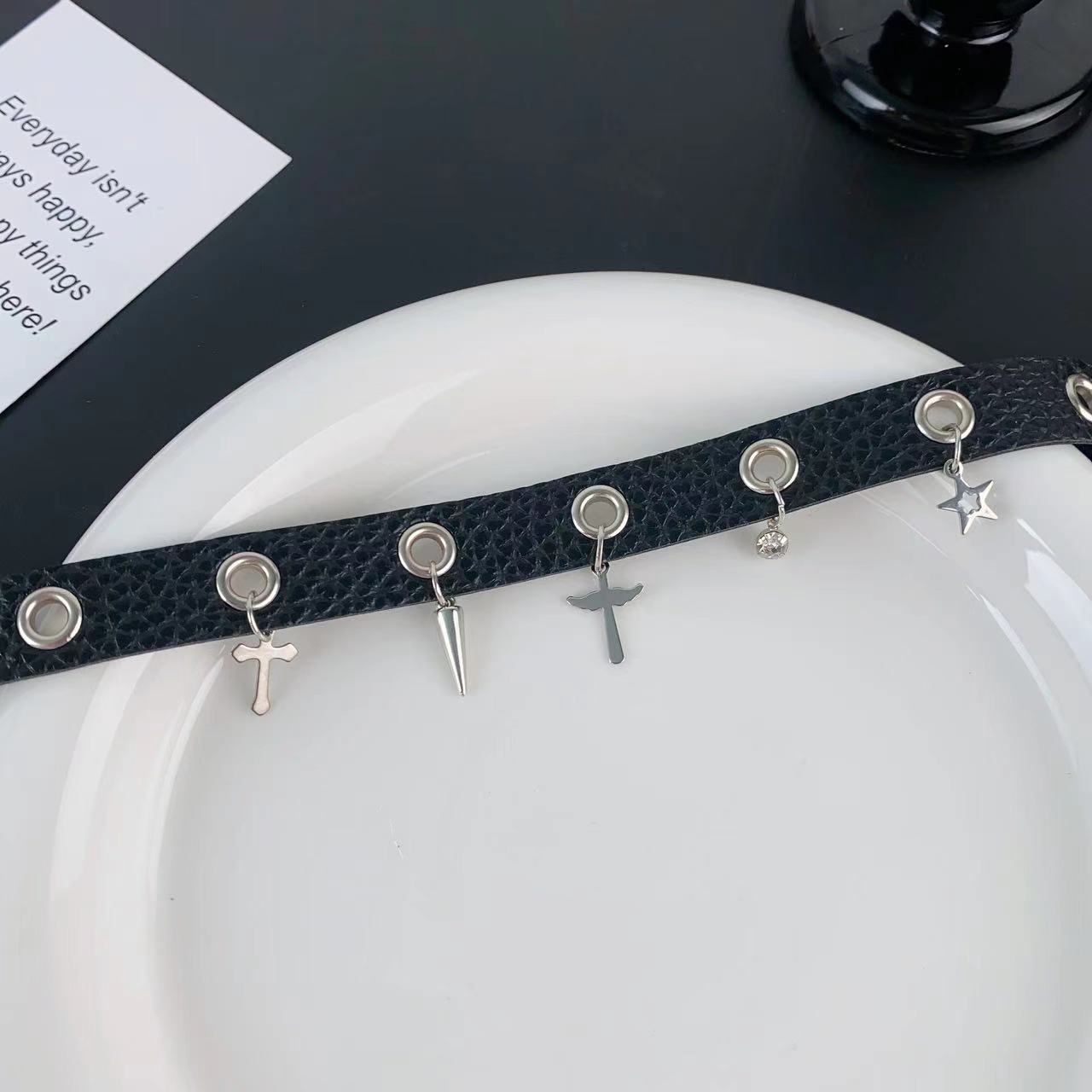틈새 디자인 센스 레트로 펑크 금속 펜던트 가죽 목 목걸이 여성 쿨 초커 칼라