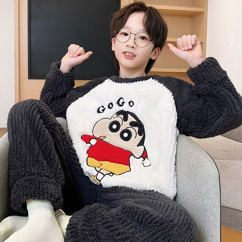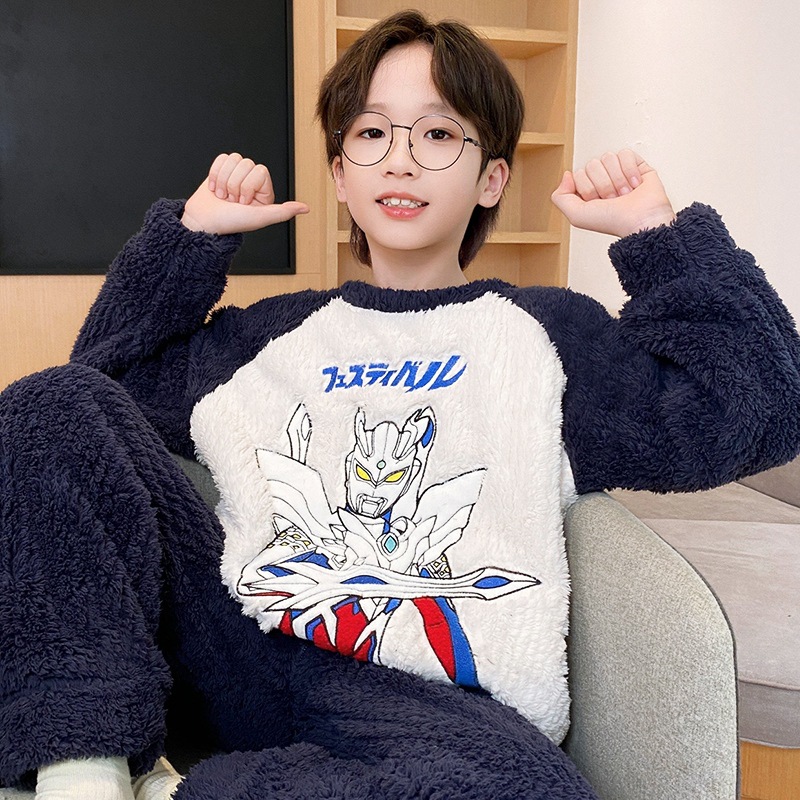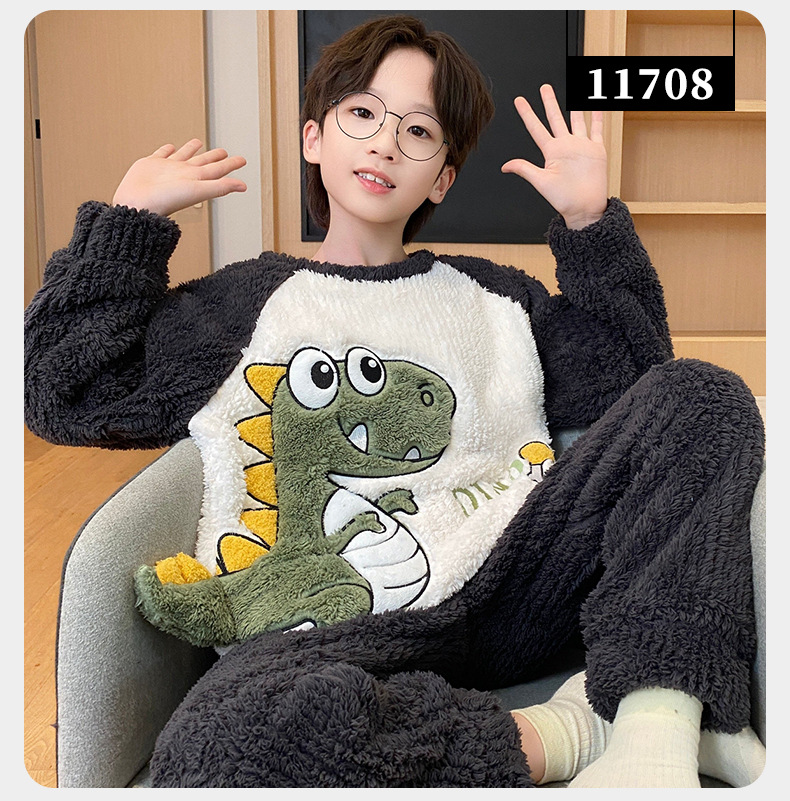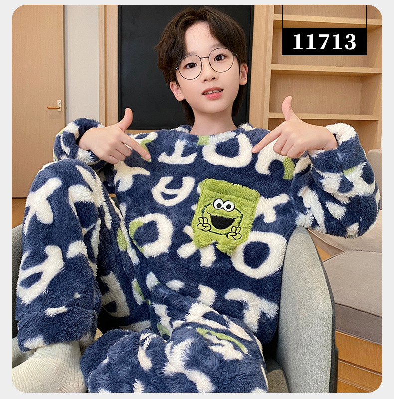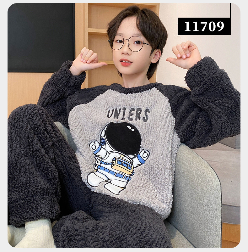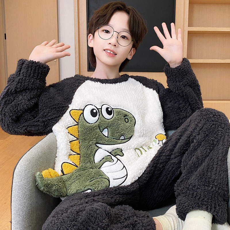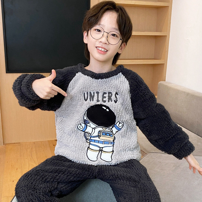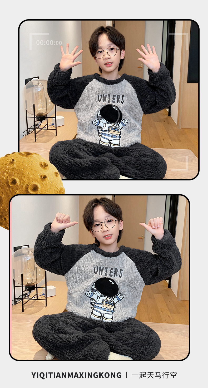 산호 양털 어린이 잠옷 가을과 겨울 소년 귀여운 만화 패딩 플란넬 어린이 따뜻한 집 옷스토어 가기