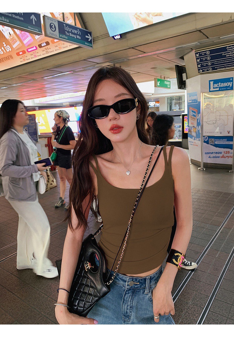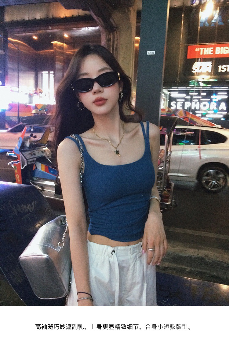 브랜딩 기모 더블 숄더 스트랩 카미솔 여성용 벨트 가슴 패드 통합 고정 컵 내부 따뜻한 방한베이스 조끼스토어 가기