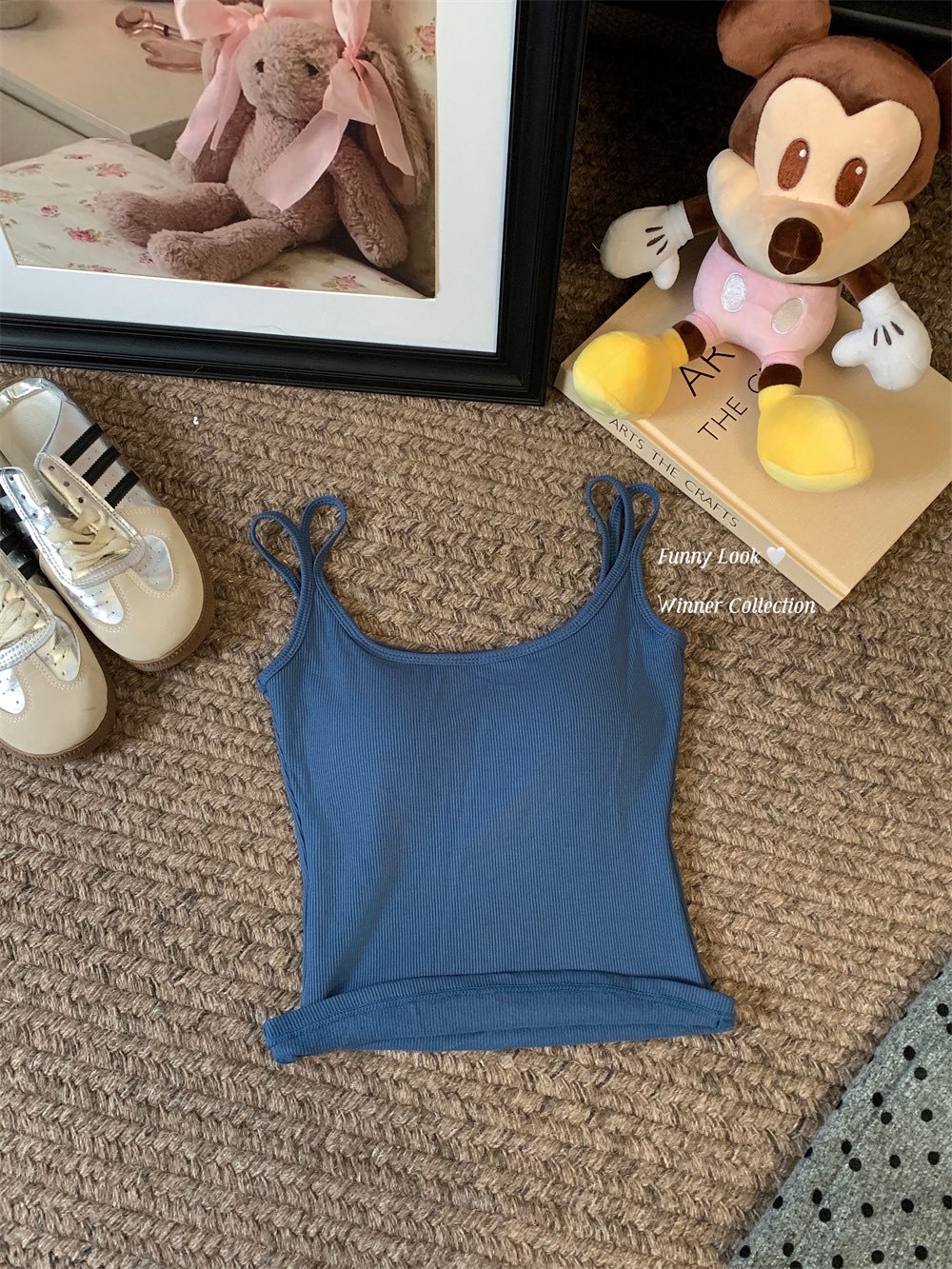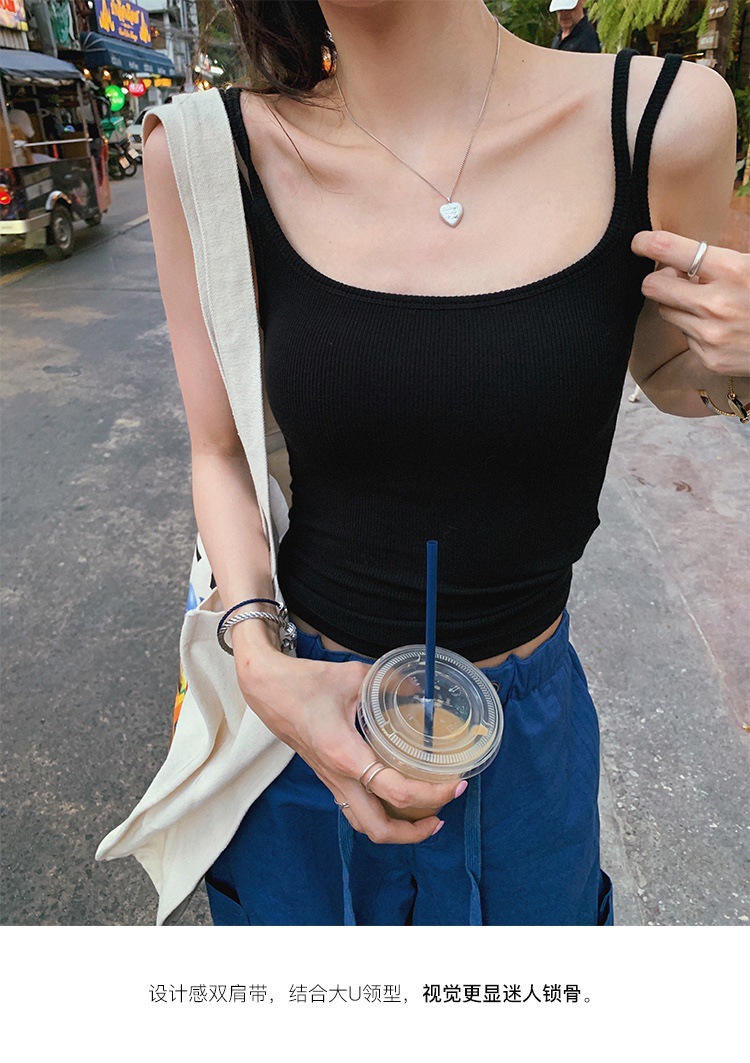 브랜딩 기모 더블 숄더 스트랩 카미솔 여성용 벨트 가슴 패드 통합 고정 컵 내부 따뜻한 방한베이스 조끼