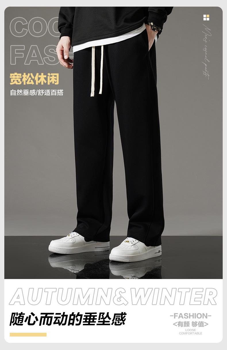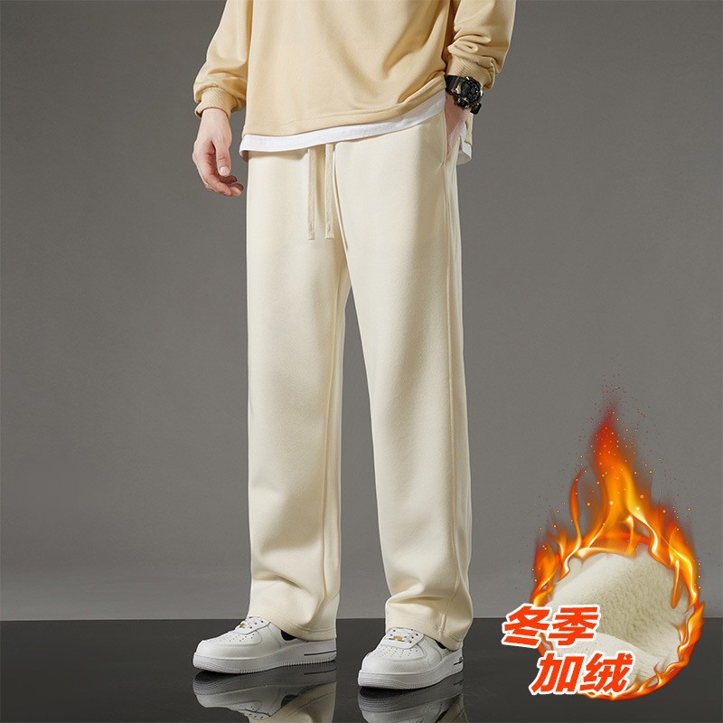트렌디 한 브랜드 느슨한 스포츠 바지 남자 가을 겨울 미국 스트레이트 바지 코튼 드레인 캐주얼 기모 두꺼운 바지