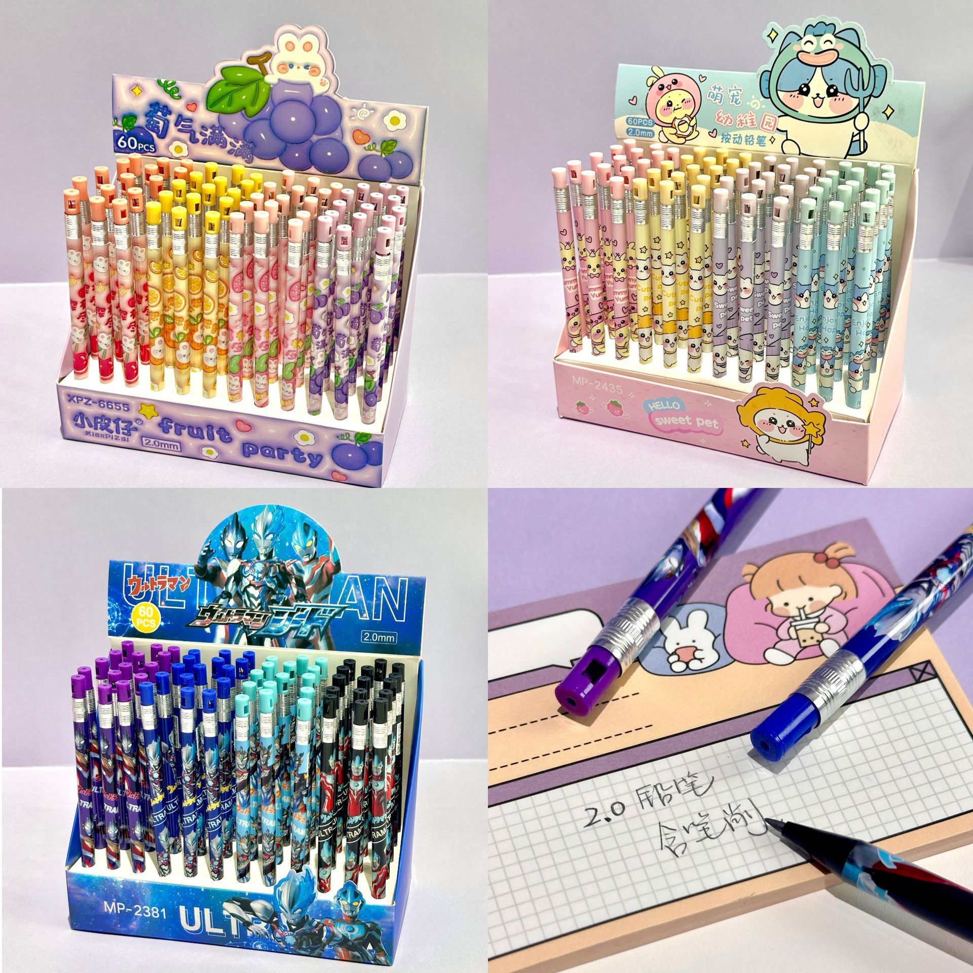 연필 학습 문구 용품을 쓰는 초등학생을위한 만화 2.0 자동 연필 상자 거친 코어 리필 리필