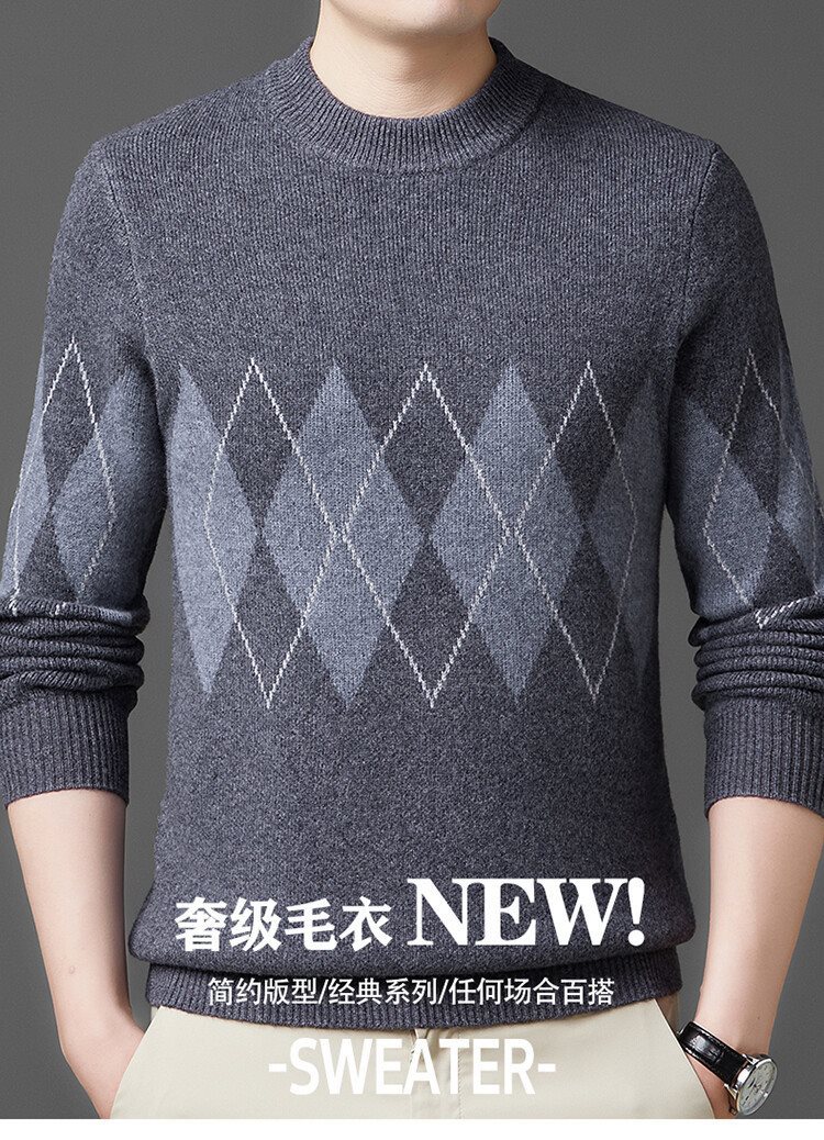 2024 새로운 480g 100 울 스웨터 남성용 두꺼운 스웨터 중년 남성베이스 셔츠 아빠 스웨터스토어 가기
