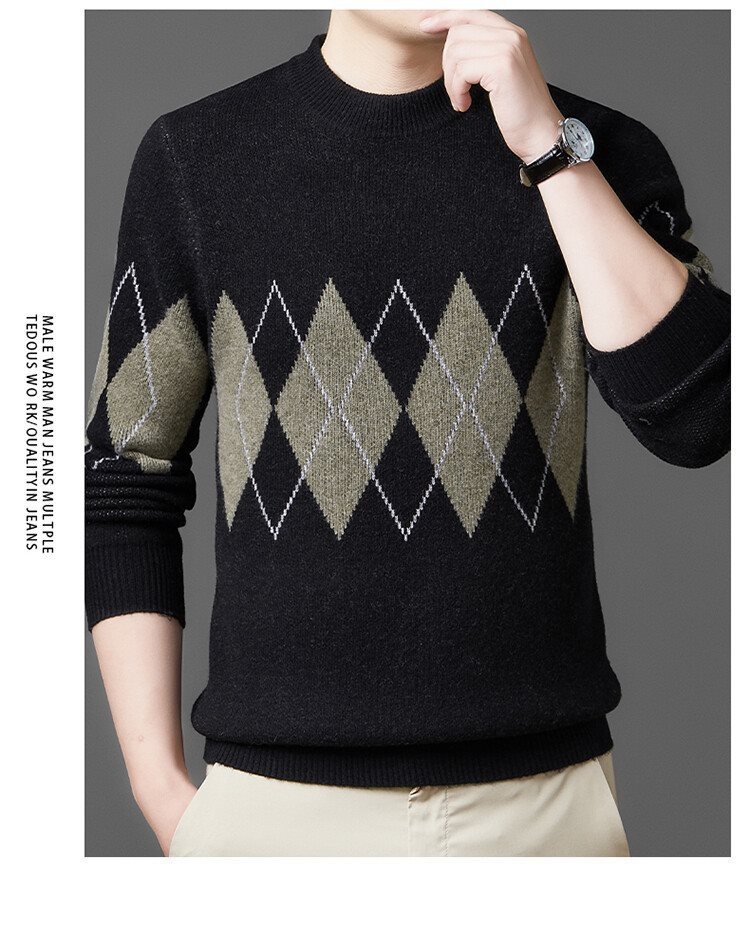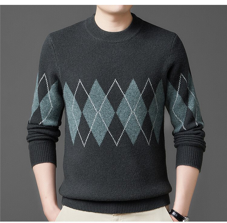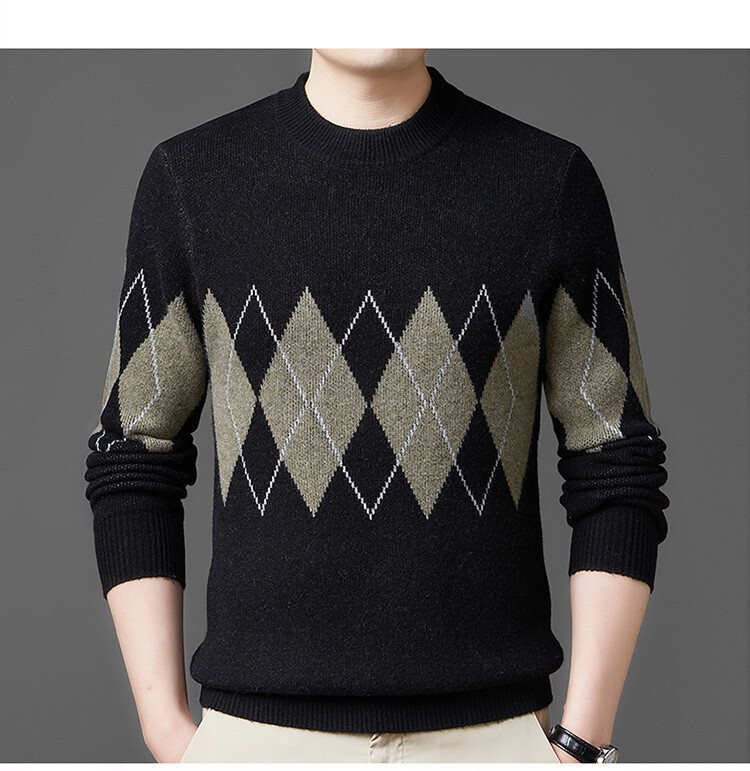 2024 새로운 480g 100 울 스웨터 남성용 두꺼운 스웨터 중년 남성베이스 셔츠 아빠 스웨터