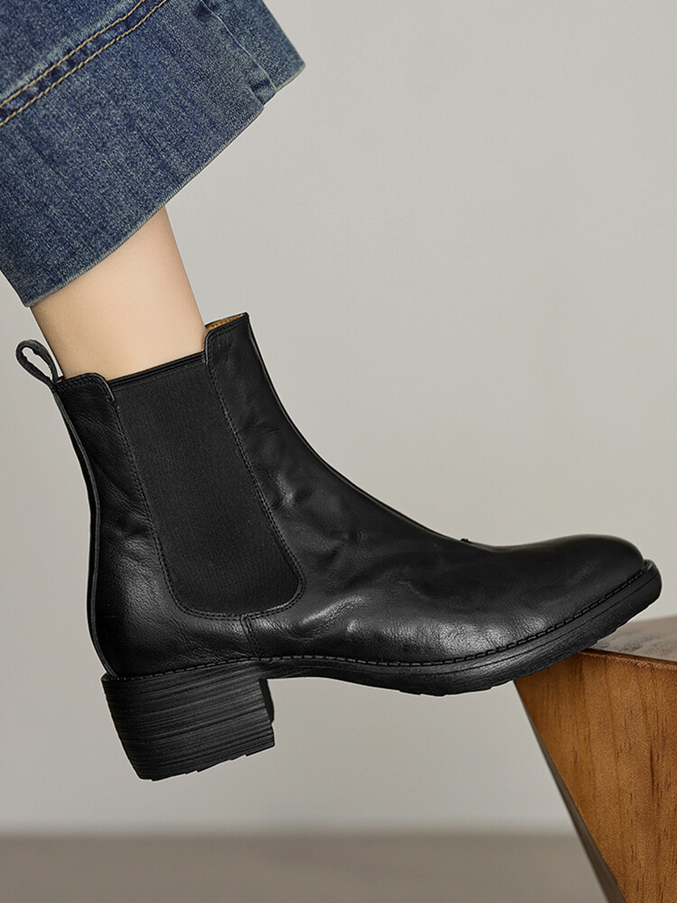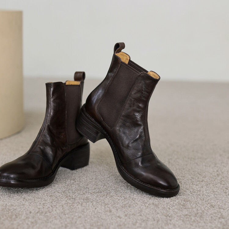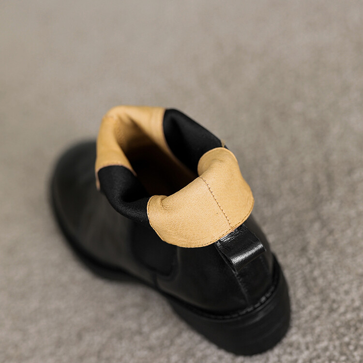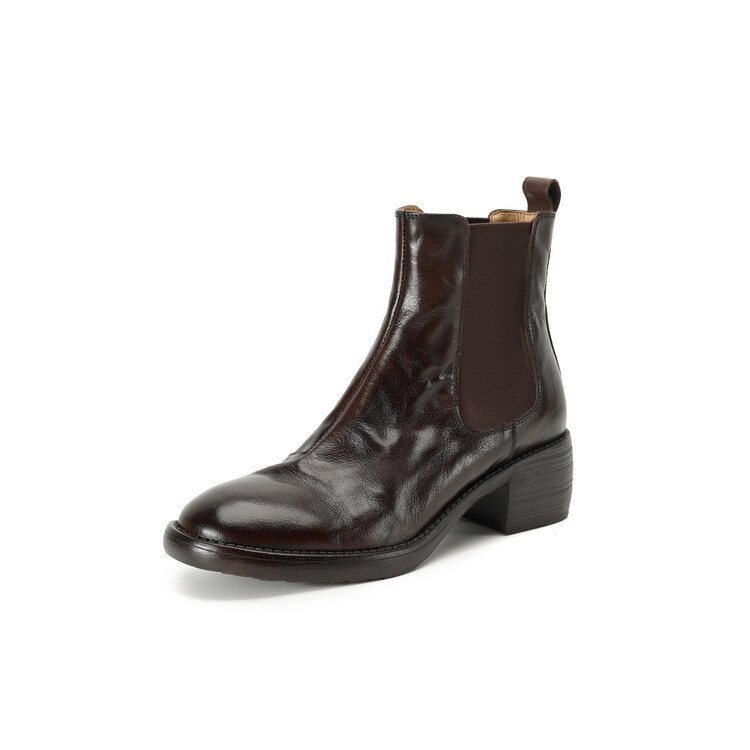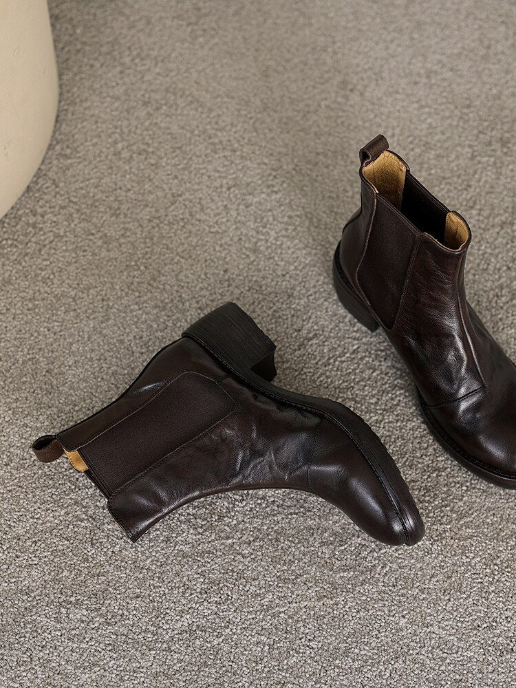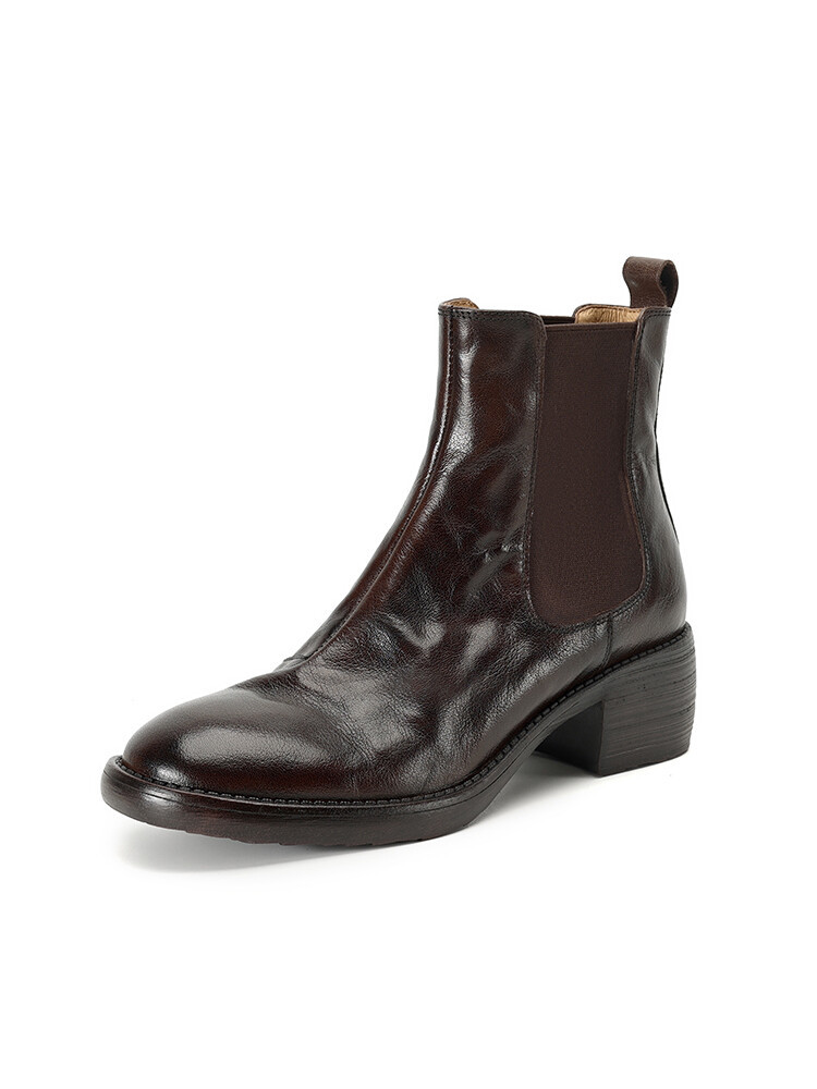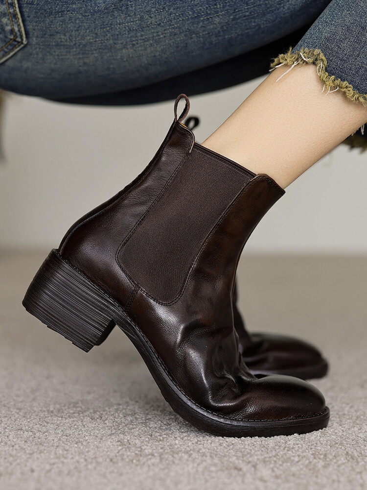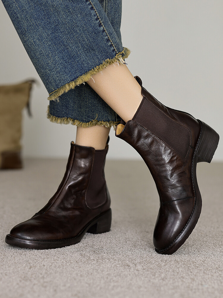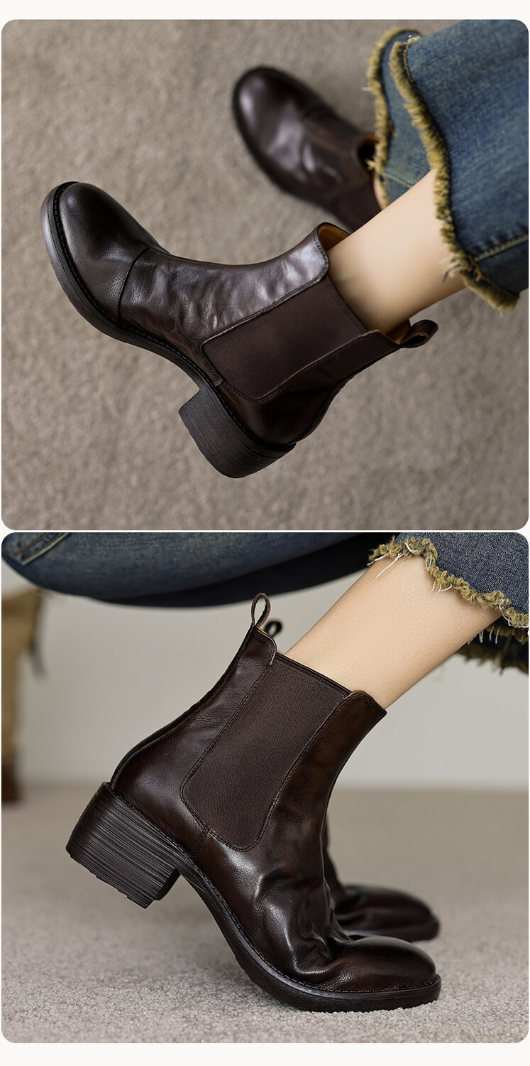 빈티지 카우보이 영국 스타일 라운드 헤드 첼시 부츠 여자 가을 겨울 다크 브라운 청키 힐 마틴 부츠 봄과 가을 싱글 부츠