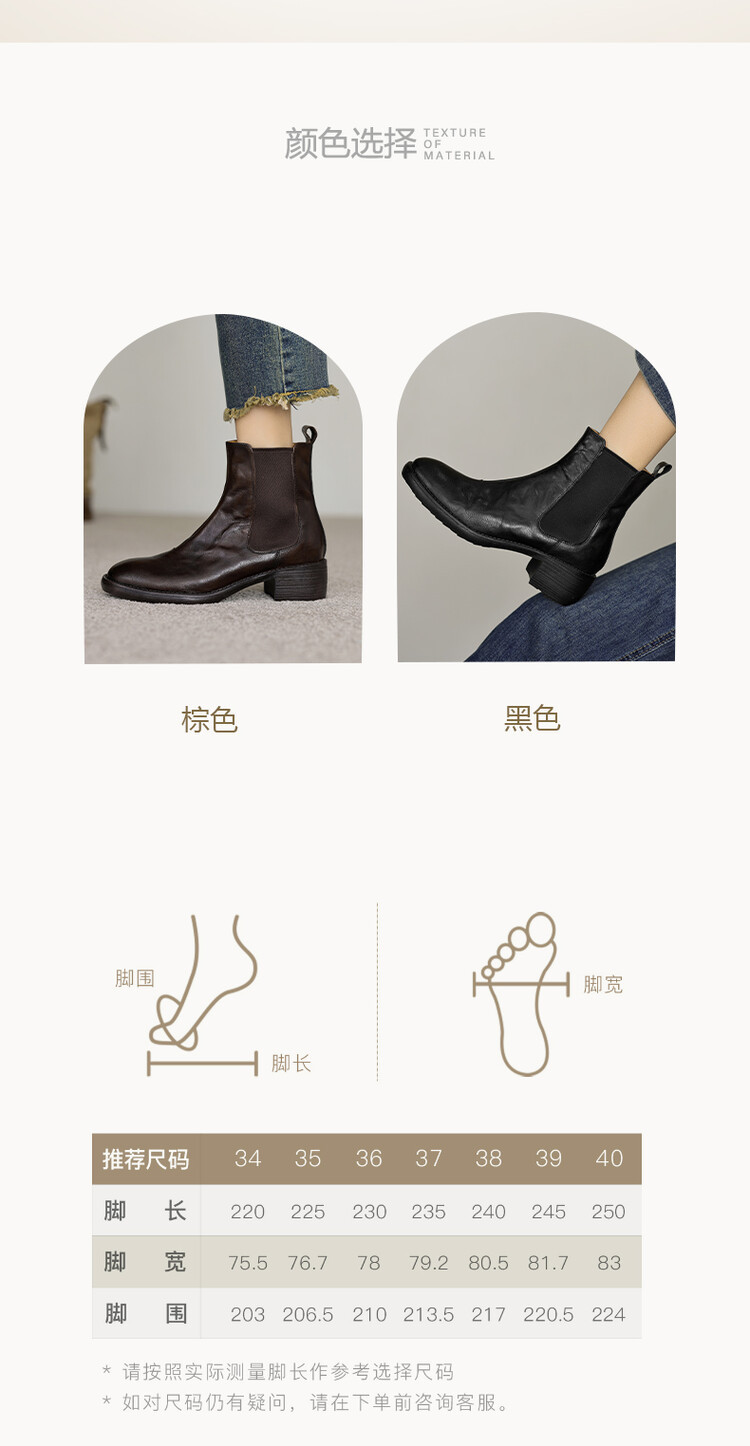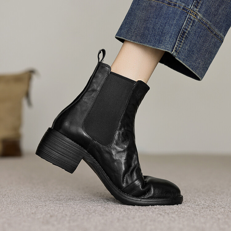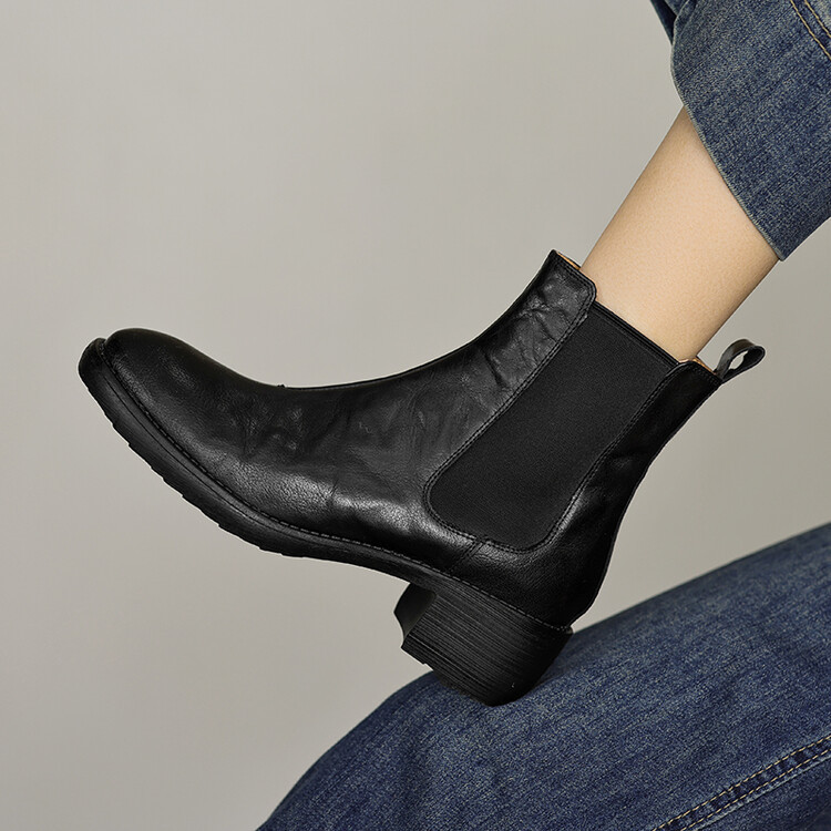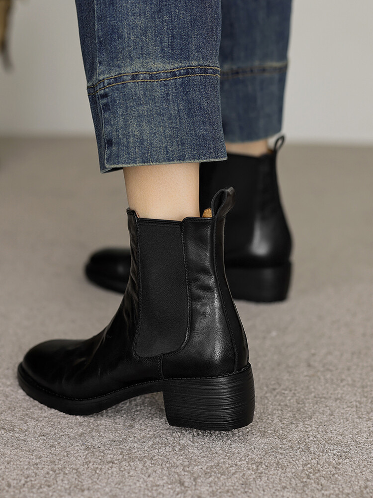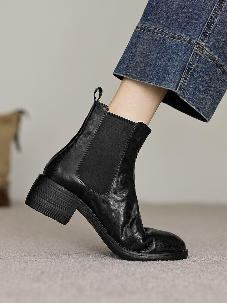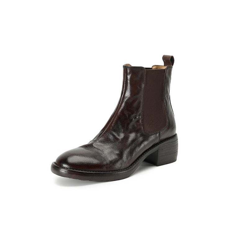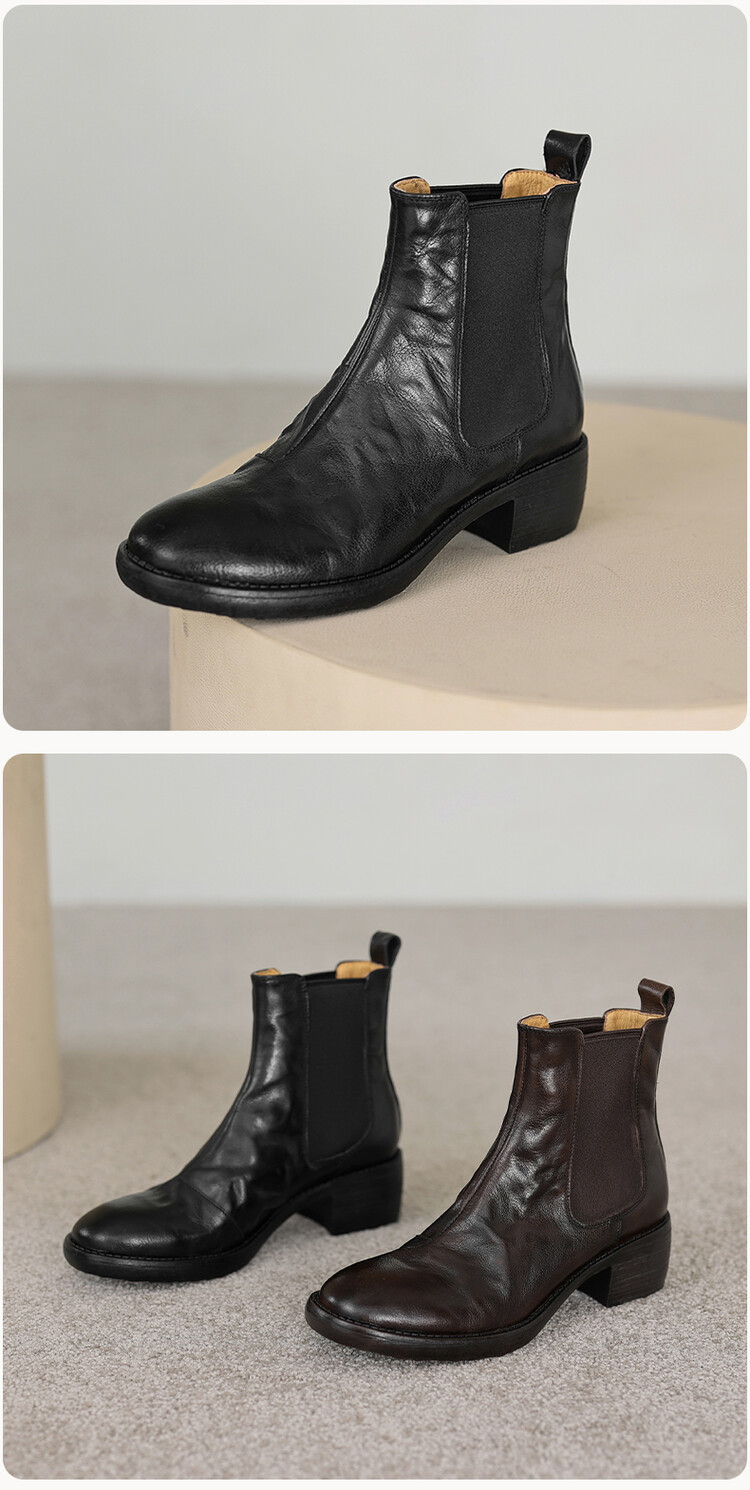 빈티지 카우보이 영국 스타일 라운드 헤드 첼시 부츠 여자 가을 겨울 다크 브라운 청키 힐 마틴 부츠 봄과 가을 싱글 부츠스토어 가기