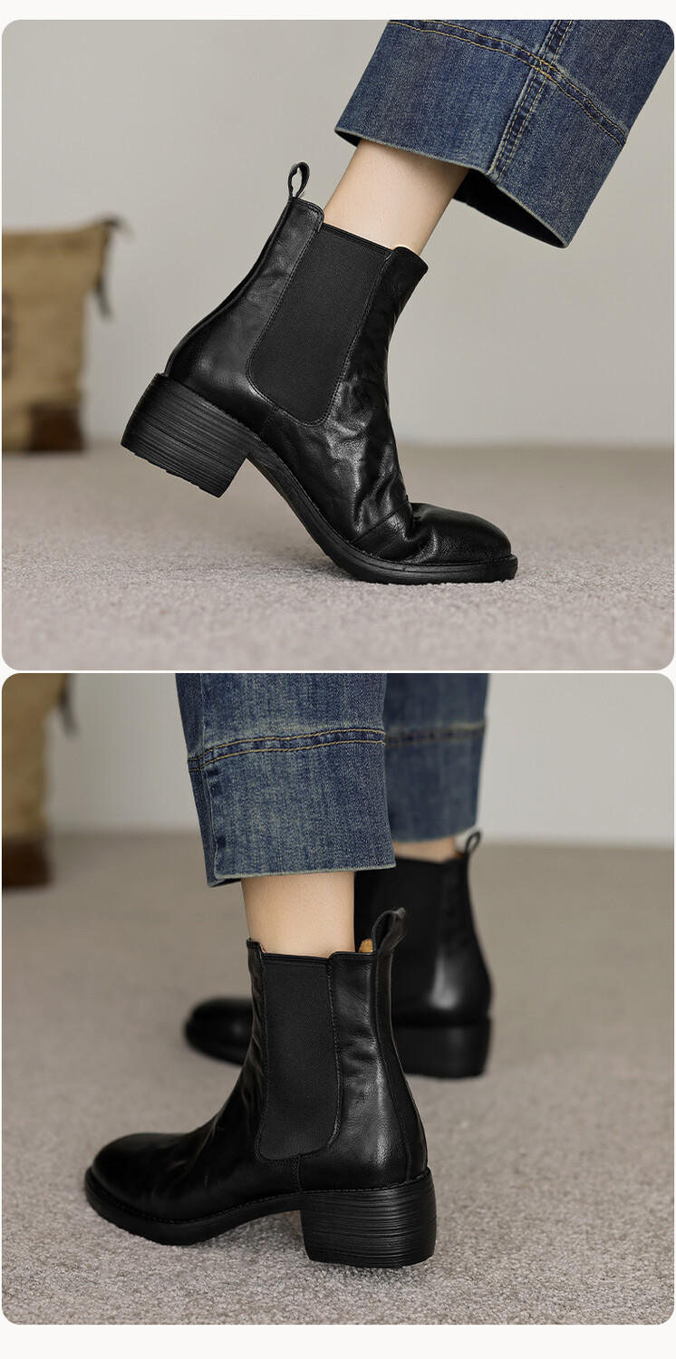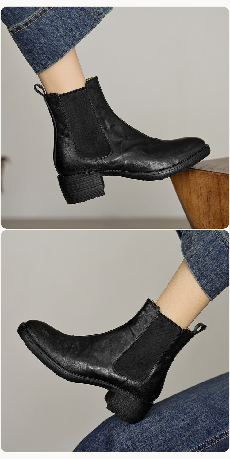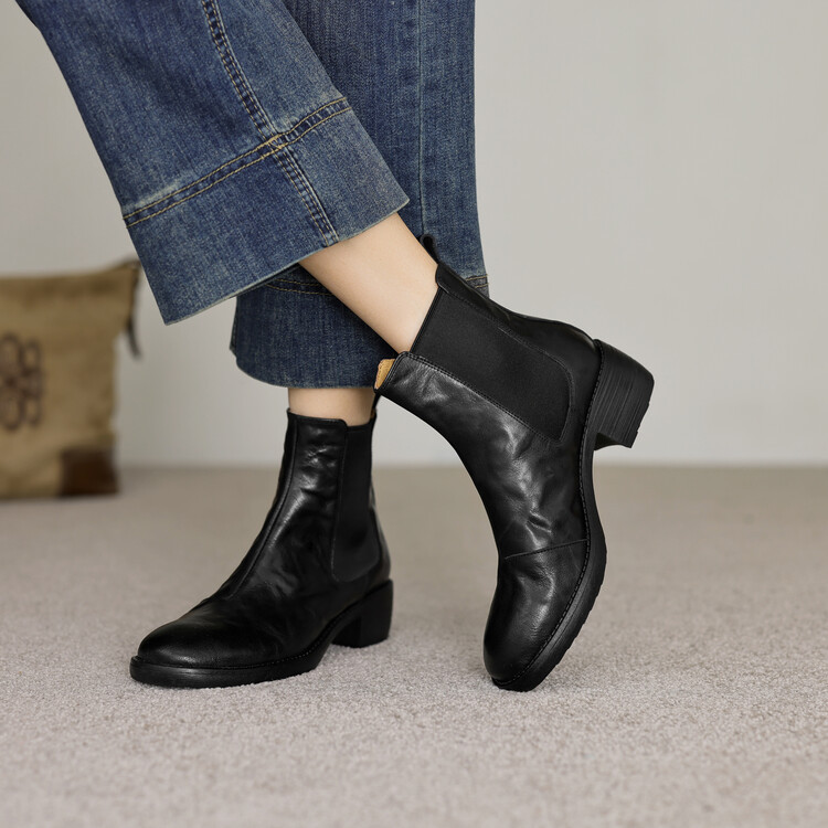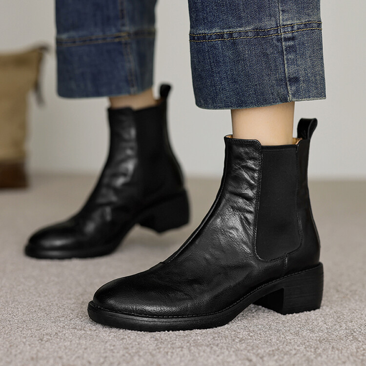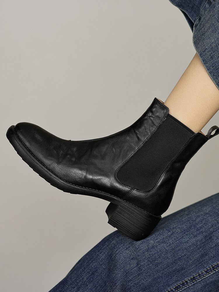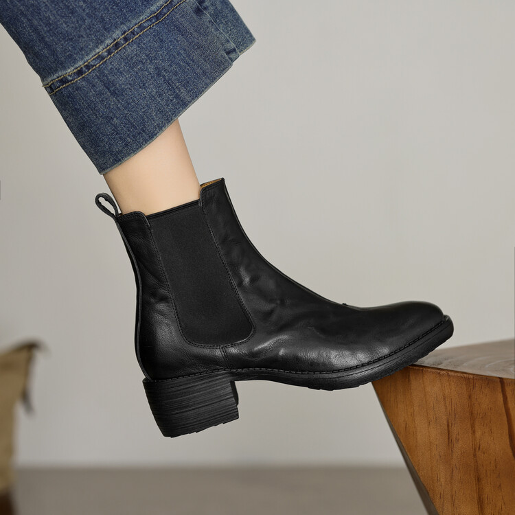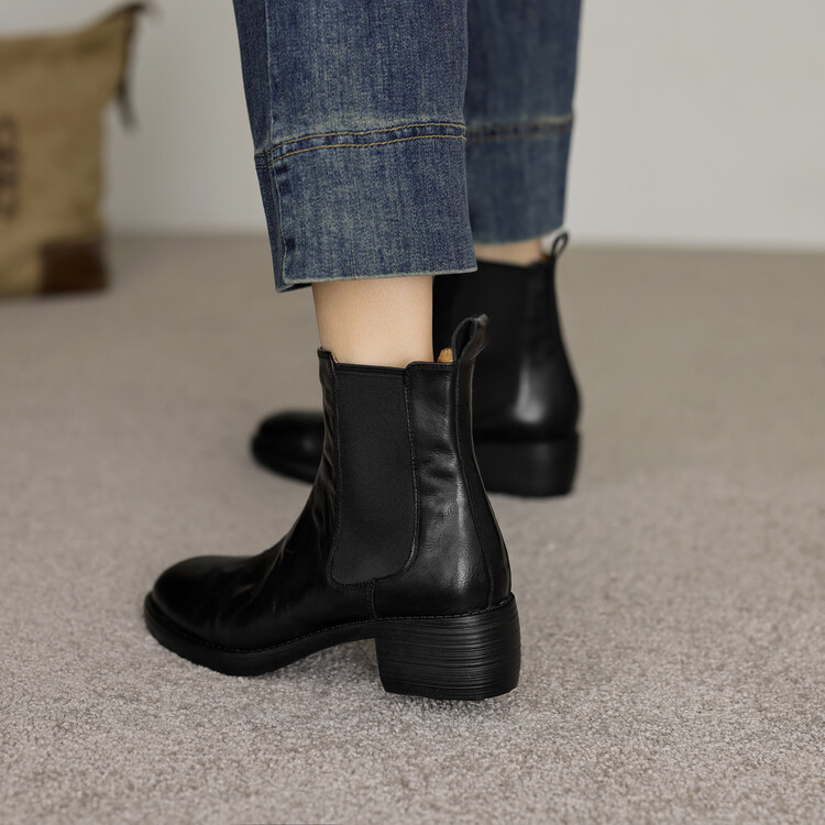 빈티지 카우보이 영국 스타일 라운드 헤드 첼시 부츠 여자 가을 겨울 다크 브라운 청키 힐 마틴 부츠 봄과 가을 싱글 부츠스토어 가기