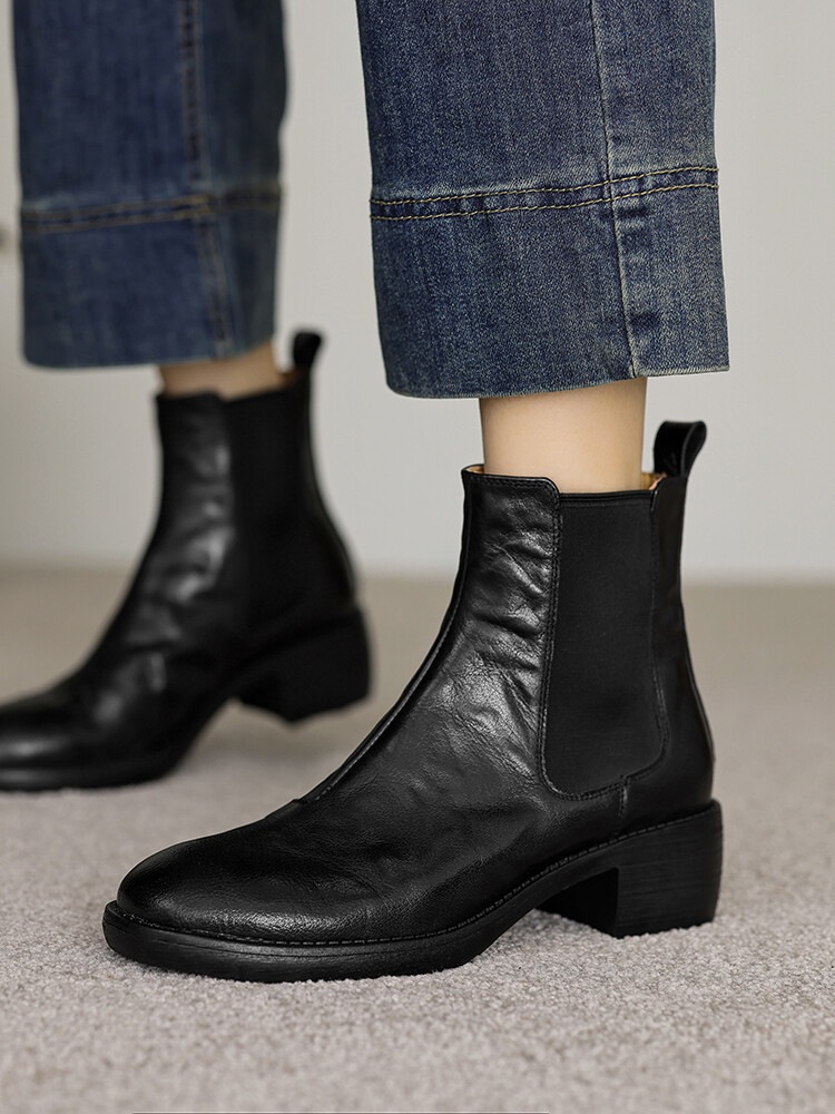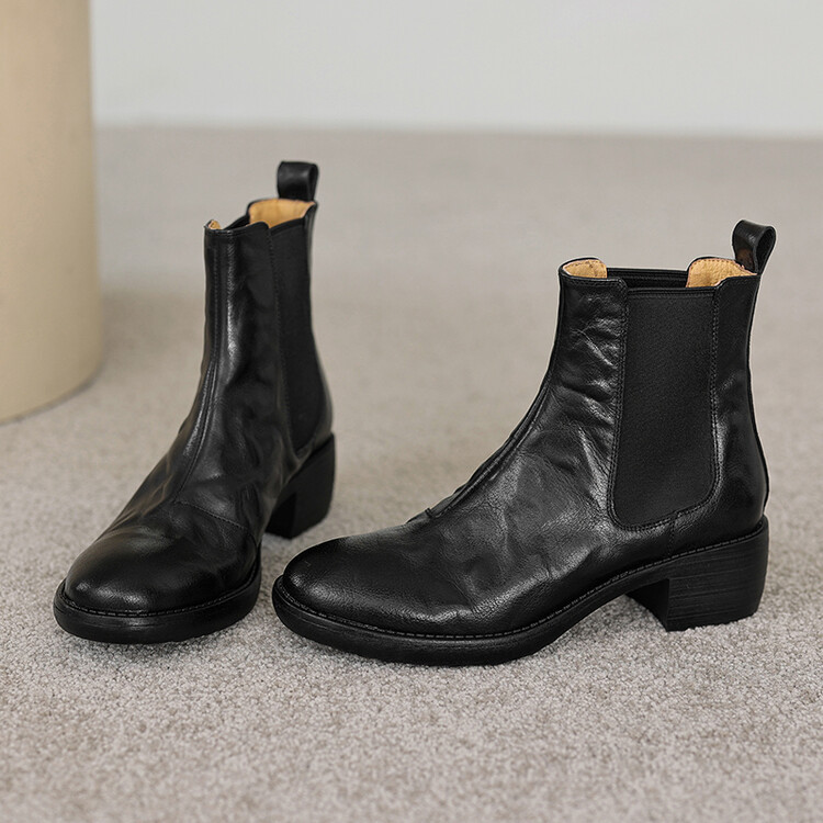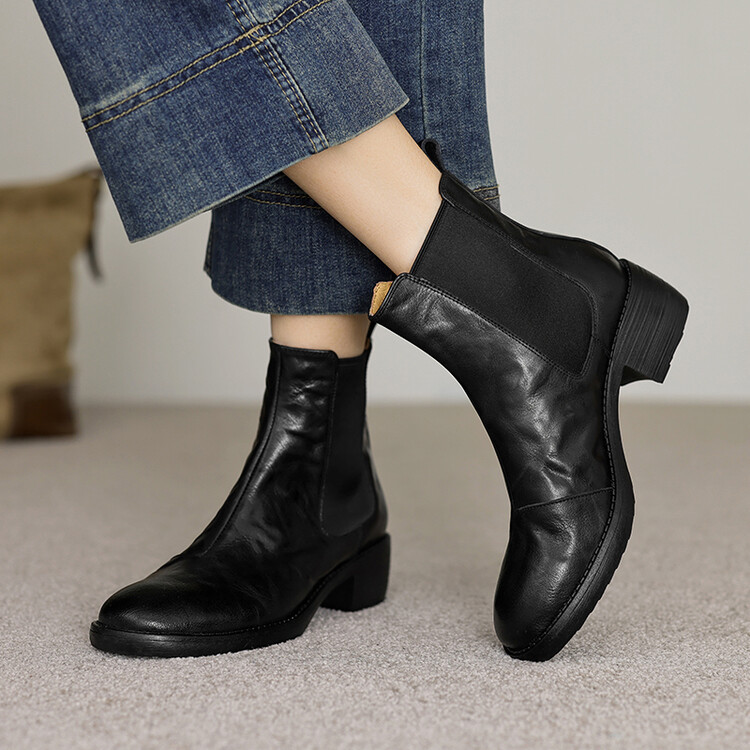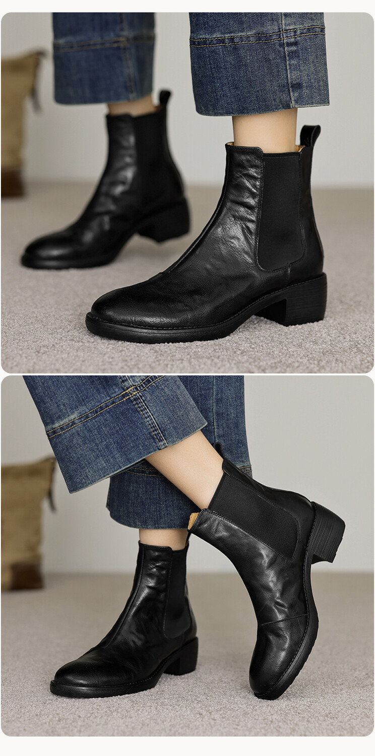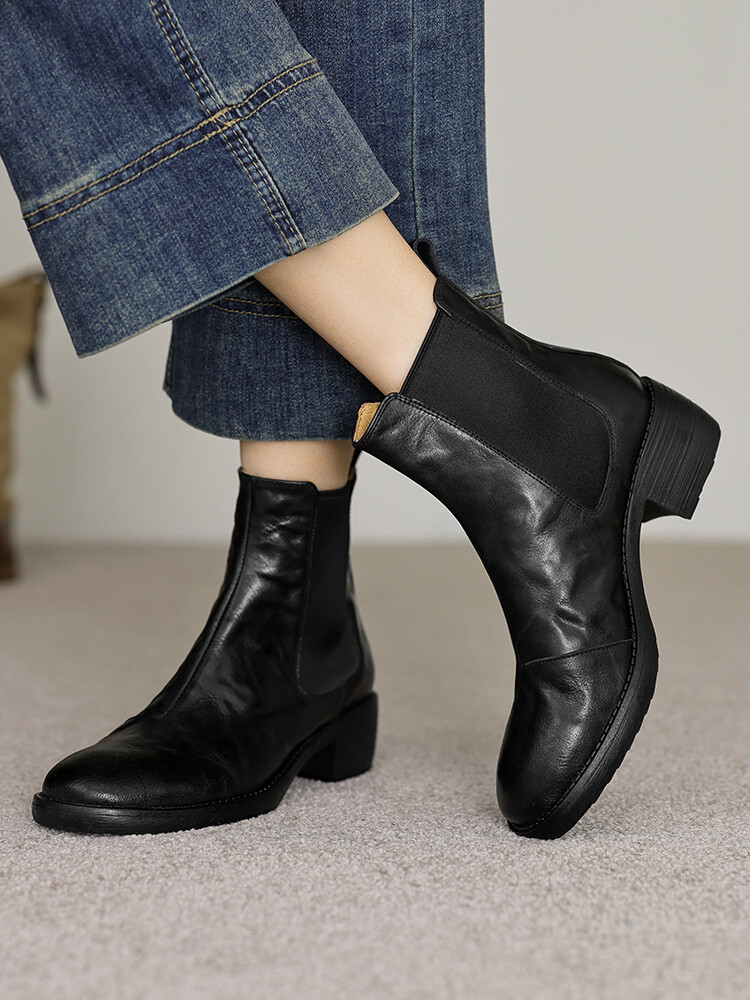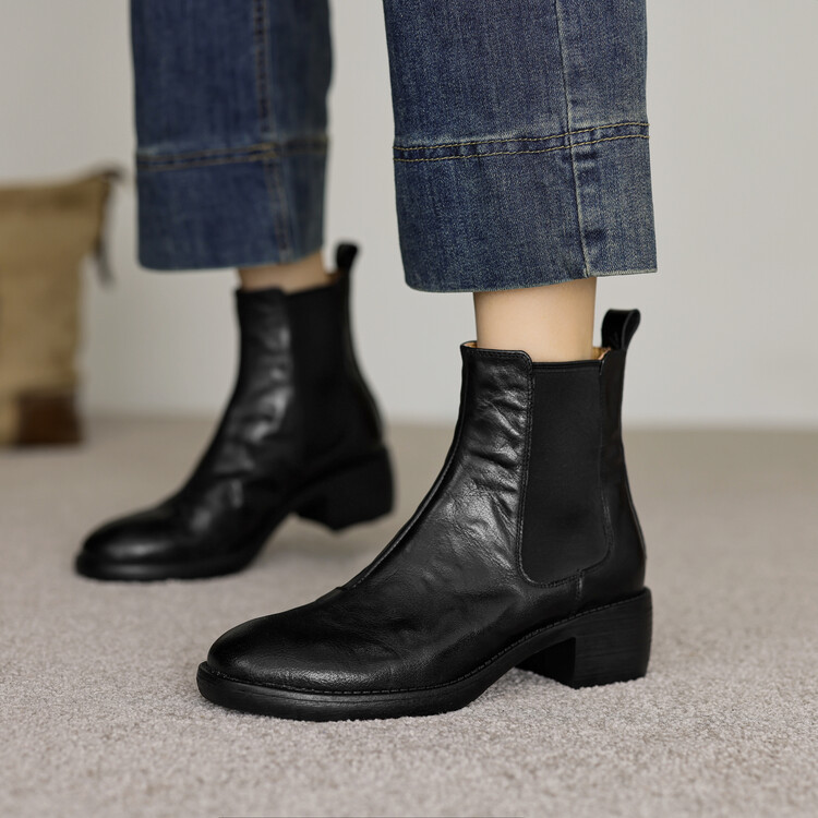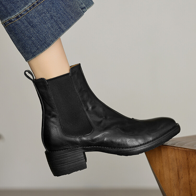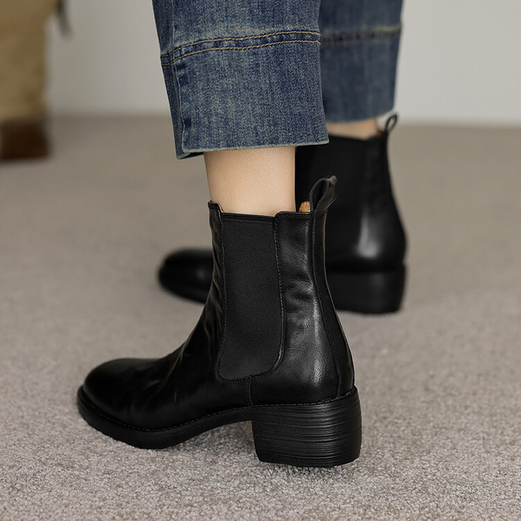 빈티지 카우보이 영국 스타일 라운드 헤드 첼시 부츠 여자 가을 겨울 다크 브라운 청키 힐 마틴 부츠 봄과 가을 싱글 부츠스토어 가기
