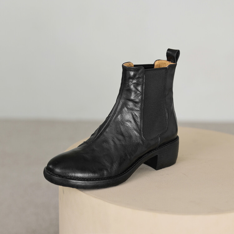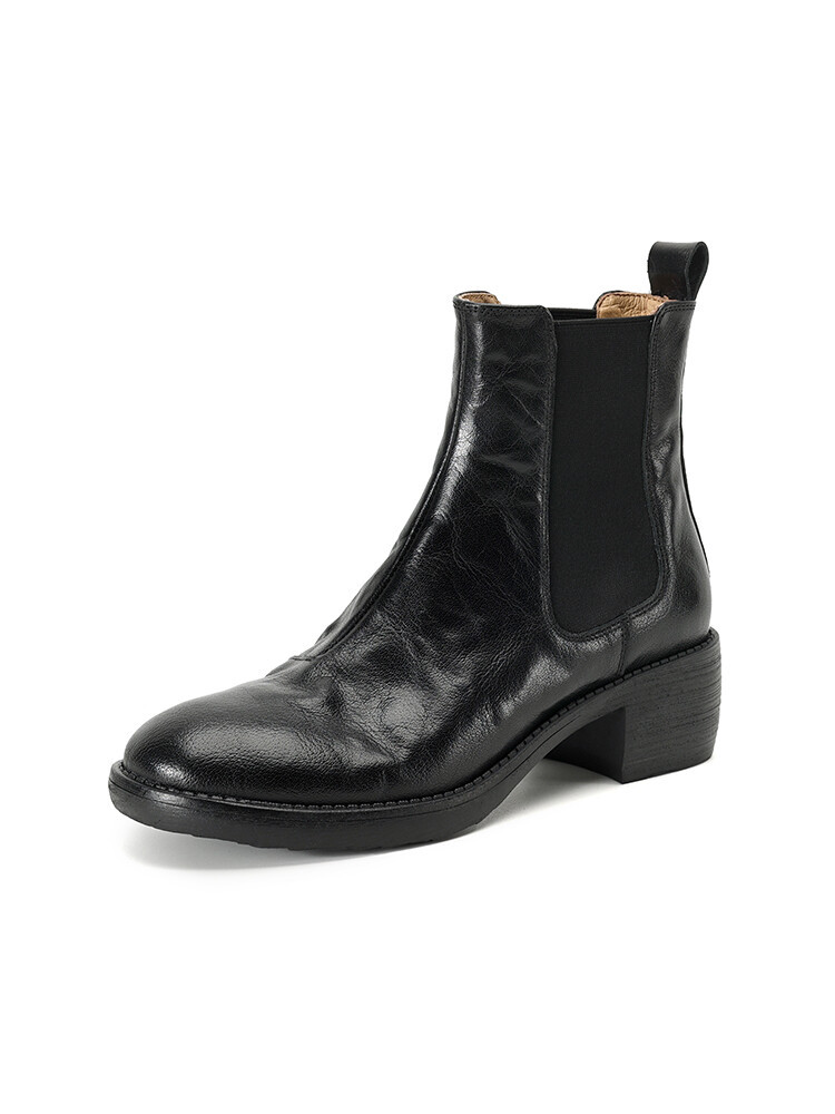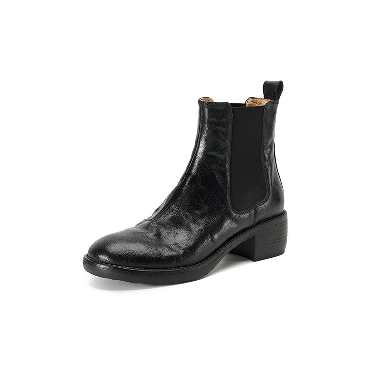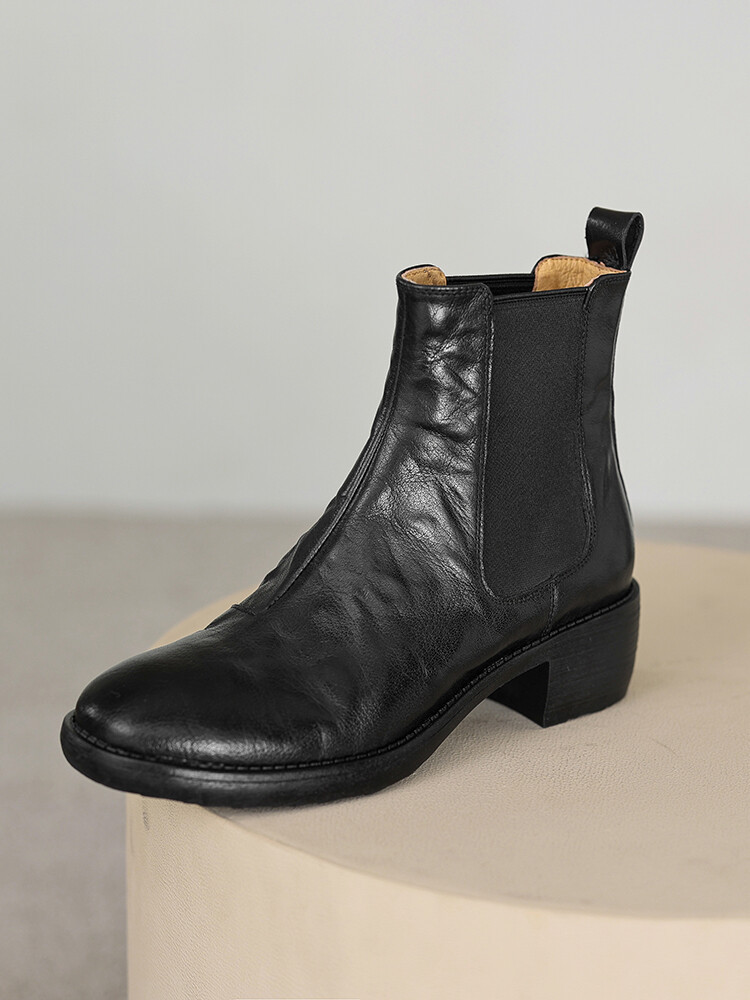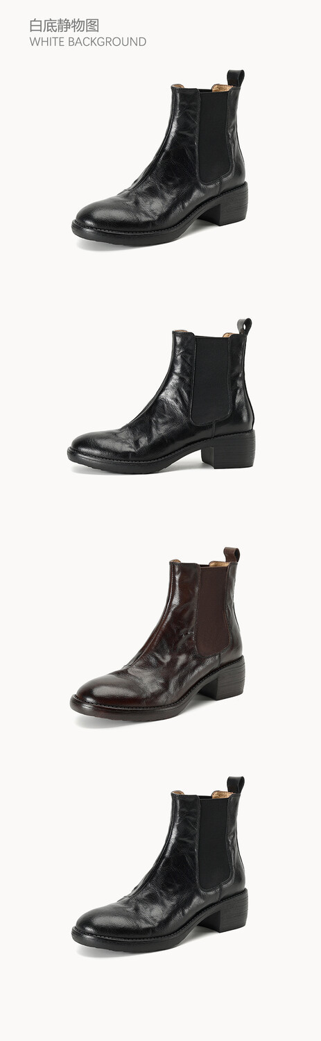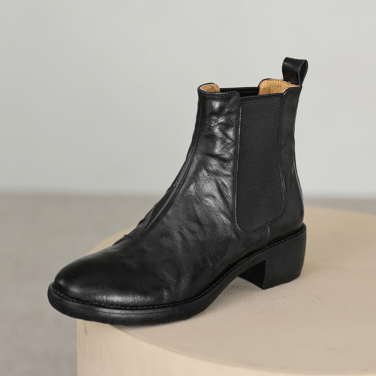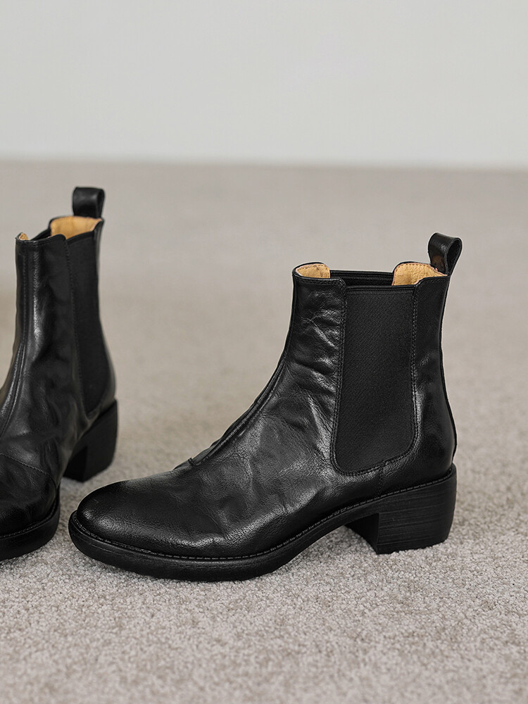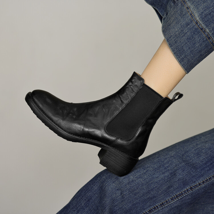 빈티지 카우보이 영국 스타일 라운드 헤드 첼시 부츠 여자 가을 겨울 다크 브라운 청키 힐 마틴 부츠 봄과 가을 싱글 부츠스토어 가기