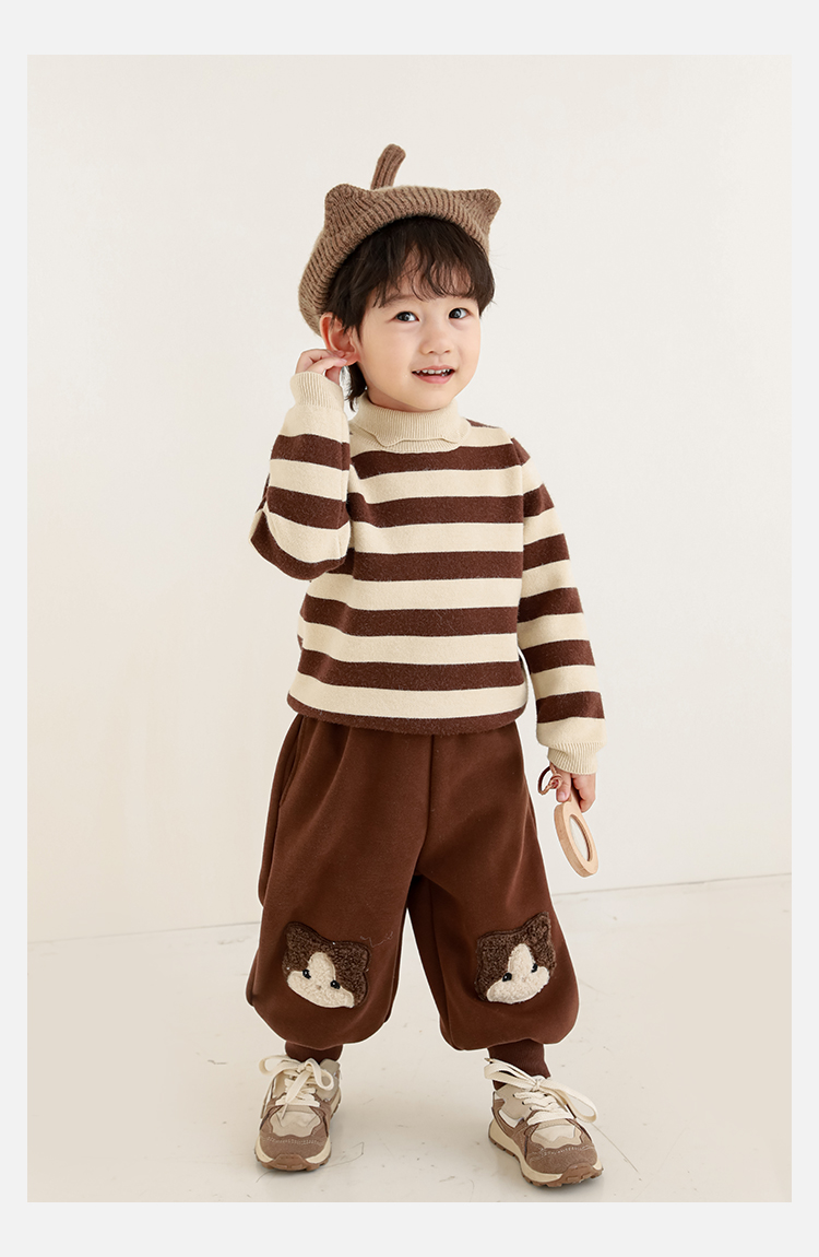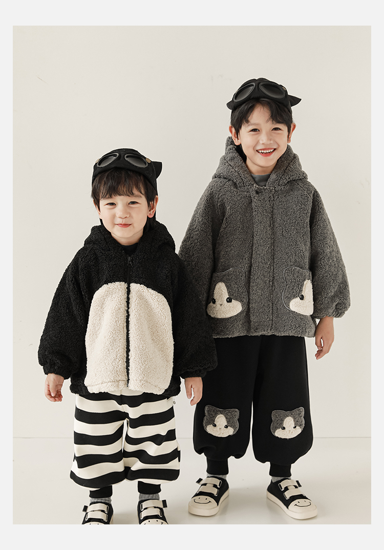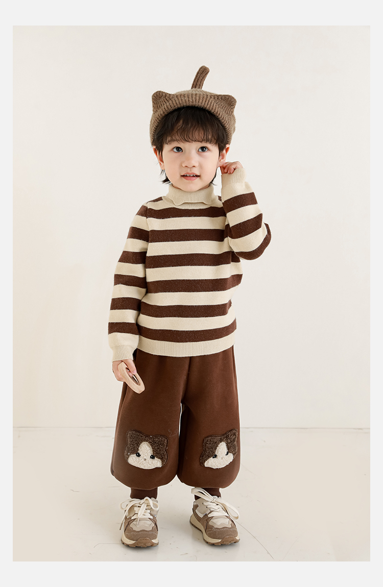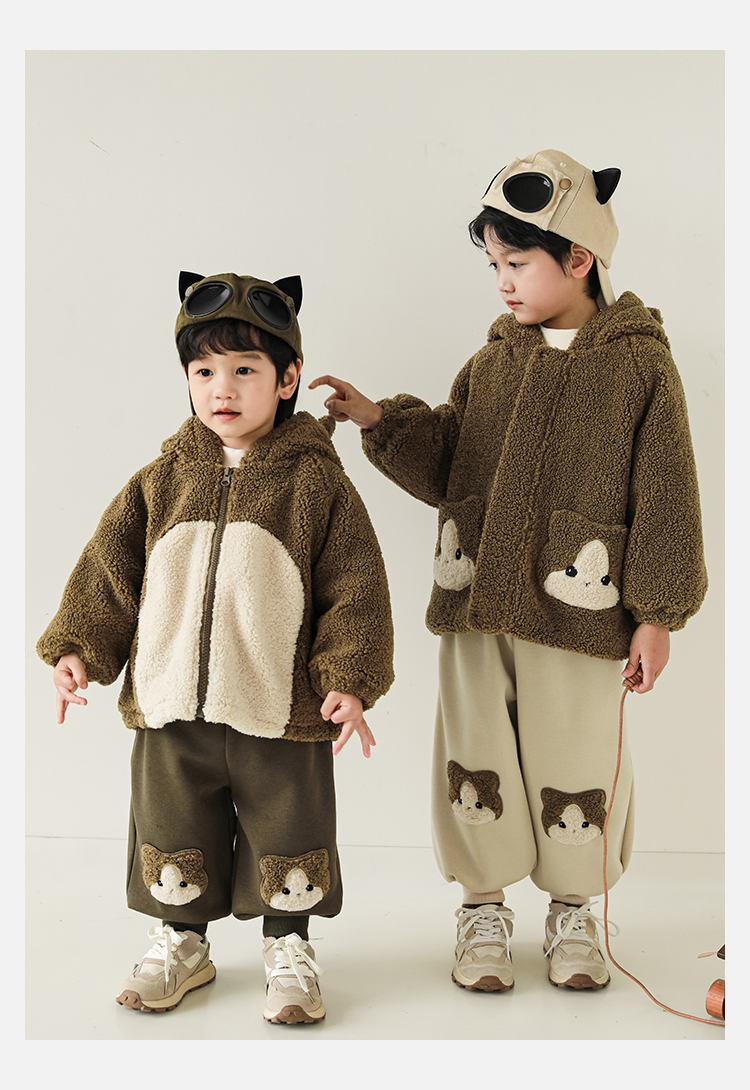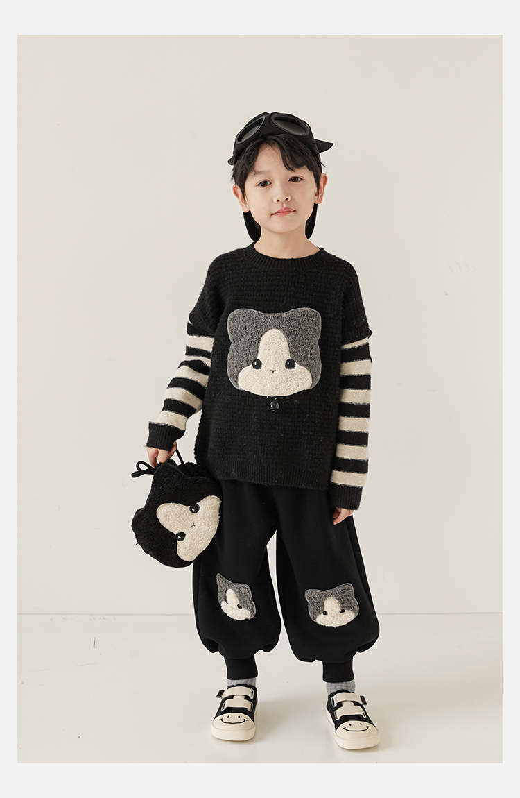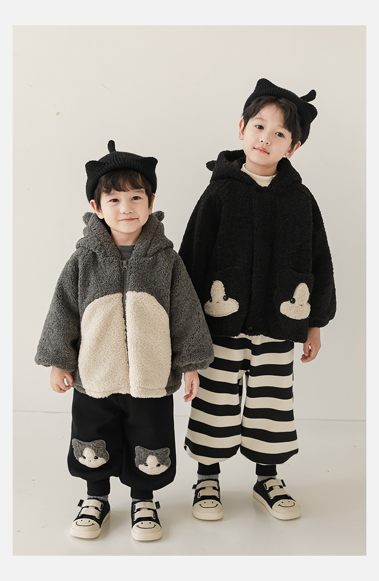 Wurib 소년 새끼 고양이 패치 로고 기모 두꺼운 발가락 캐주얼 바지 겨울 어린이 느슨한 바지 조수
