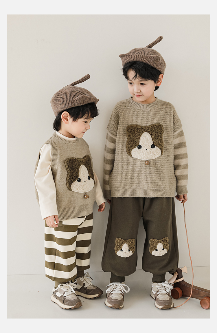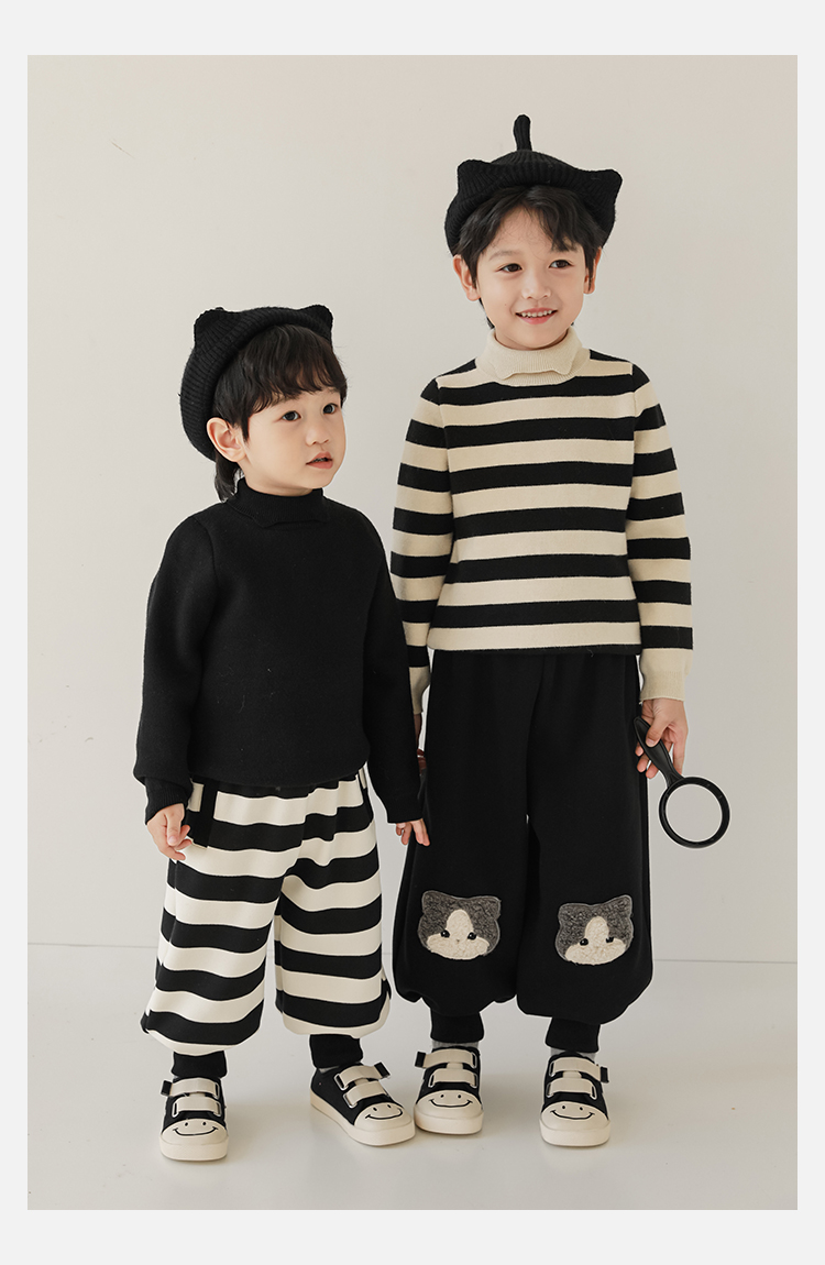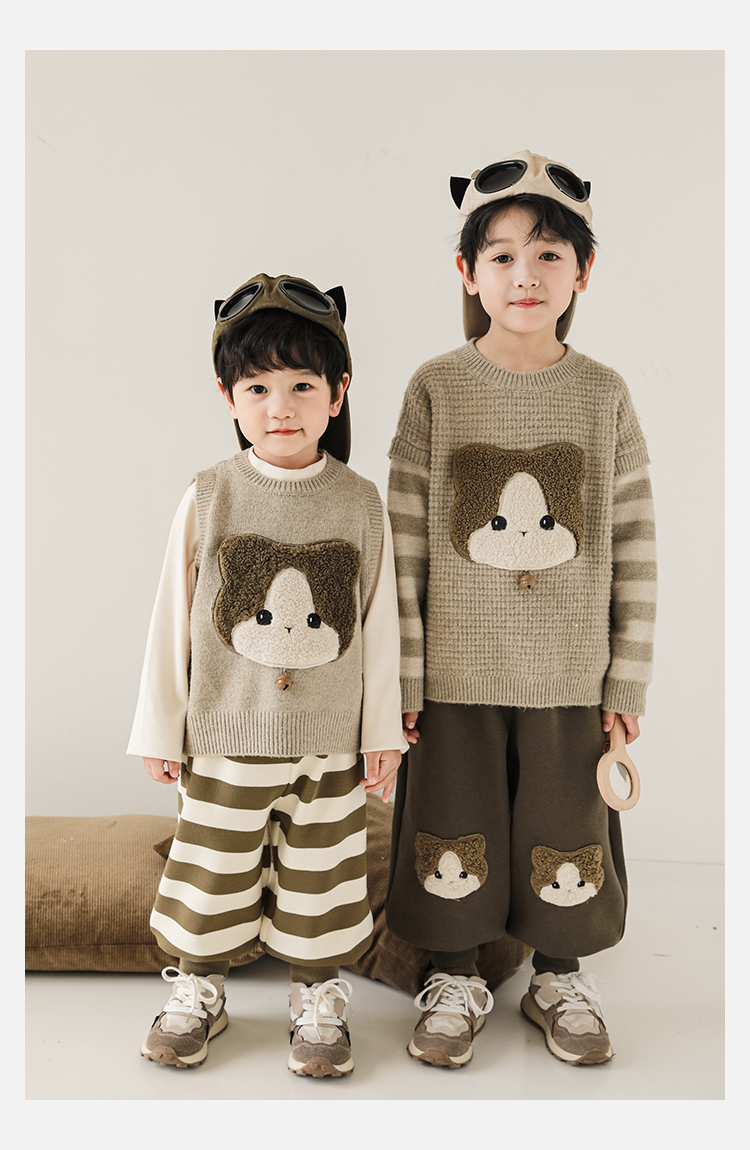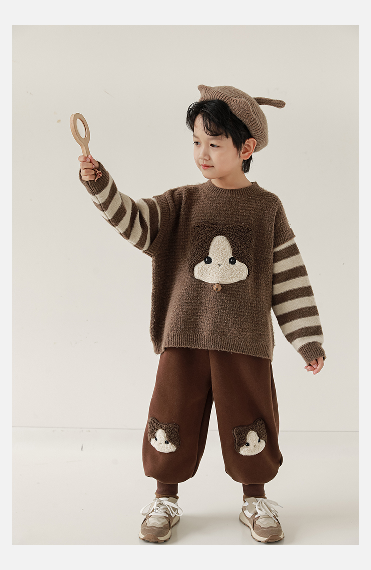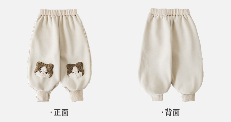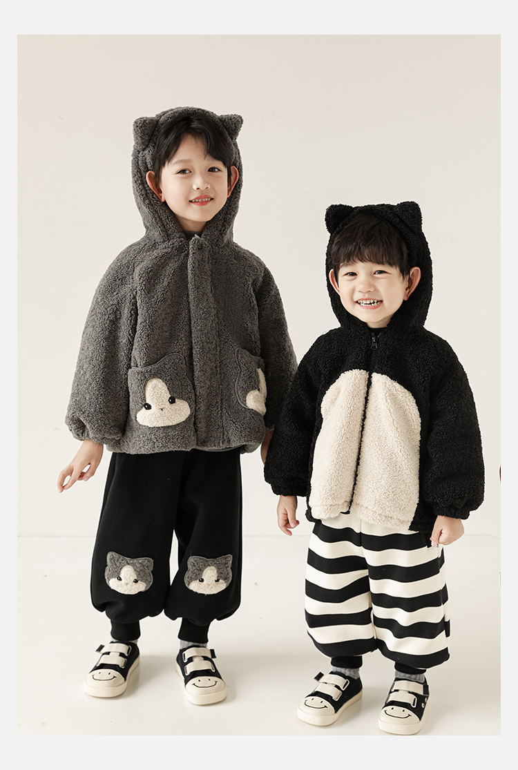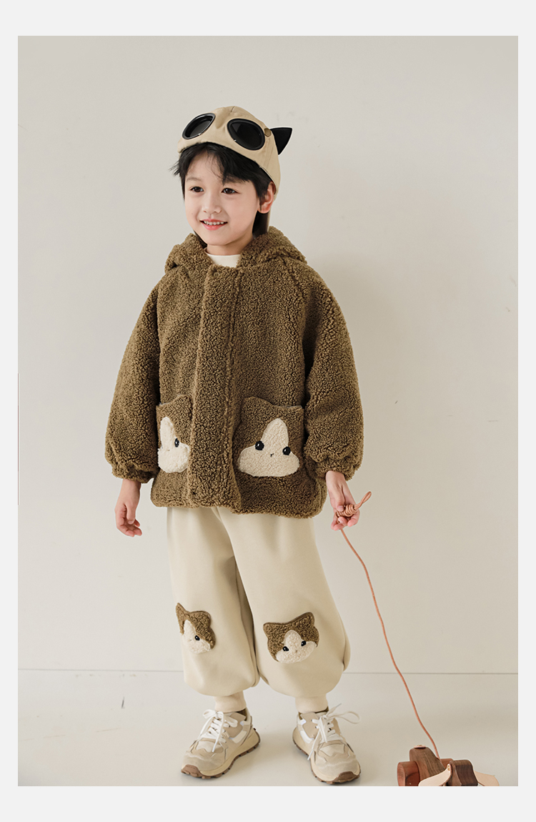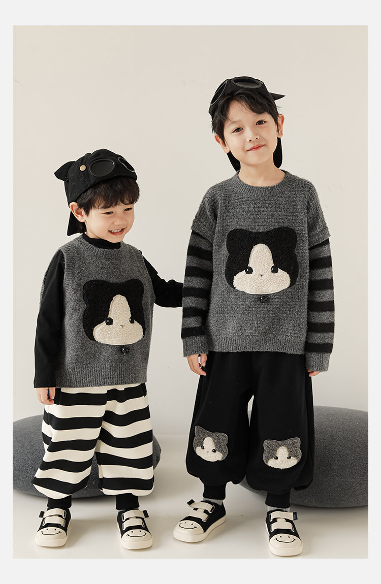 Wurib 소년 새끼 고양이 패치 로고 기모 두꺼운 발가락 캐주얼 바지 겨울 어린이 느슨한 바지 조수