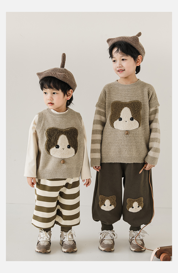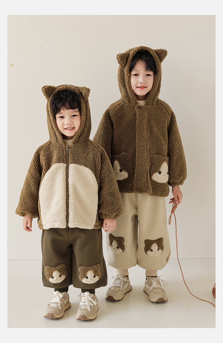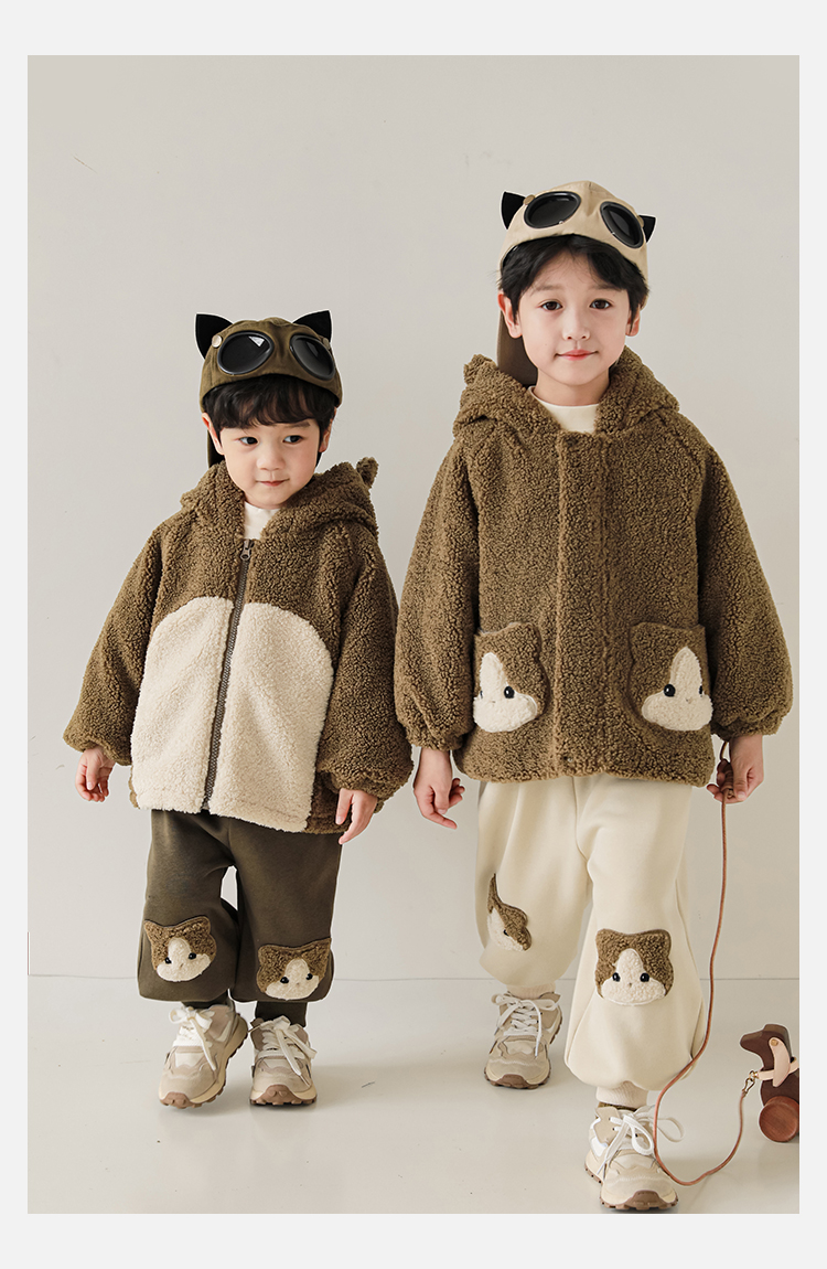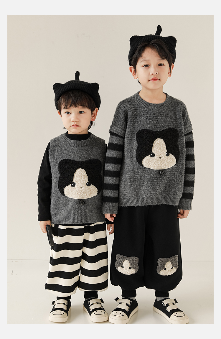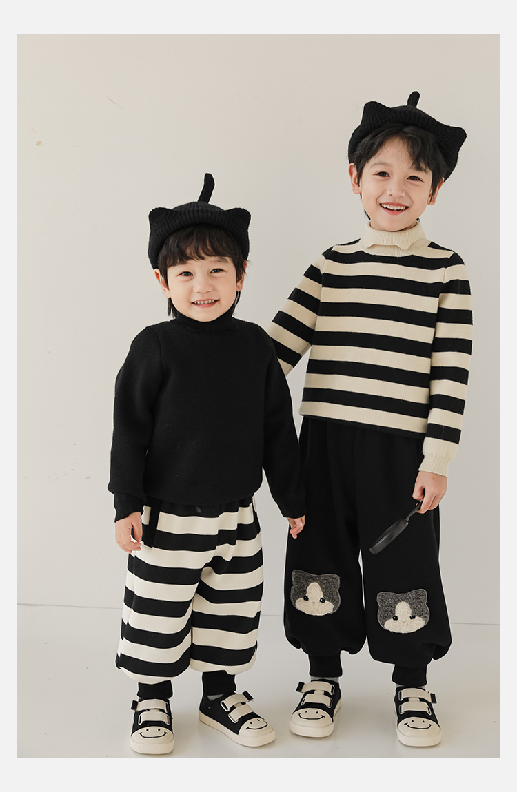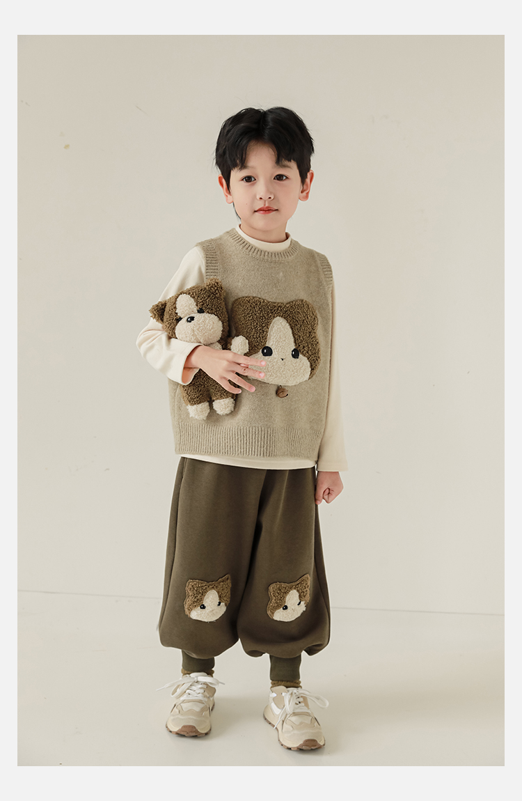 Wurib 소년 새끼 고양이 패치 로고 기모 두꺼운 발가락 캐주얼 바지 겨울 어린이 느슨한 바지 조수