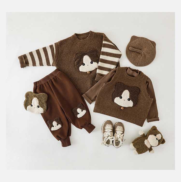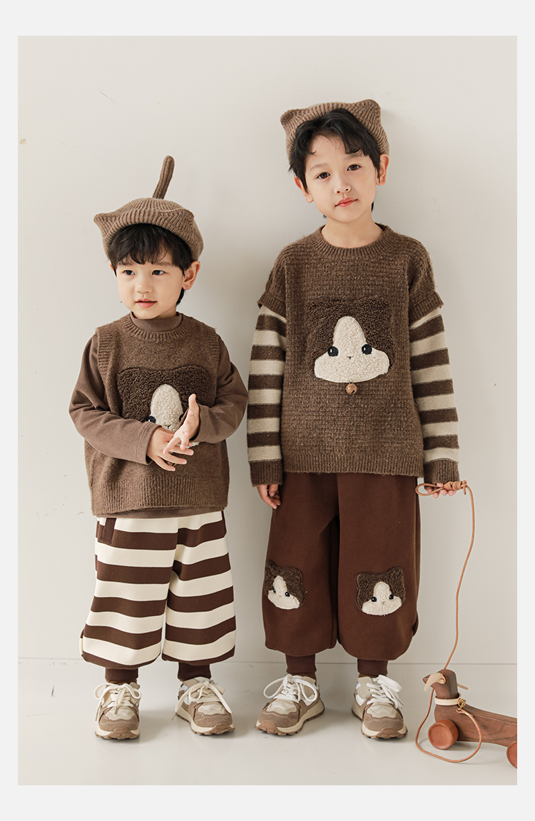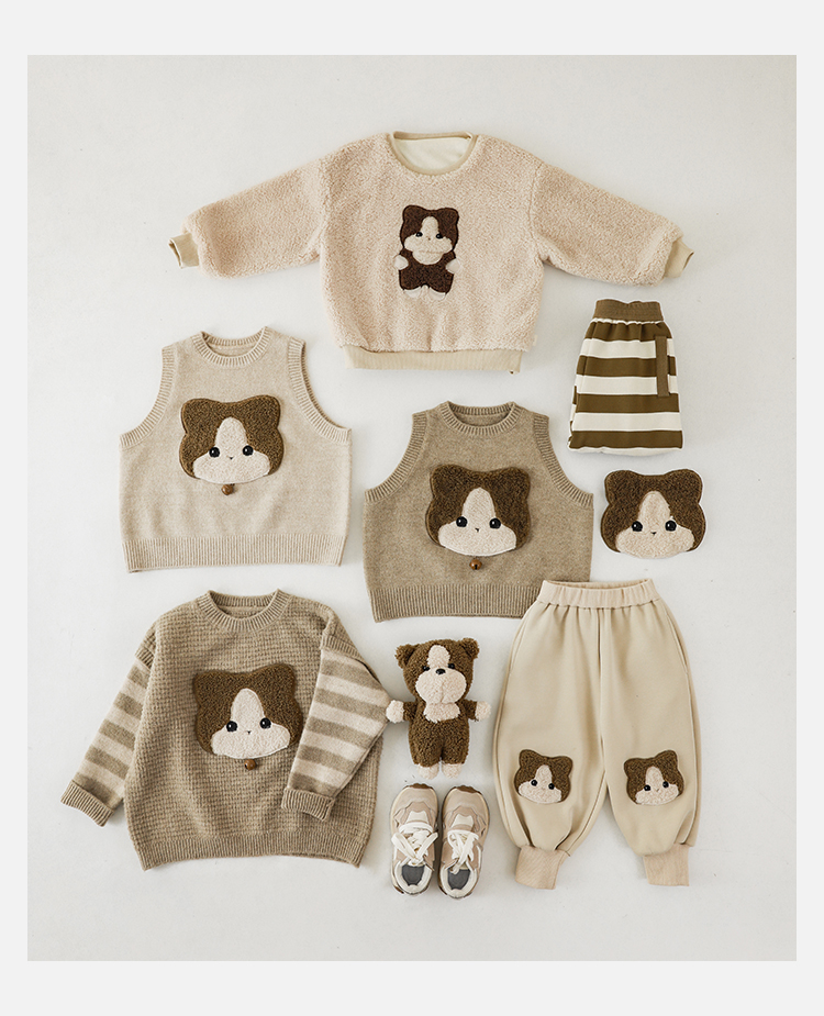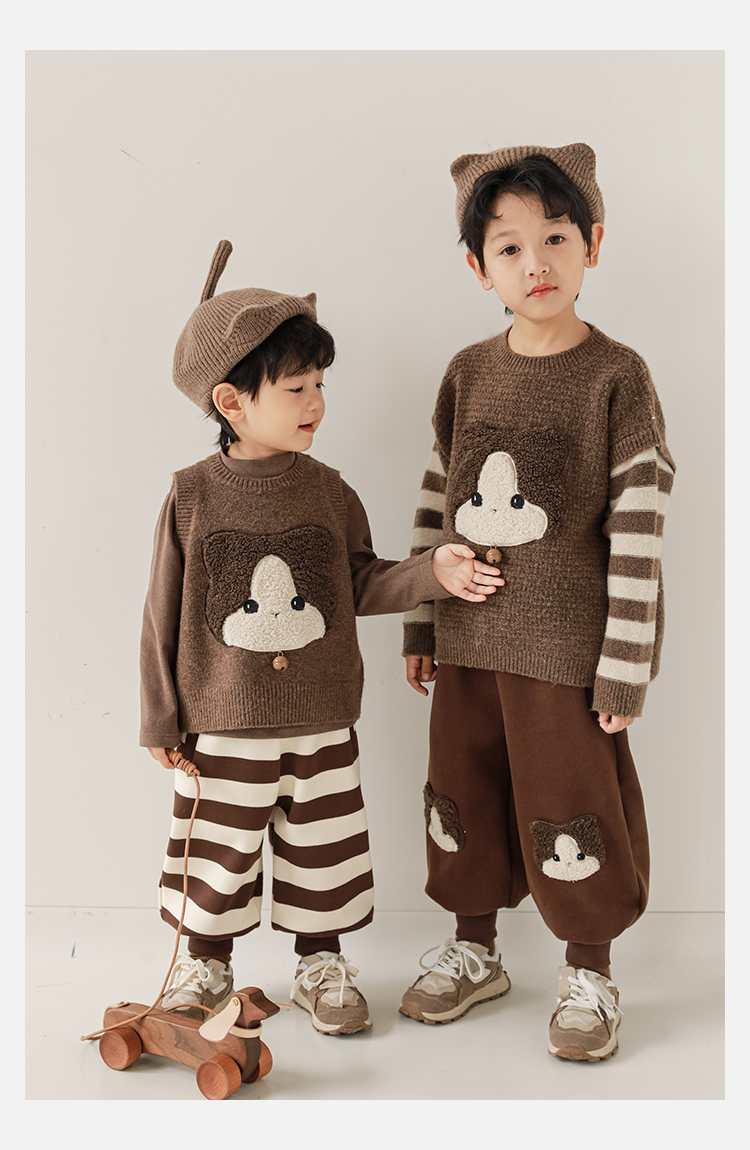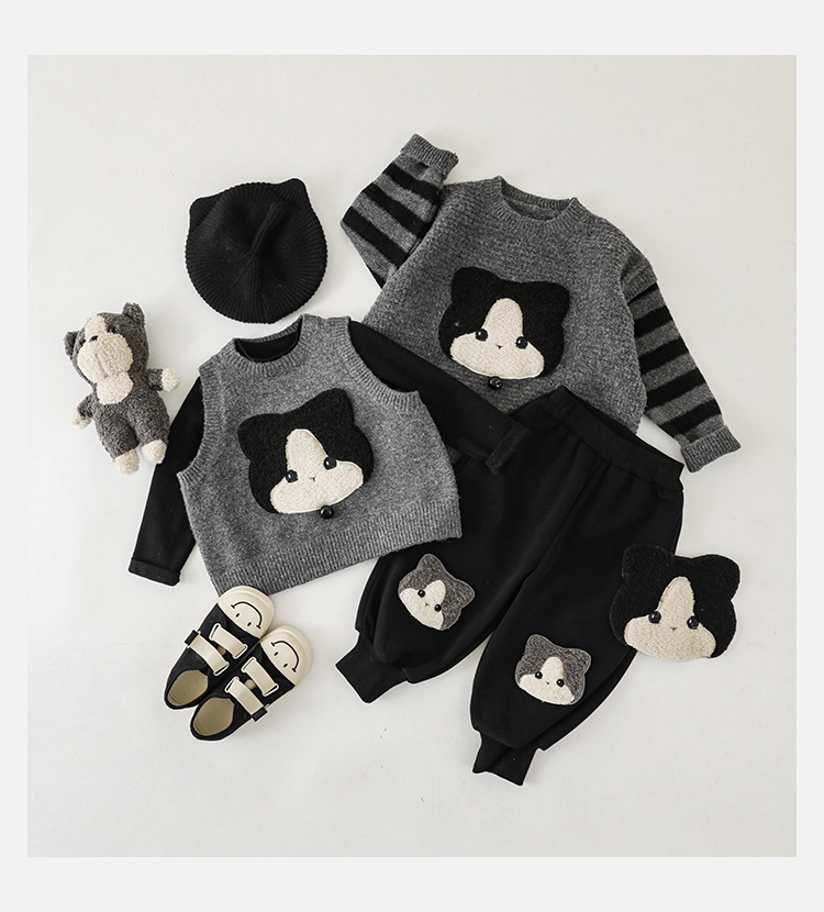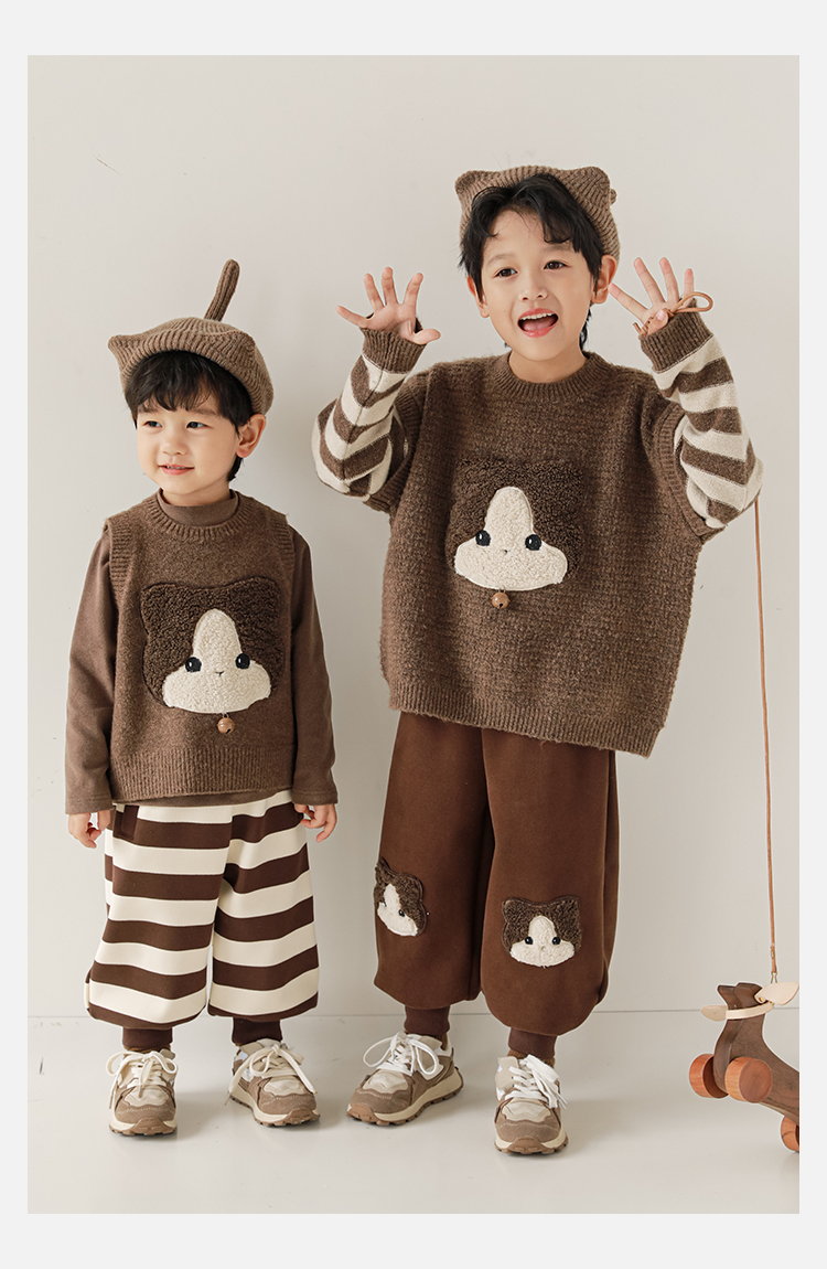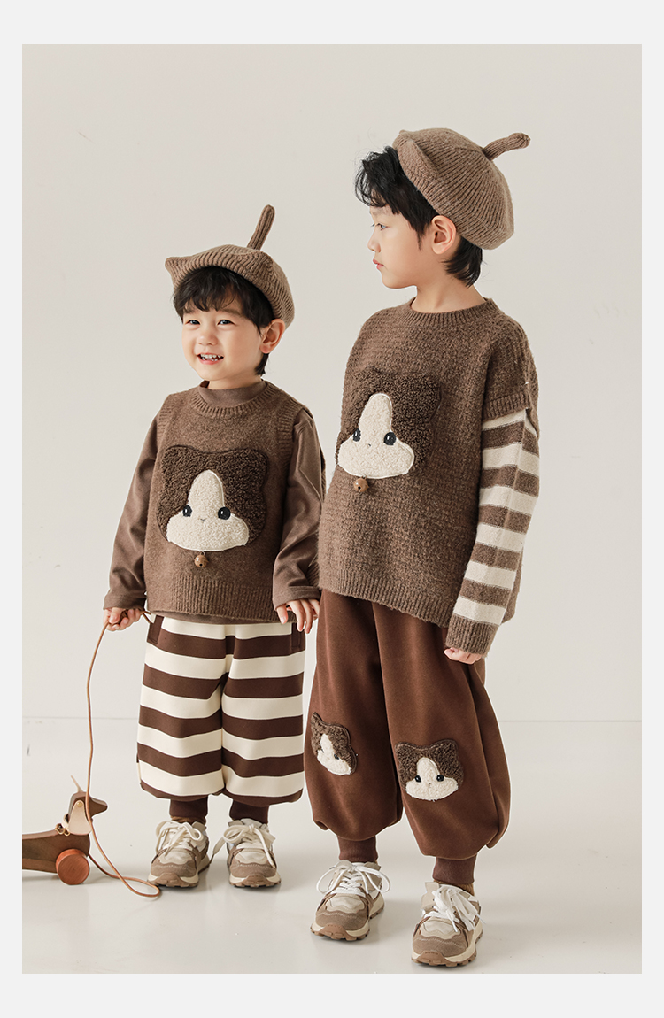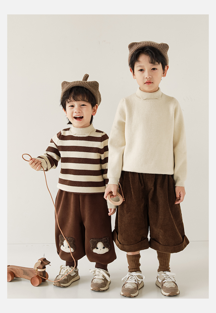 Wurib 소년 새끼 고양이 패치 로고 기모 두꺼운 발가락 캐주얼 바지 겨울 어린이 느슨한 바지 조수