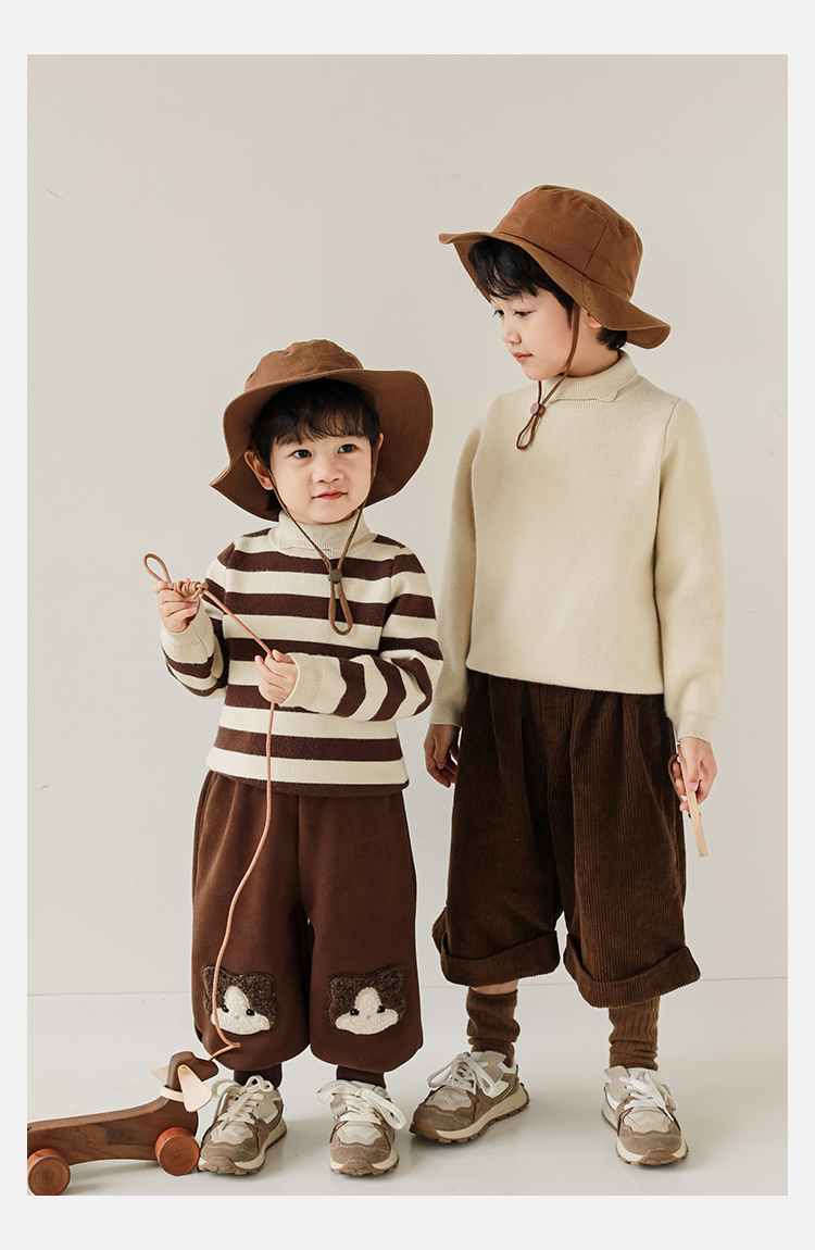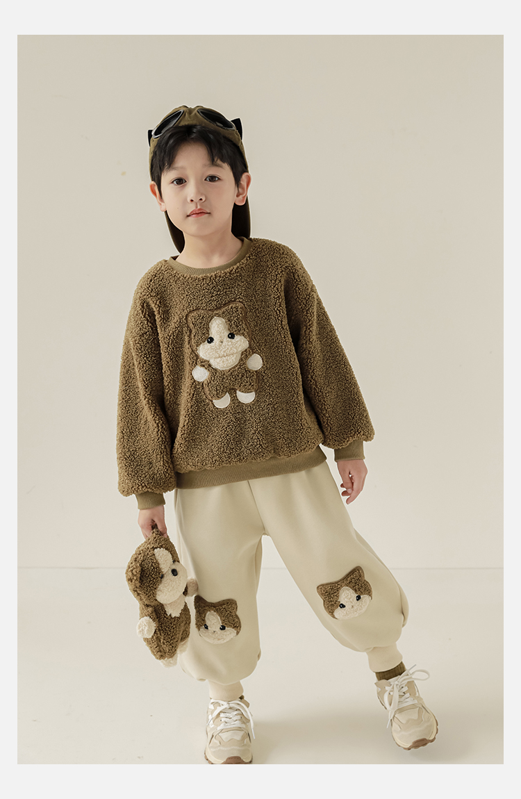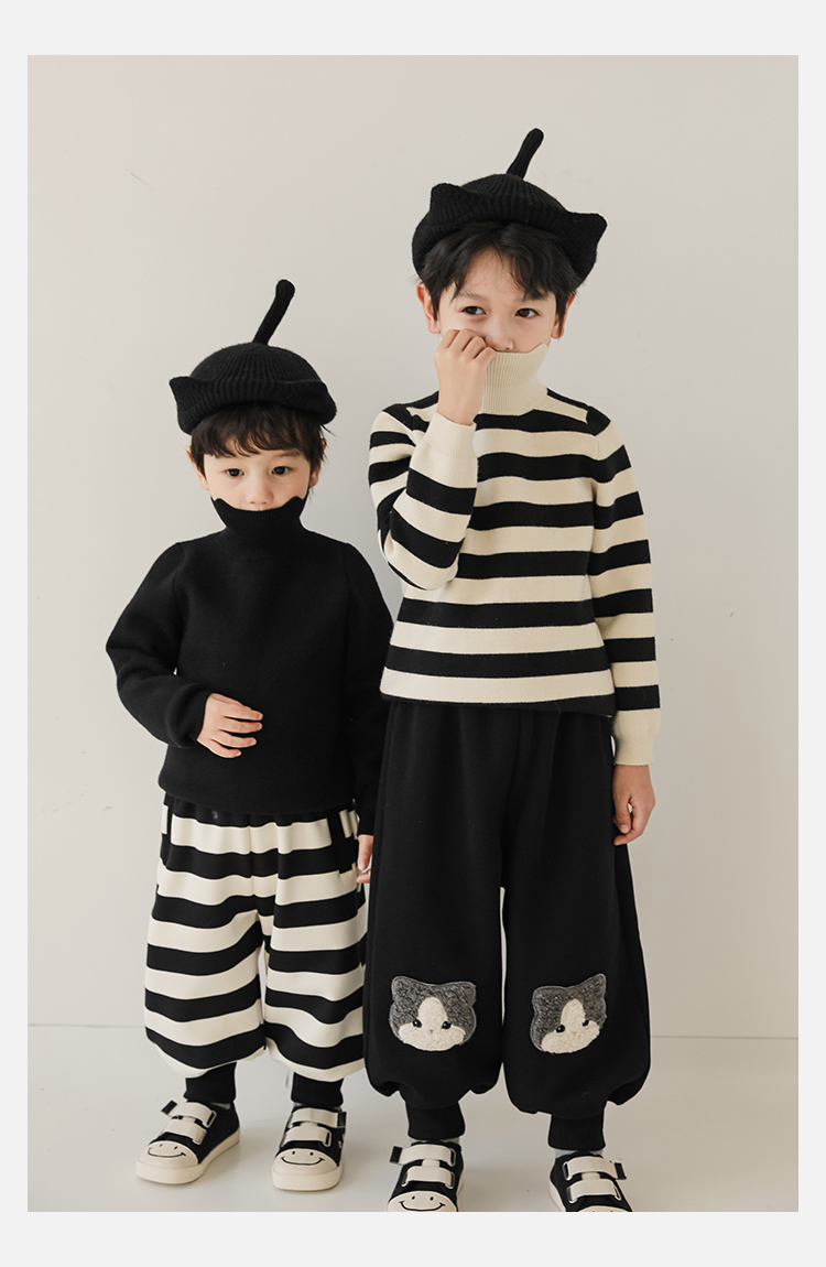 Wurib 소년 새끼 고양이 패치 로고 기모 두꺼운 발가락 캐주얼 바지 겨울 어린이 느슨한 바지 조수스토어 가기