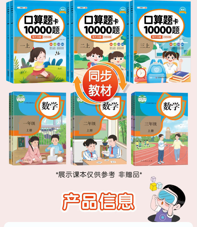 구강 계산 문제 카드 10000, 123 학년, PEP 동기 정품 100 수학 연습 매일