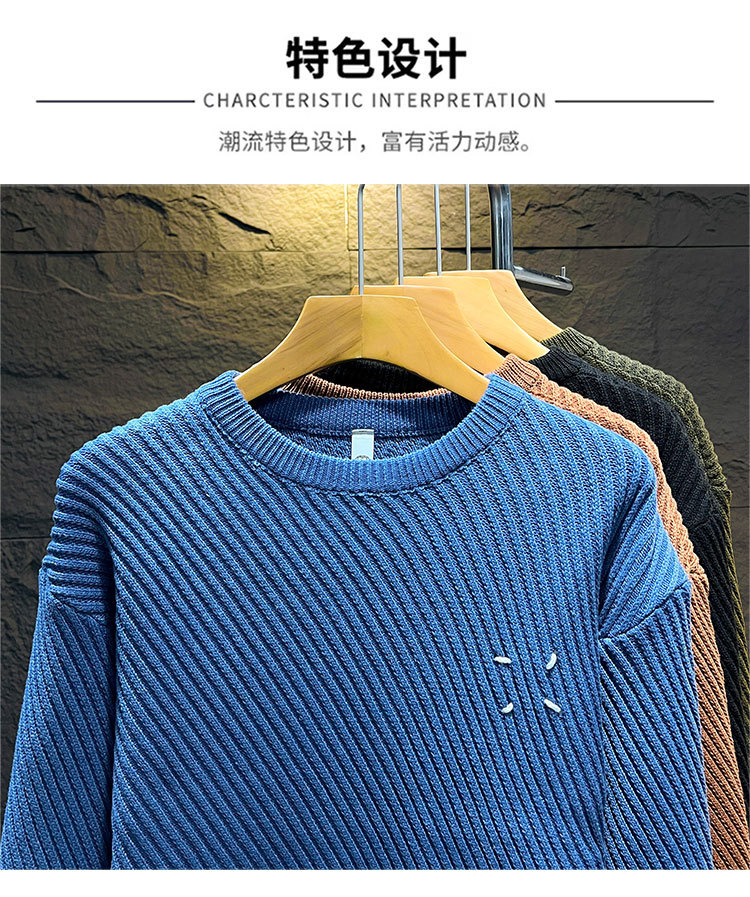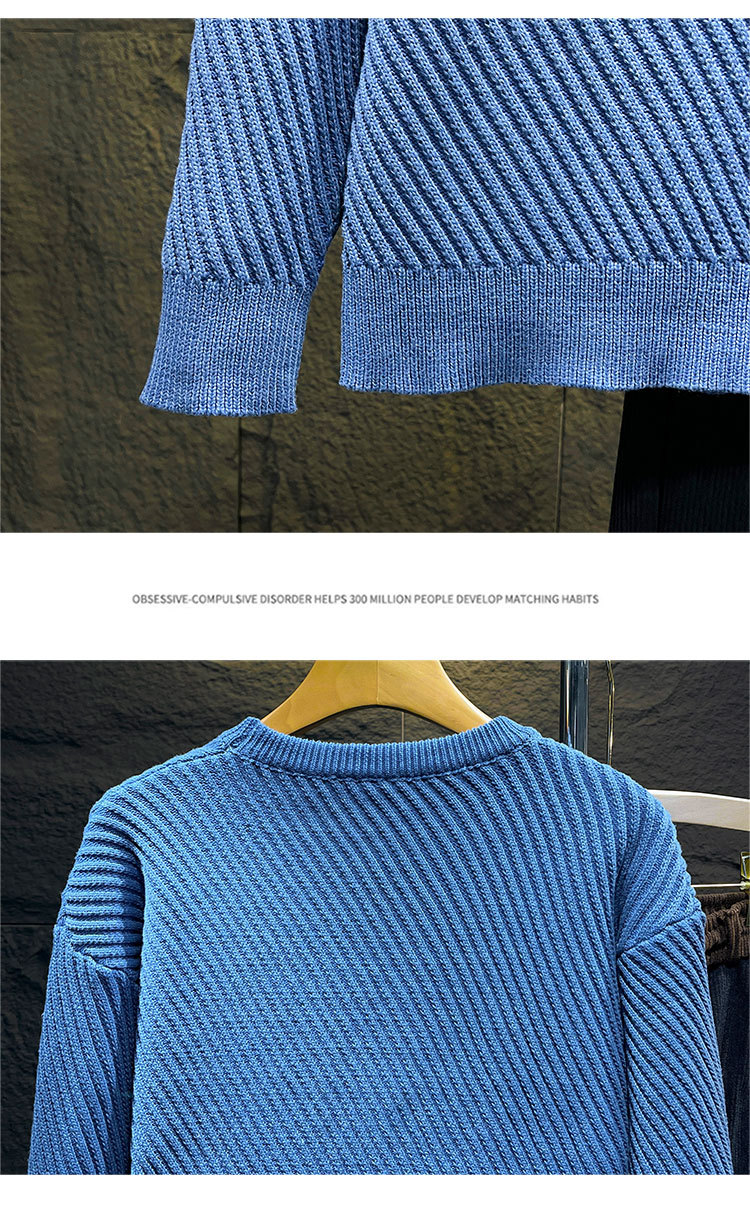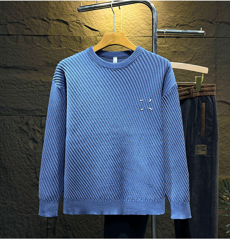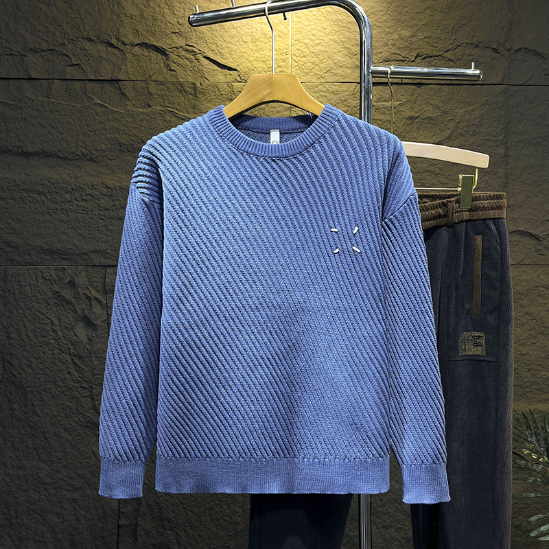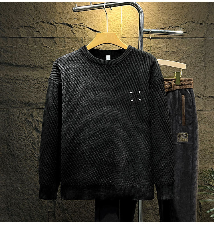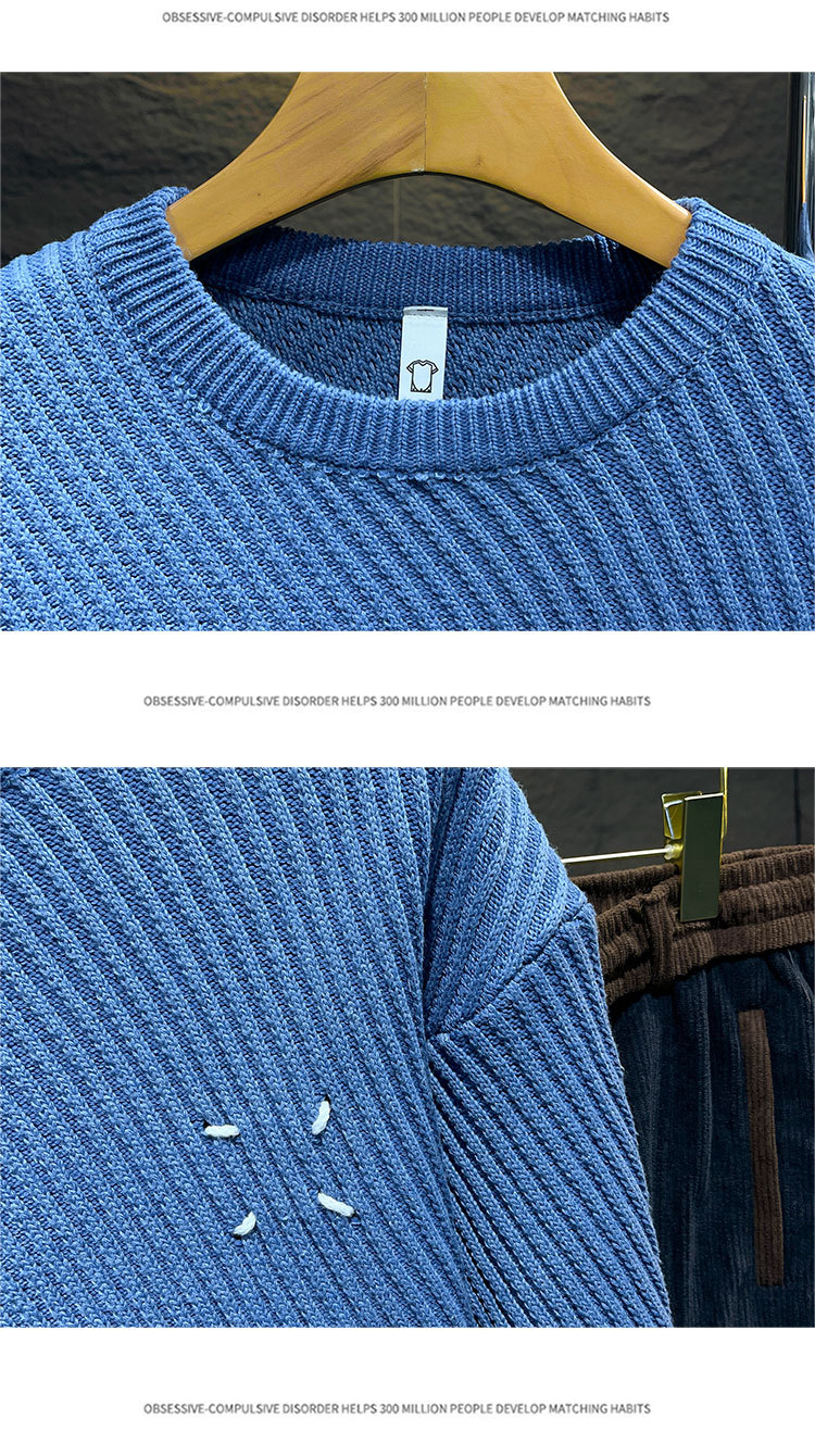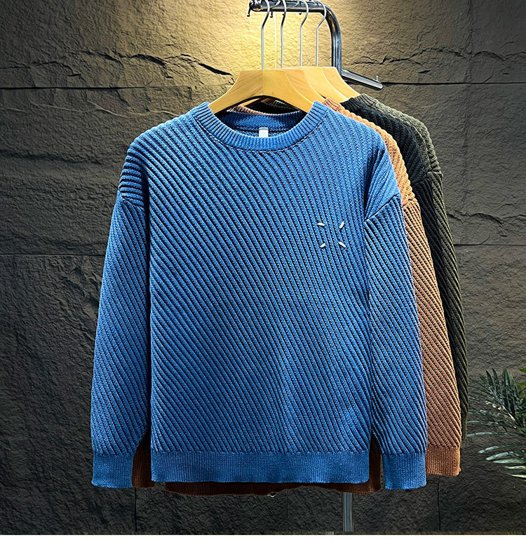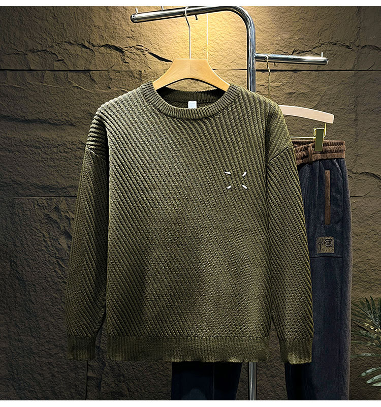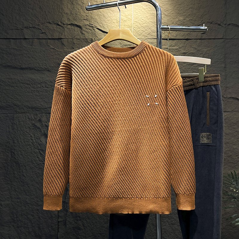 고급 스웨터 남자의 느슨한 둥근 목 니트 스웨터 가을과 겨울 트렌디 한 일본 단색 캐주얼베이스 스웨터