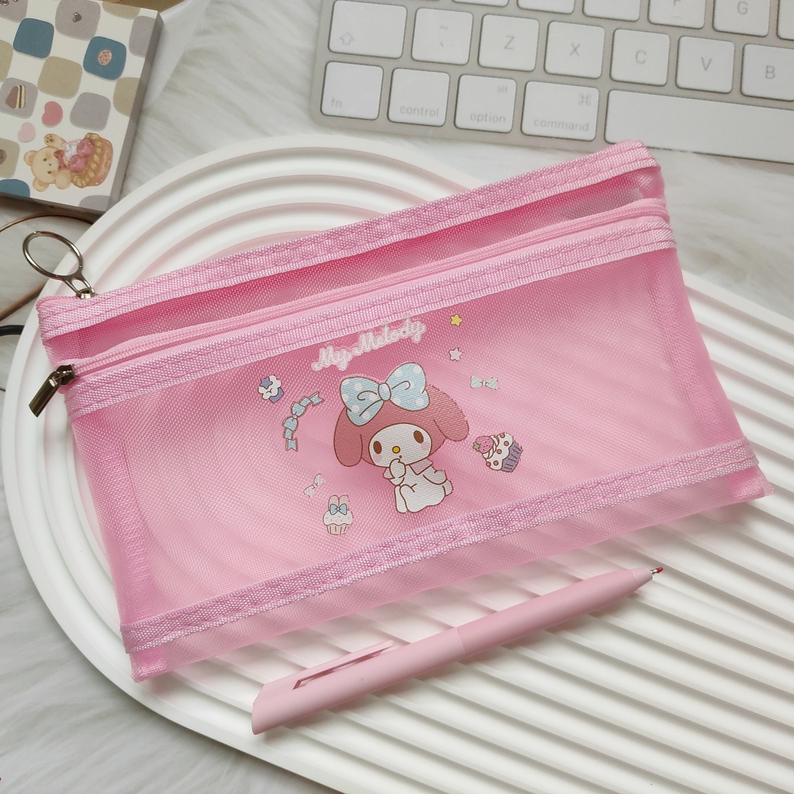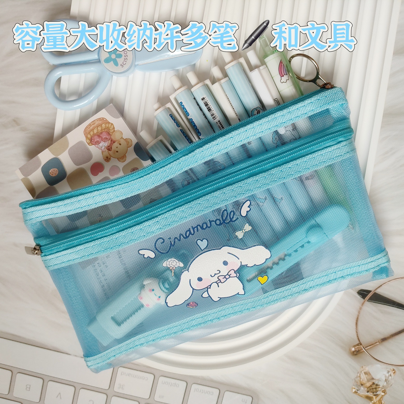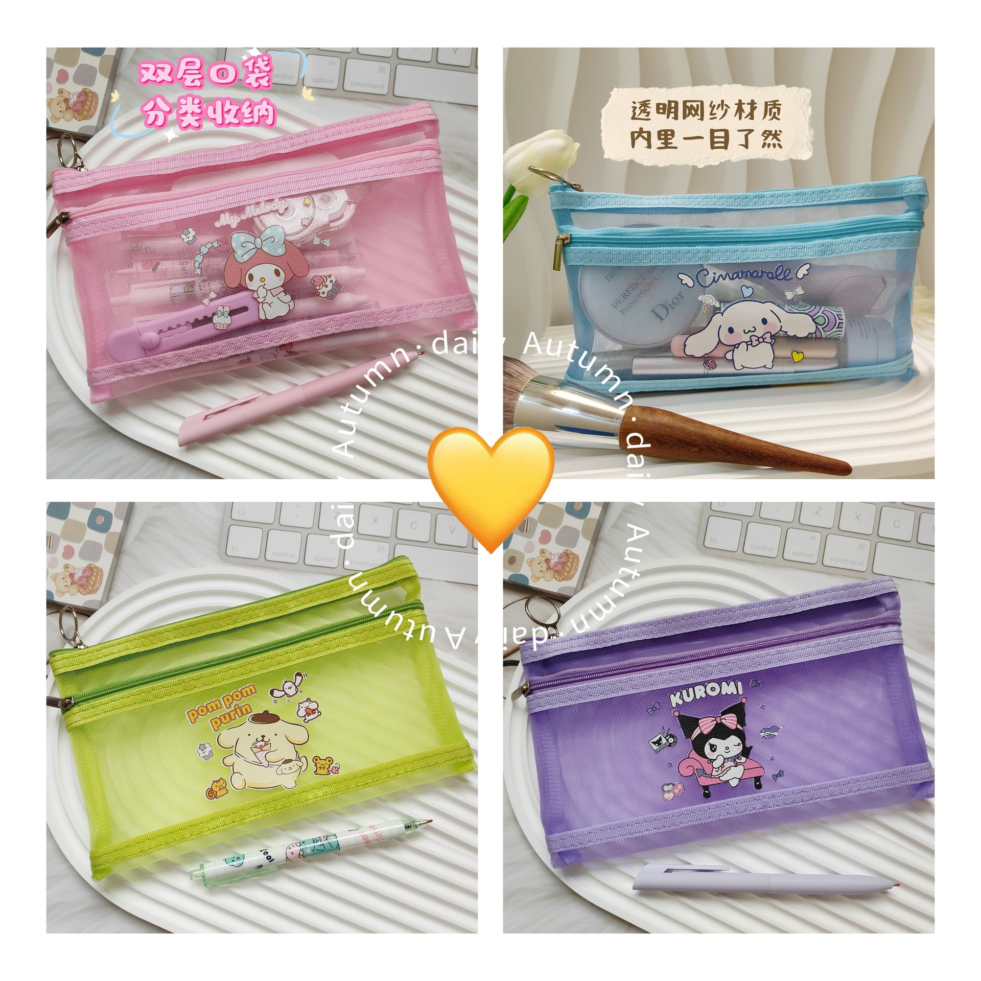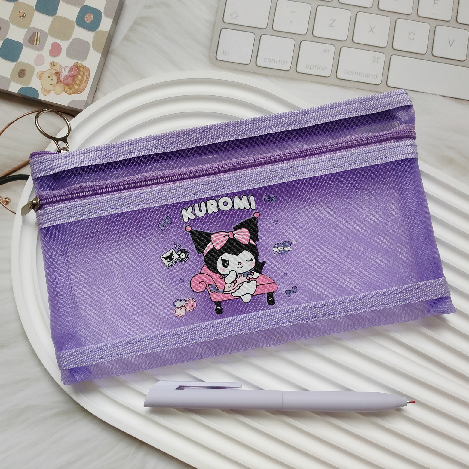 새로운 Sanlio 나일론 메쉬 연필 가방 Kulomi 투명한 격자 연필 가방 학생 시험을위한 특수 문구 가방