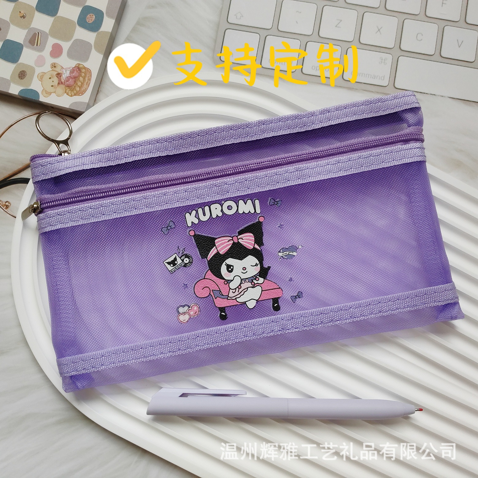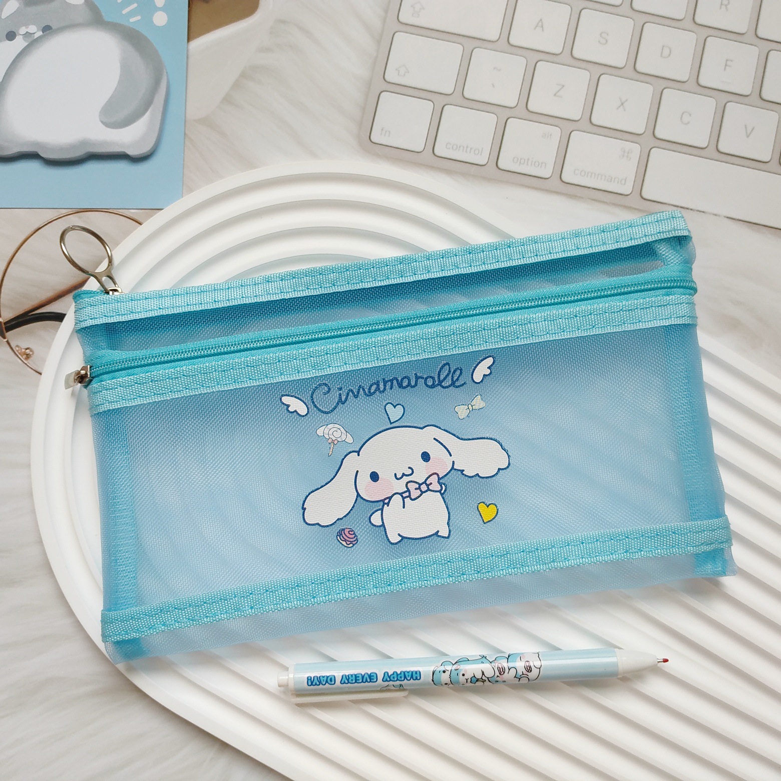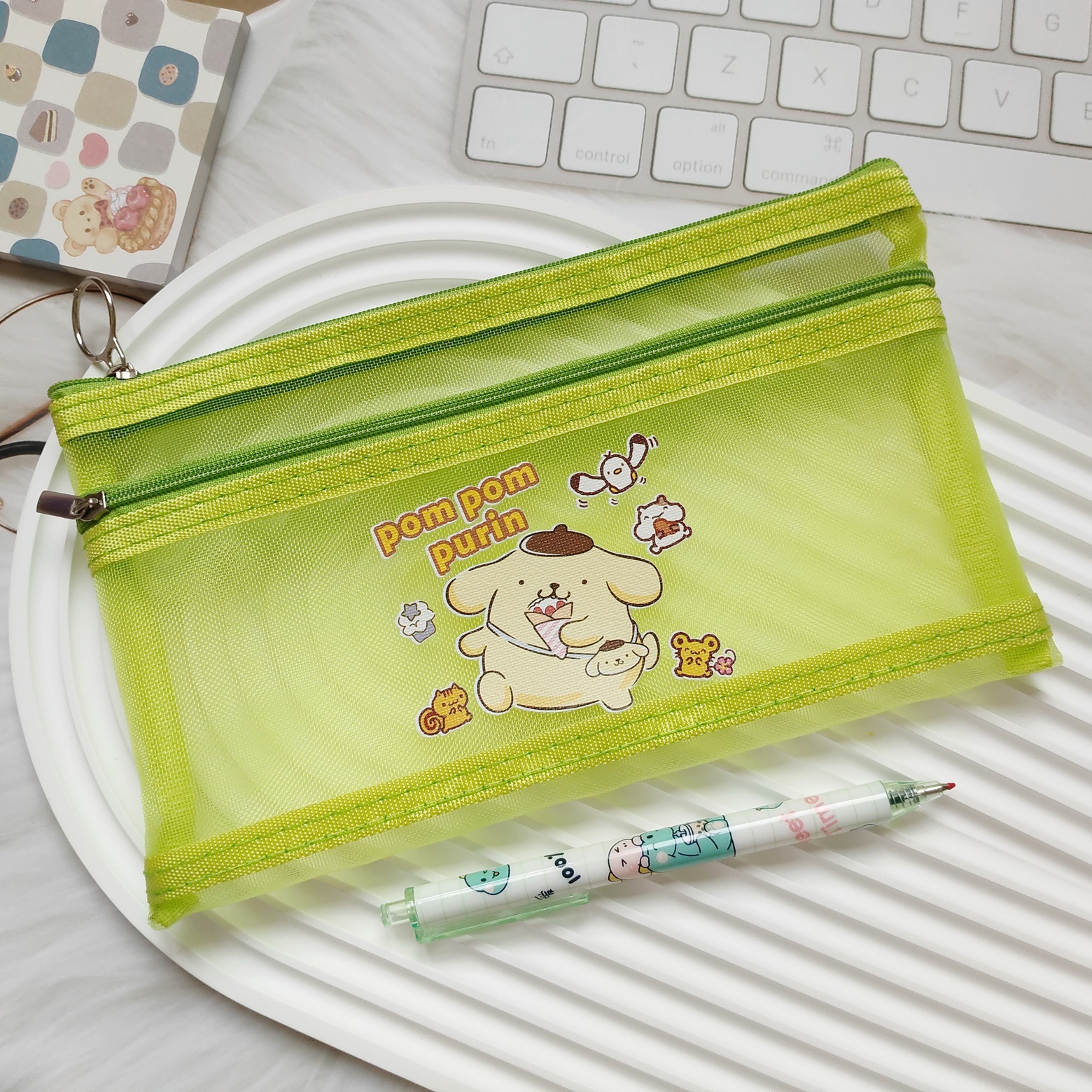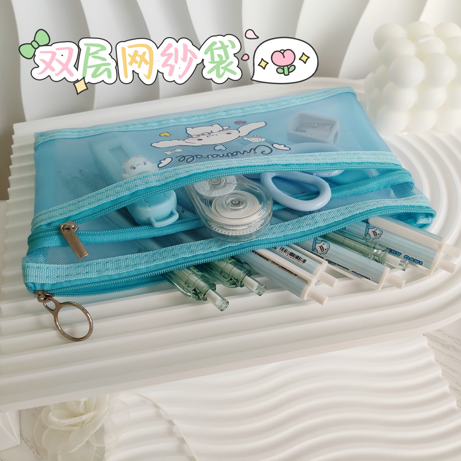 새로운 Sanlio 나일론 메쉬 연필 가방 Kulomi 투명한 격자 연필 가방 학생 시험을위한 특수 문구 가방