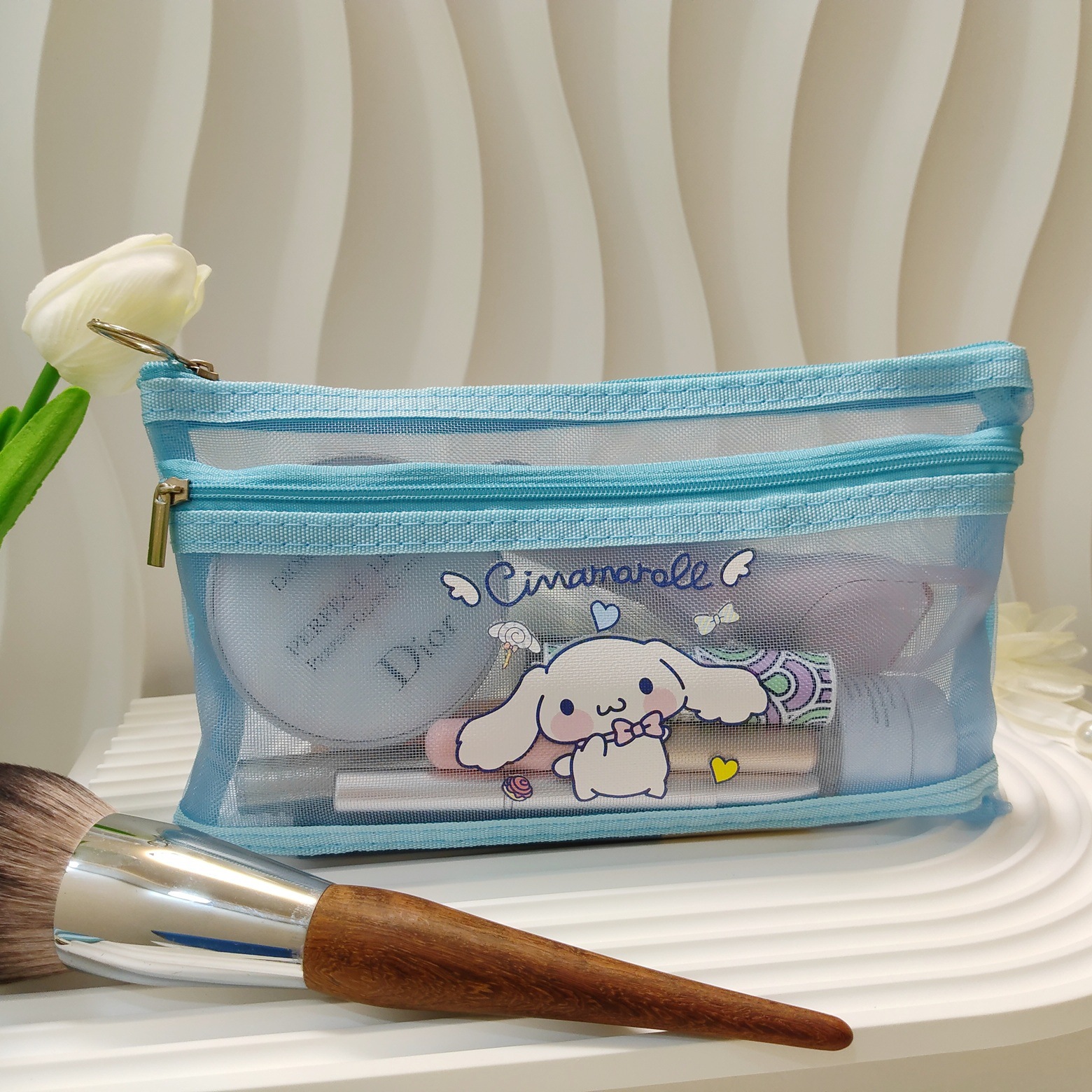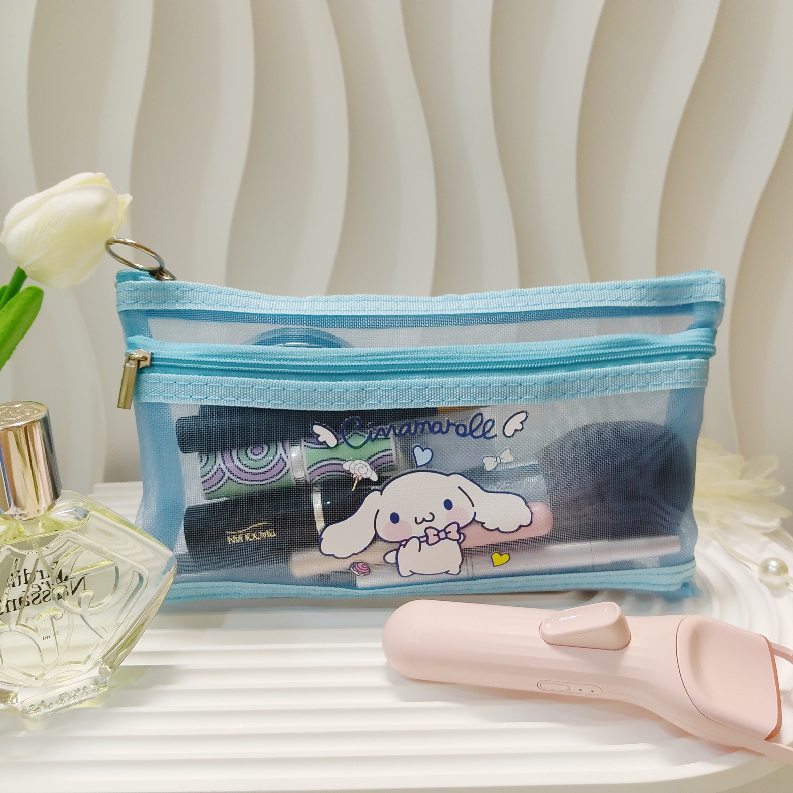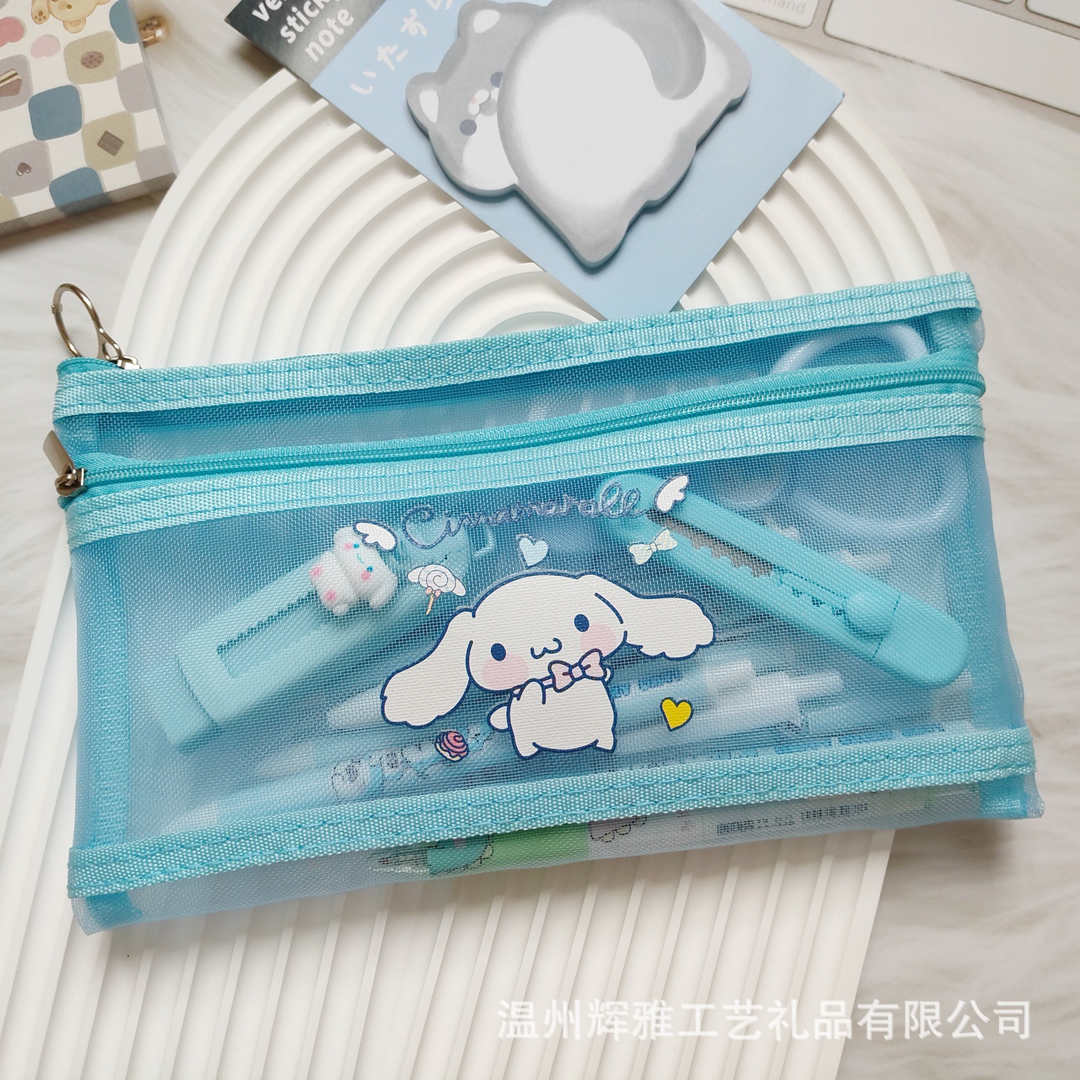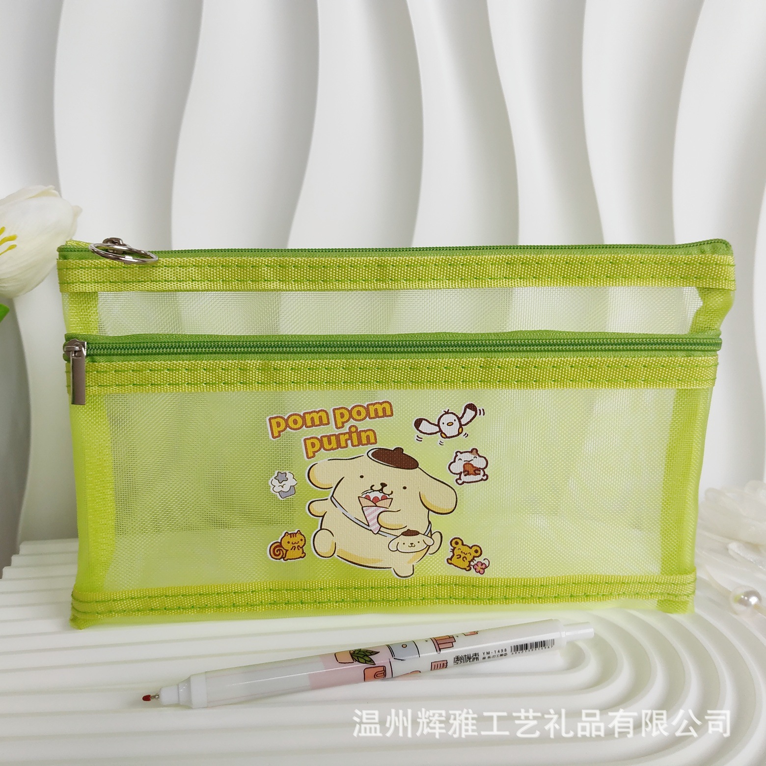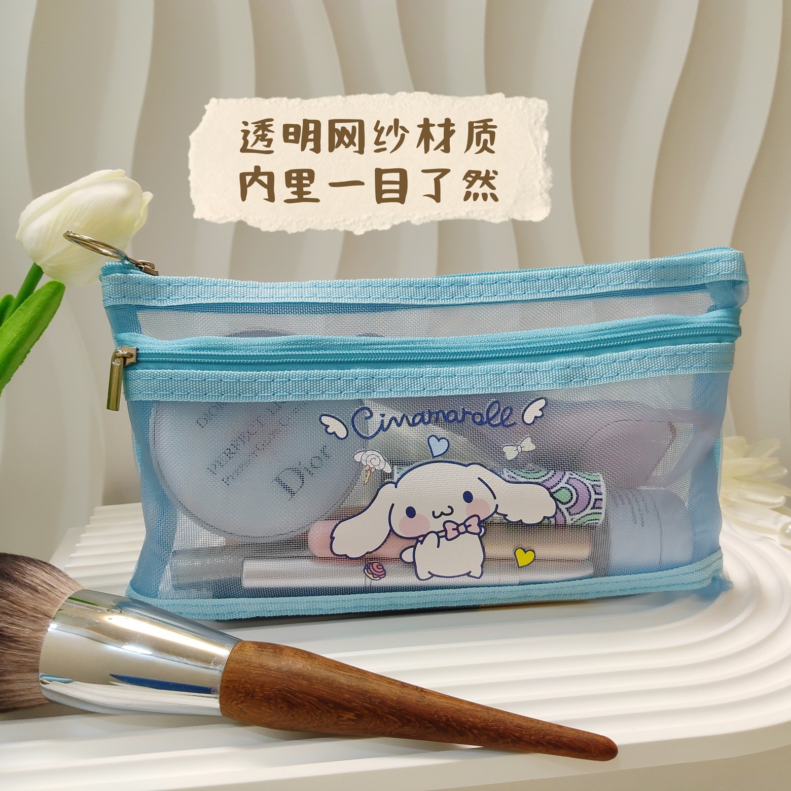 새로운 Sanlio 나일론 메쉬 연필 가방 Kulomi 투명한 격자 연필 가방 학생 시험을위한 특수 문구 가방